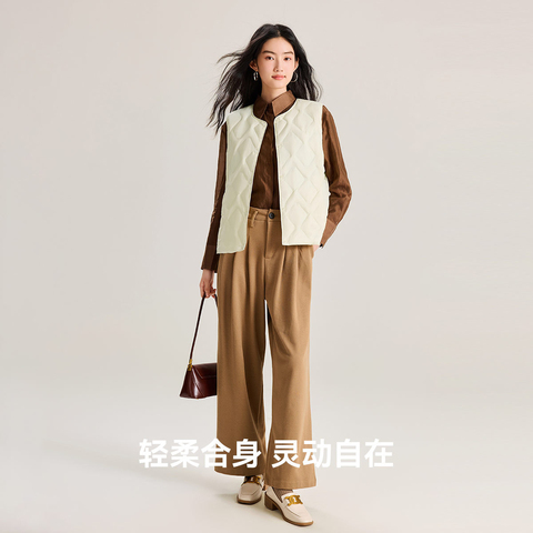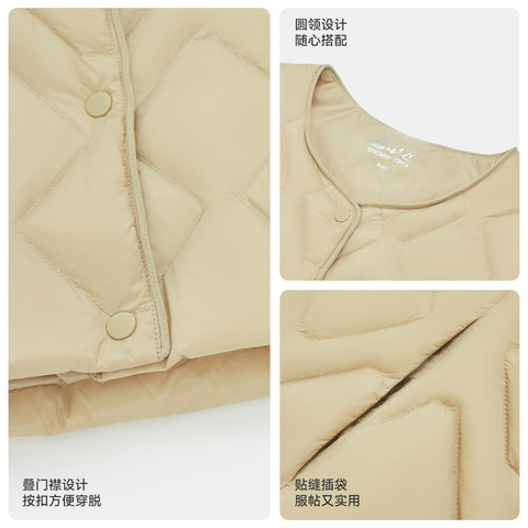 雪中飞2025冬新款女士轻薄羽绒马甲圆领菱格纯色时尚百搭轻便舒适