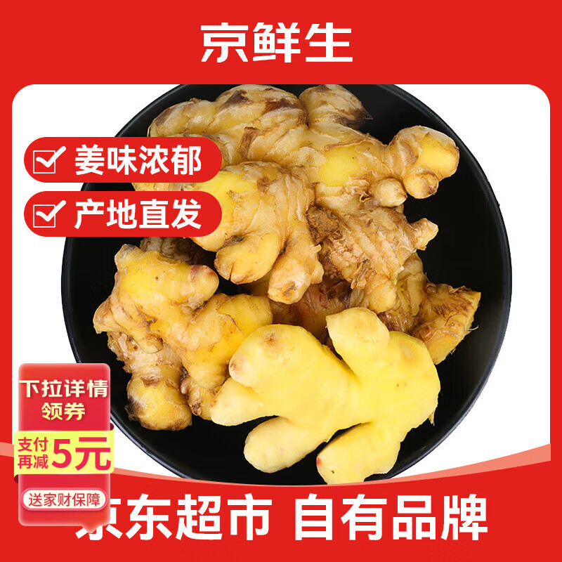 京鲜生 云南小黄姜 净重3斤 生姜 新鲜现挖 新姜单果50g+ 源头直发包邮