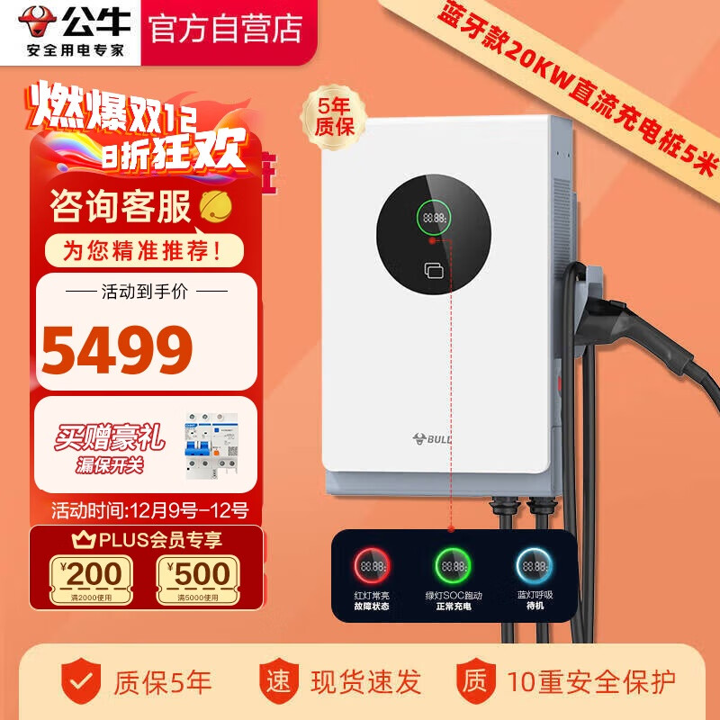 公牛新能源汽车直流充电桩380V适配于特斯拉小鹏比亚迪极氪蔚来等 20KW直流充电桩 蓝牙款