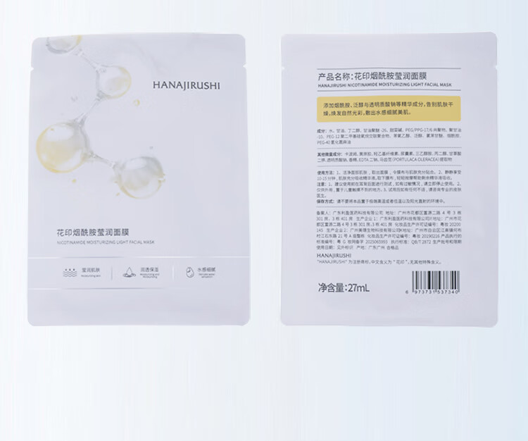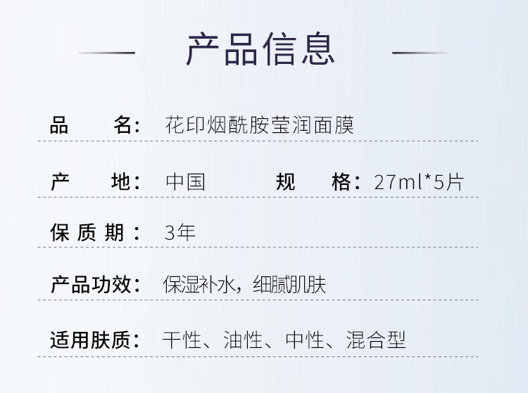 花印烟酰胺莹润面膜27mI*10片深层补水保湿水润光泽圣诞节礼物