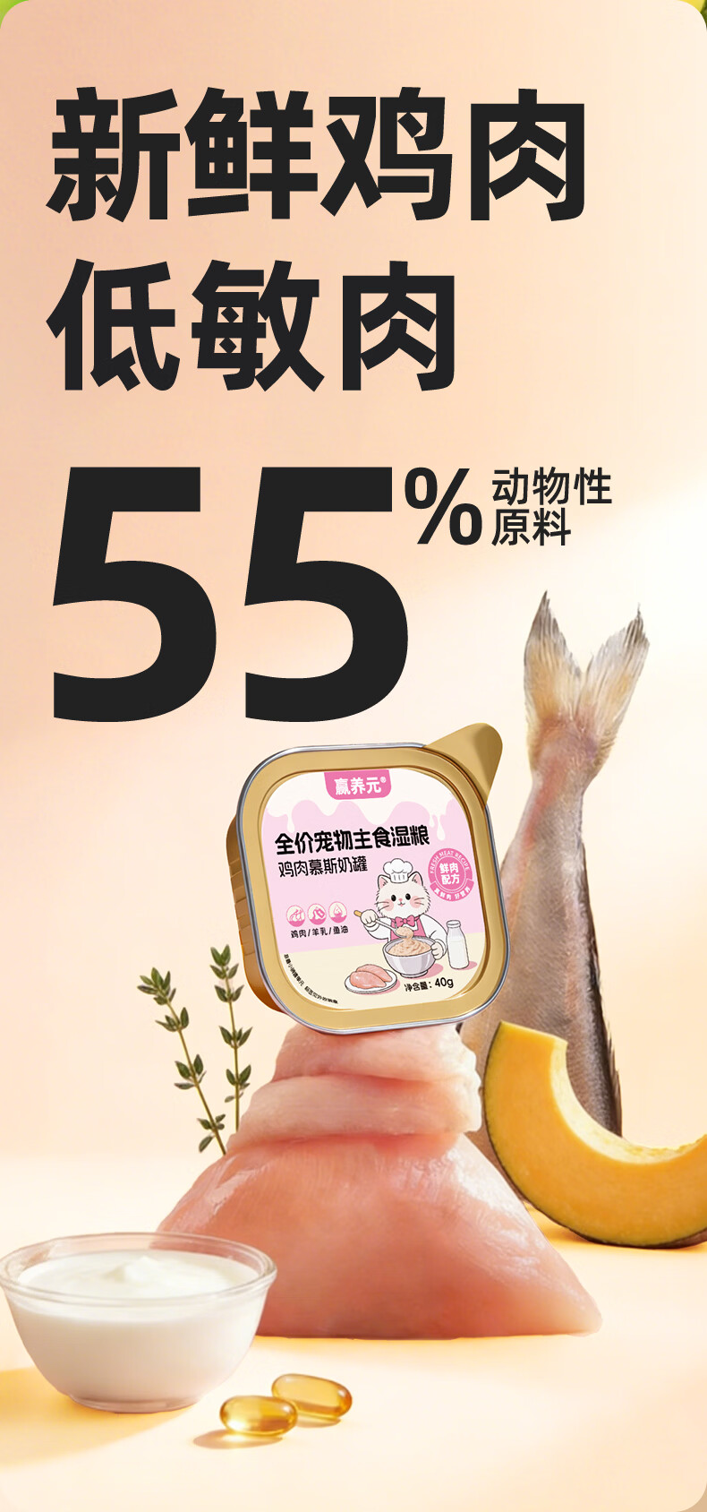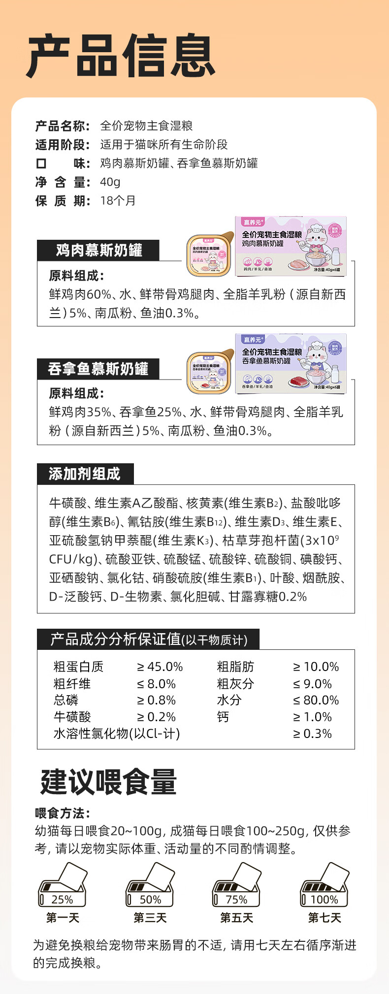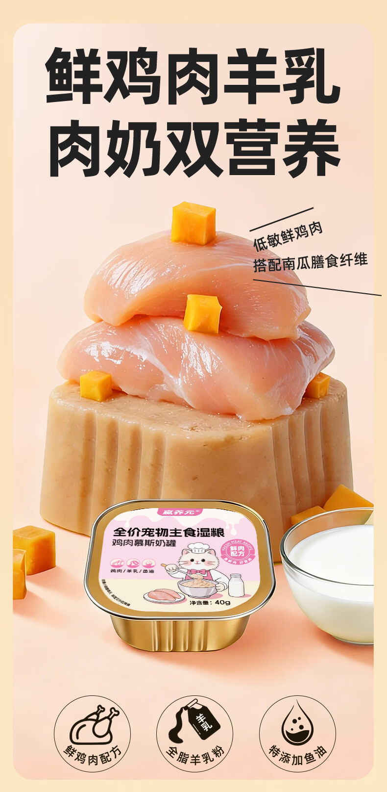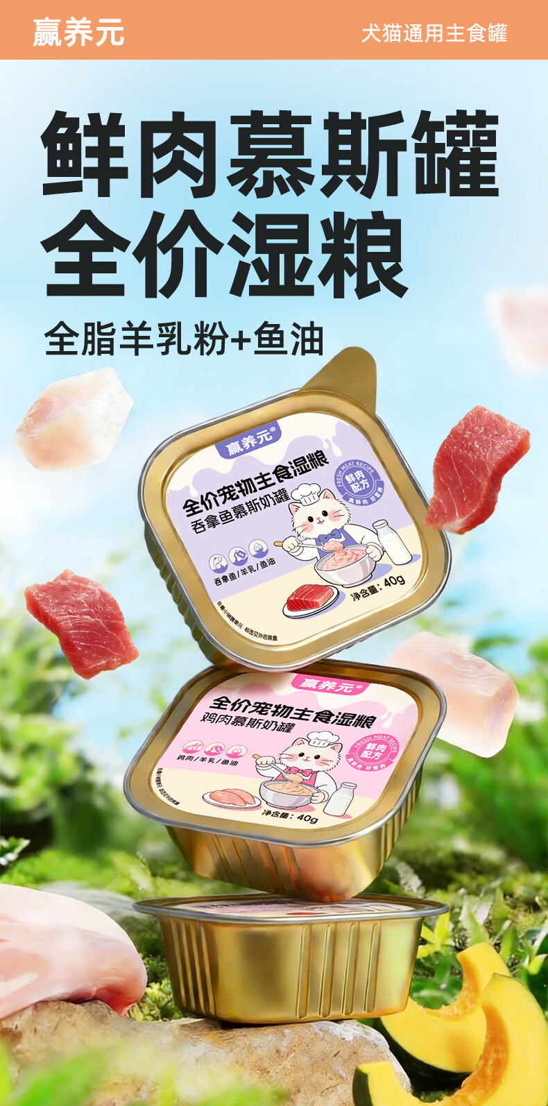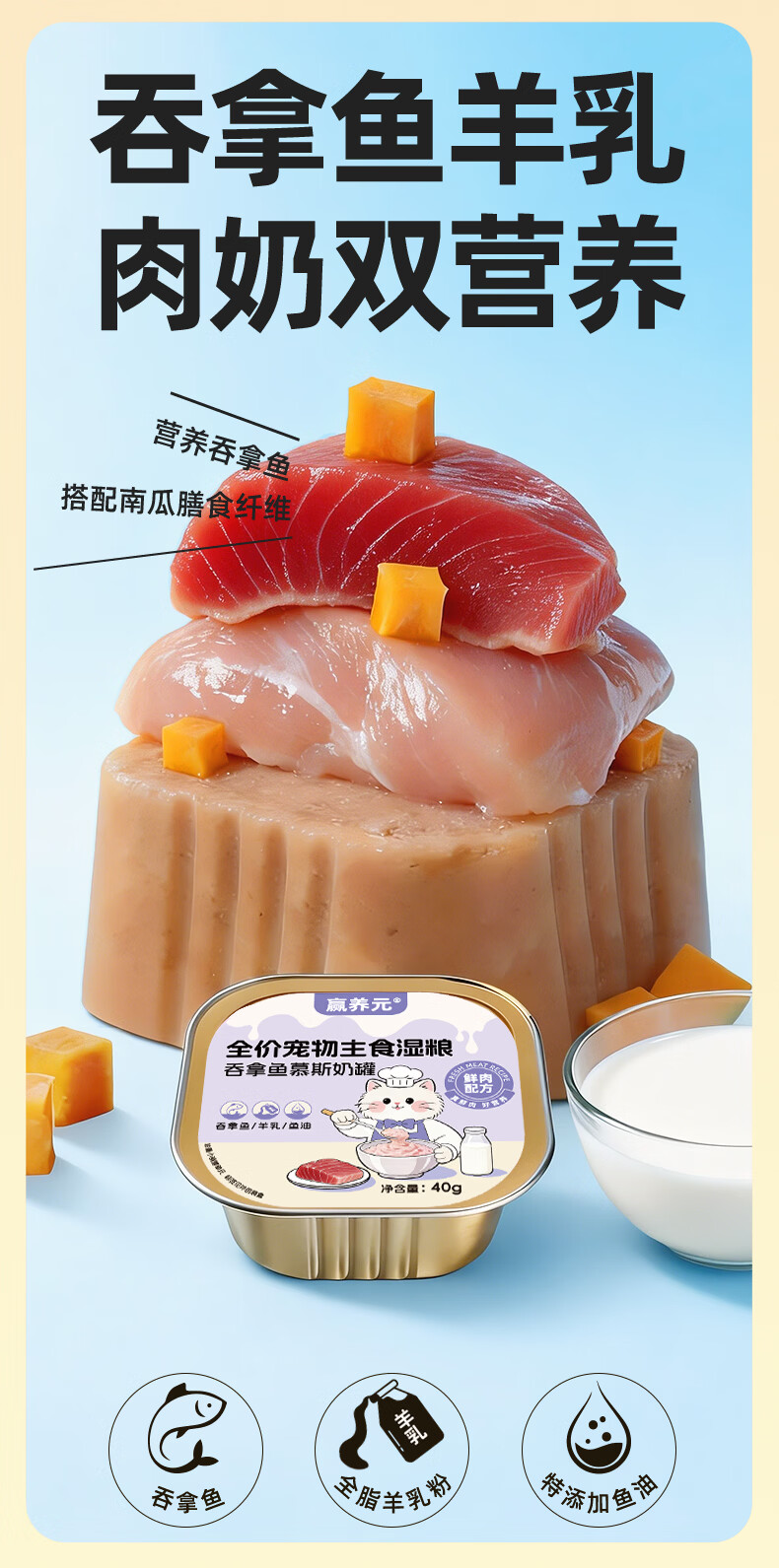 赢养元慕斯罐头鲜肉配方宠物猫粮羊奶慕斯营养餐盒 吞拿鱼羊乳鱼油 40g*12罐