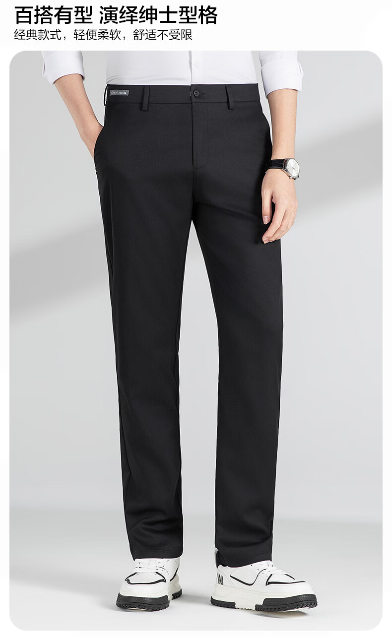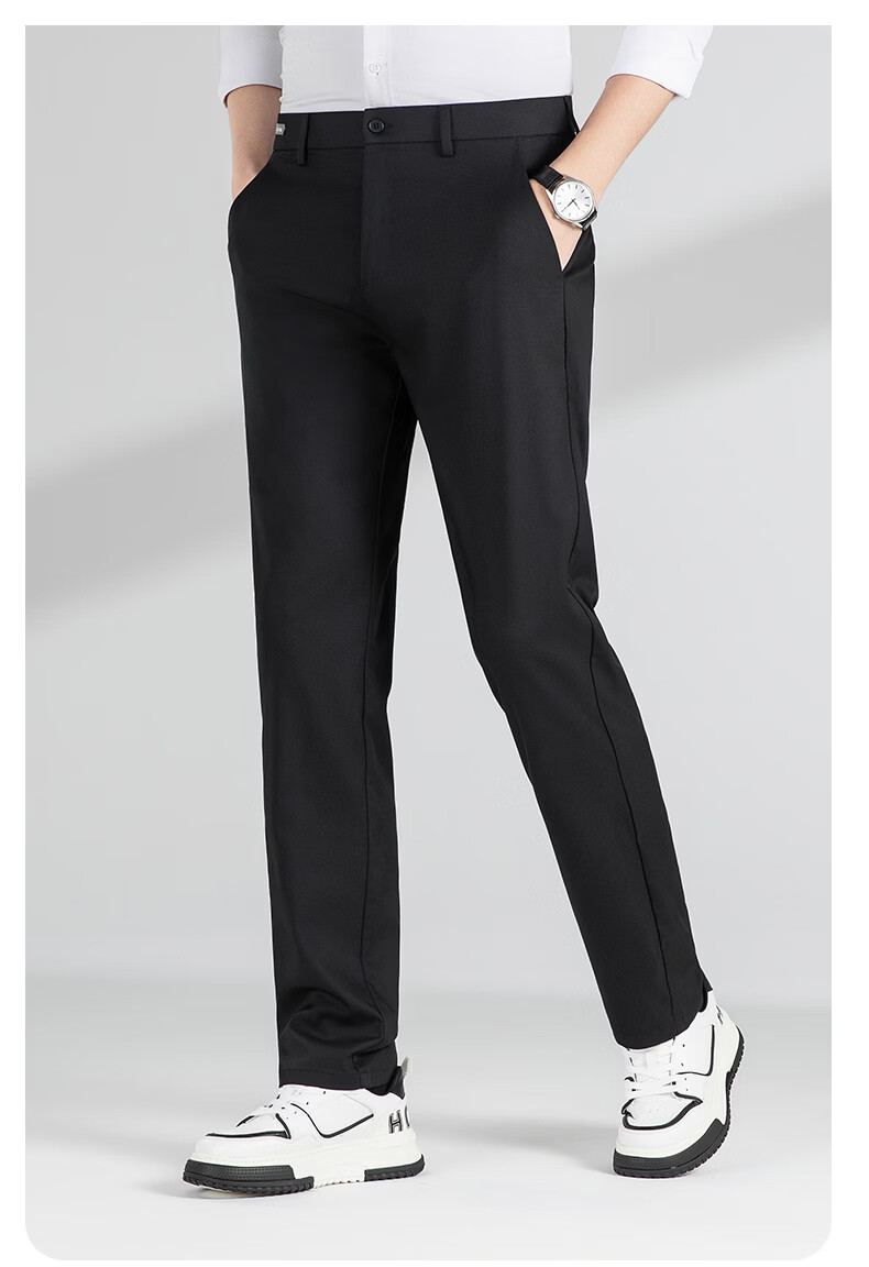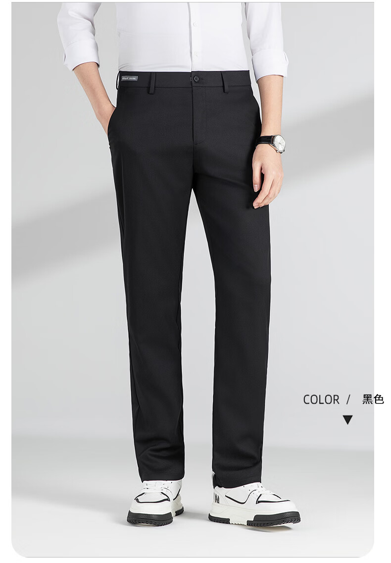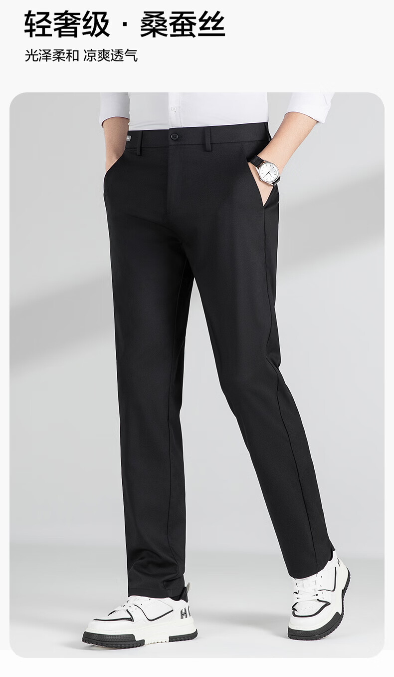 SHANSHAN杉杉【含桑蚕丝+5A抗菌】男士直筒裤春季新款商务休闲百搭长裤 黑色 30