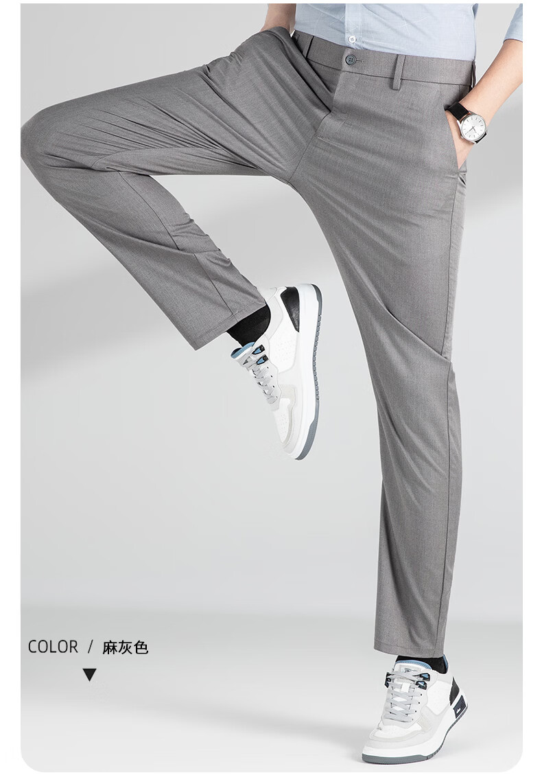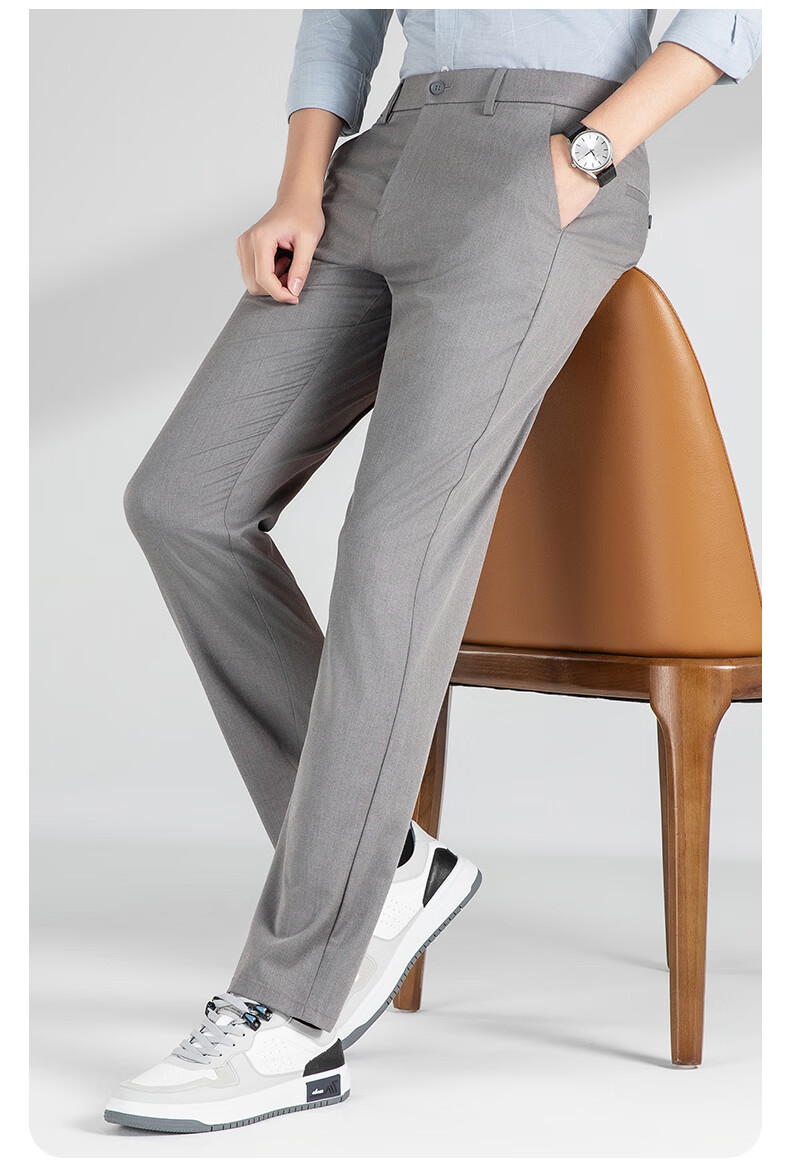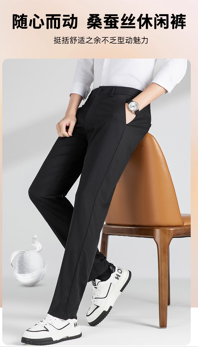 SHANSHAN杉杉【含桑蚕丝+5A抗菌】男士直筒裤春季新款商务休闲百搭长裤 黑色 30