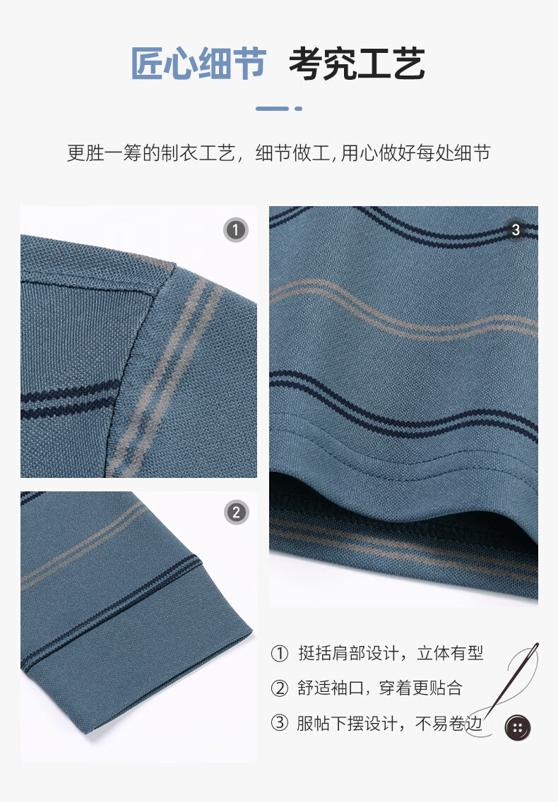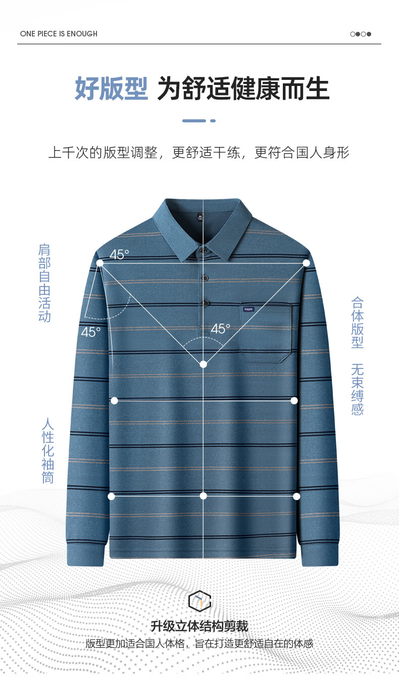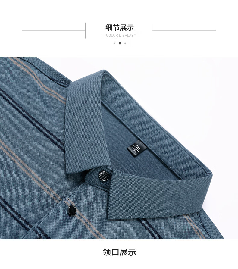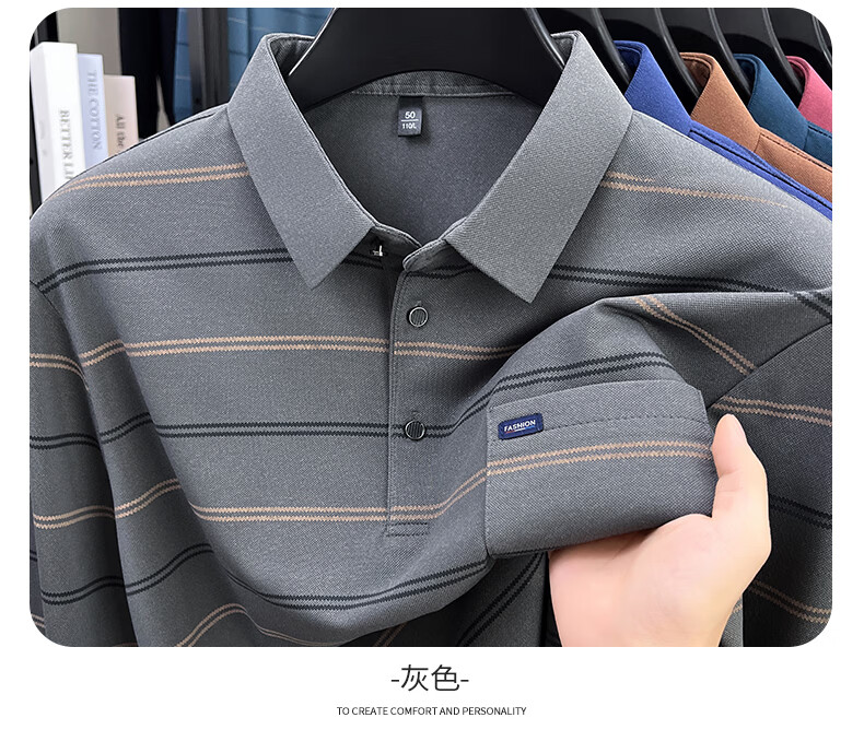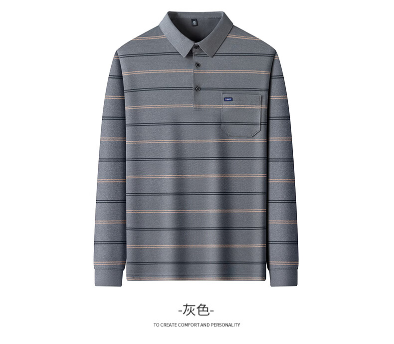 SHANSHAN杉杉长袖T恤男春季新款商务休闲男士细条纹真口袋打底POLO男上衣 灰色 M /170