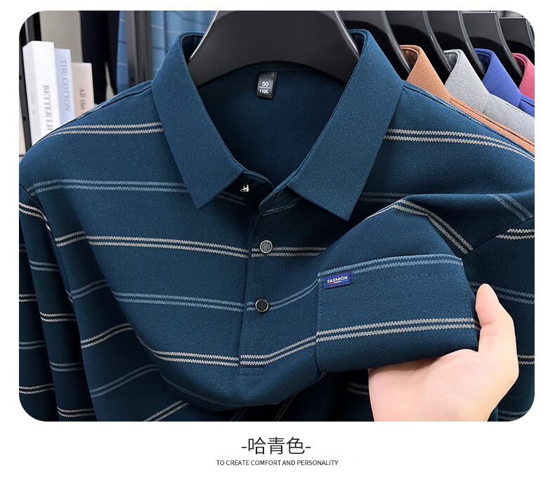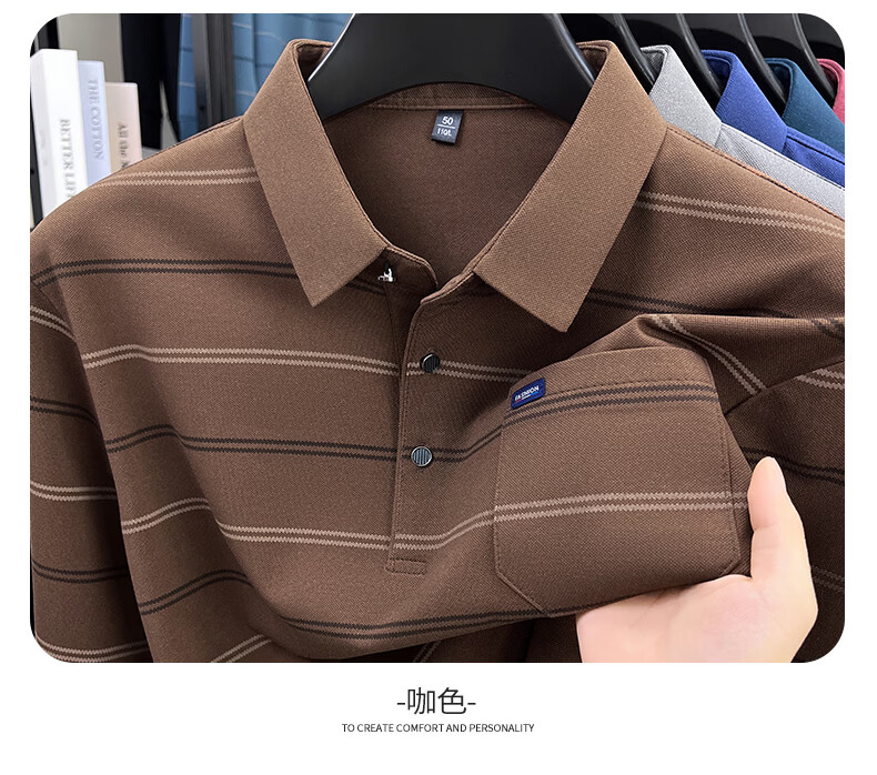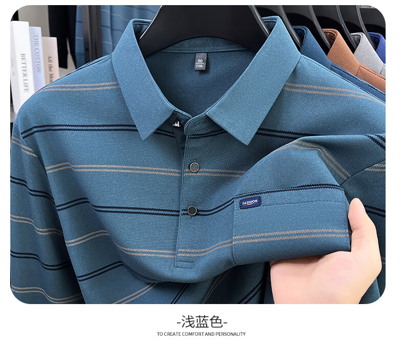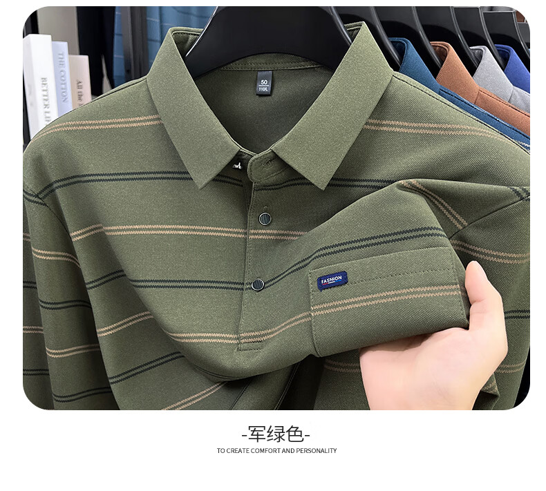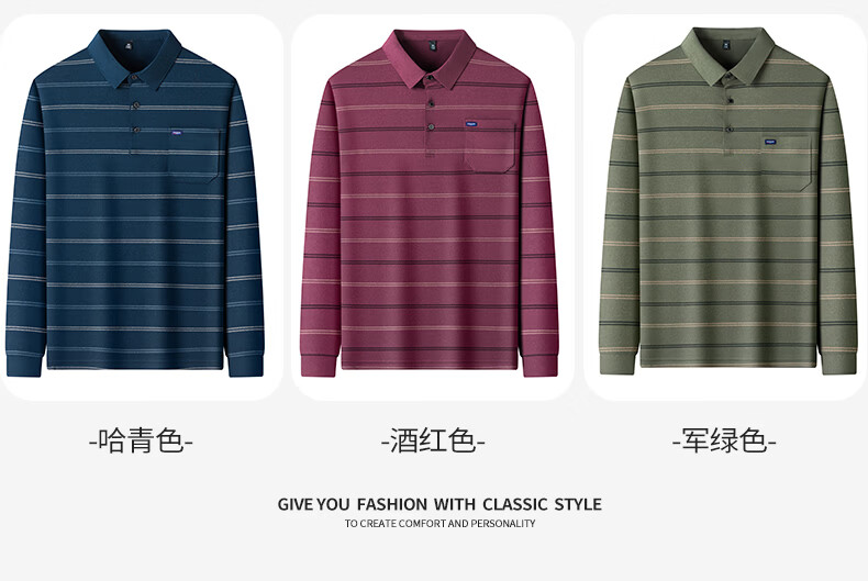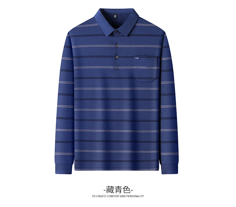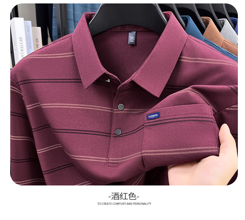 SHANSHAN杉杉长袖T恤男春季新款商务休闲男士细条纹真口袋打底POLO男上衣 灰色 M /170
