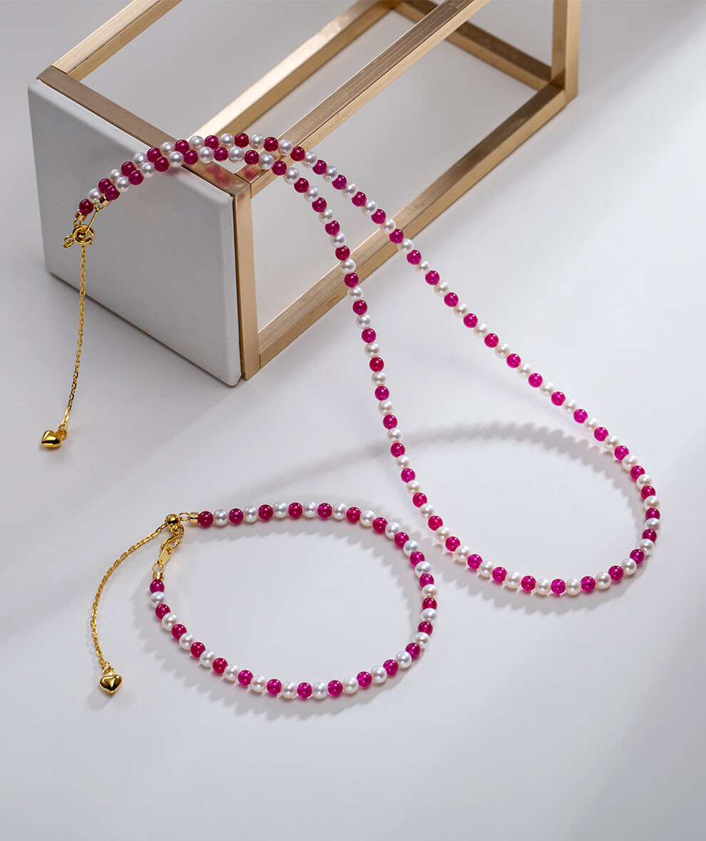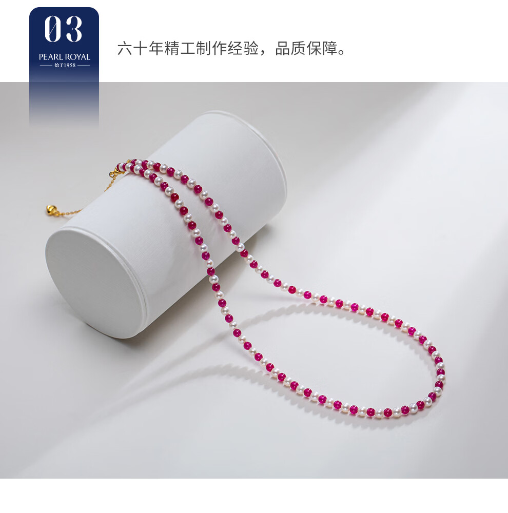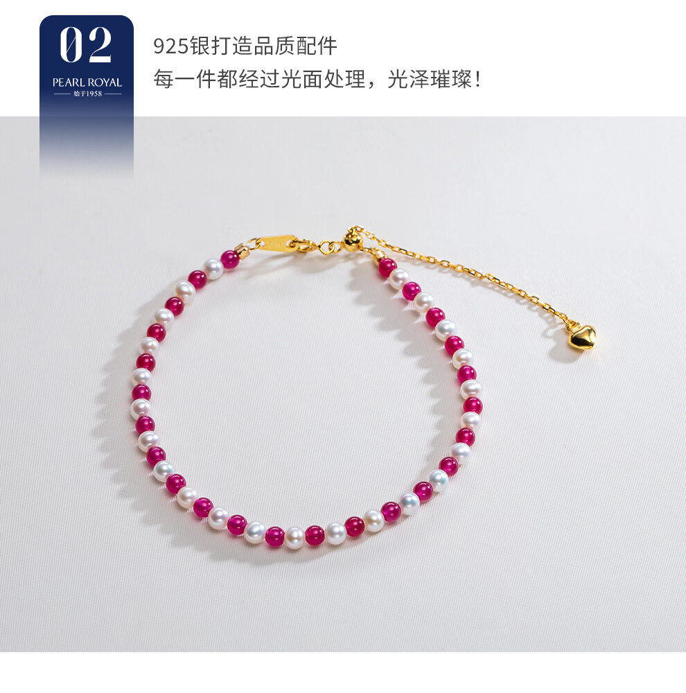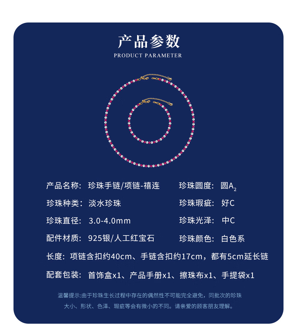 南珠宫禧连淡水珍珠项链手链套装强光泽圆形新年礼物送妈妈 禧连手链 3.0-4.0mm