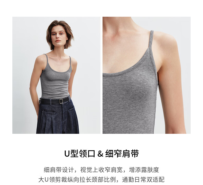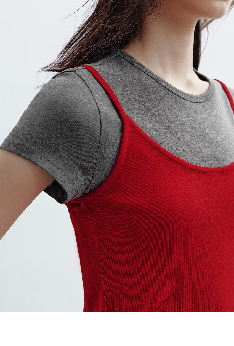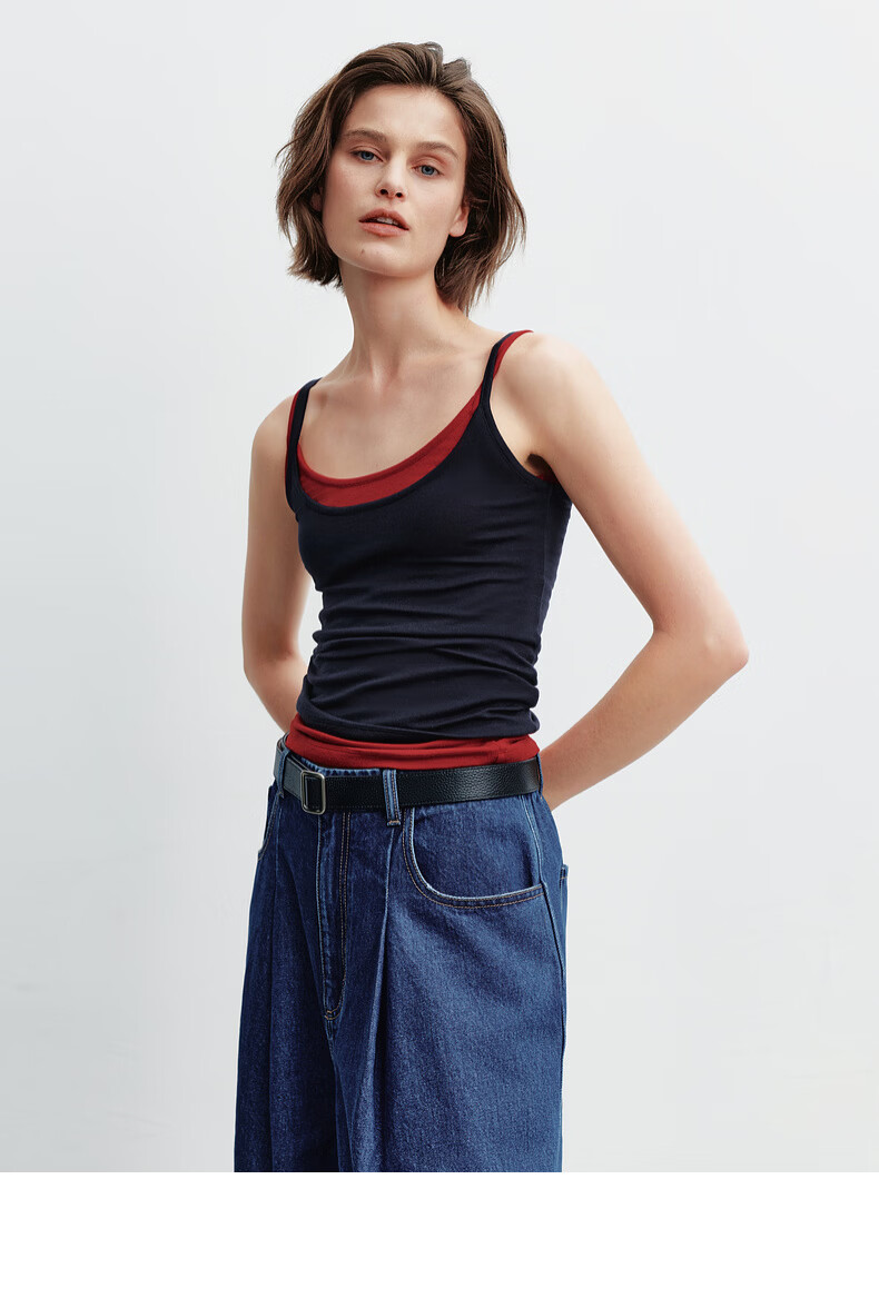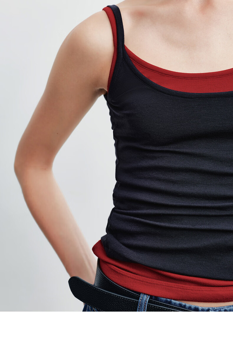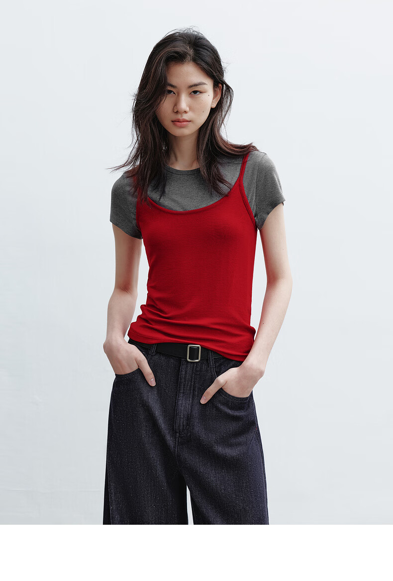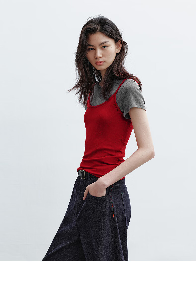 H's【莱赛尔】吊带女26年春季新款高级设计感U领修身内搭背心上衣 果实红 S