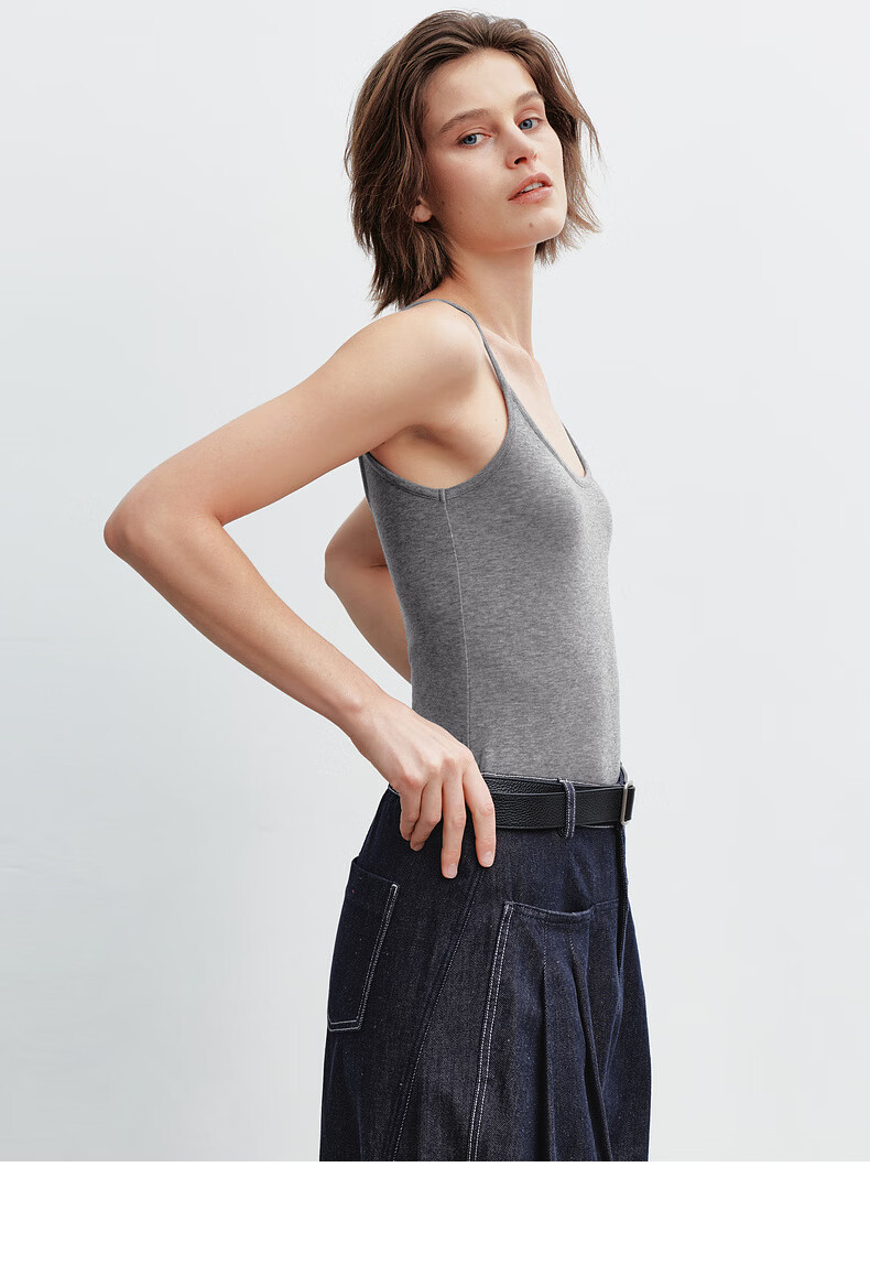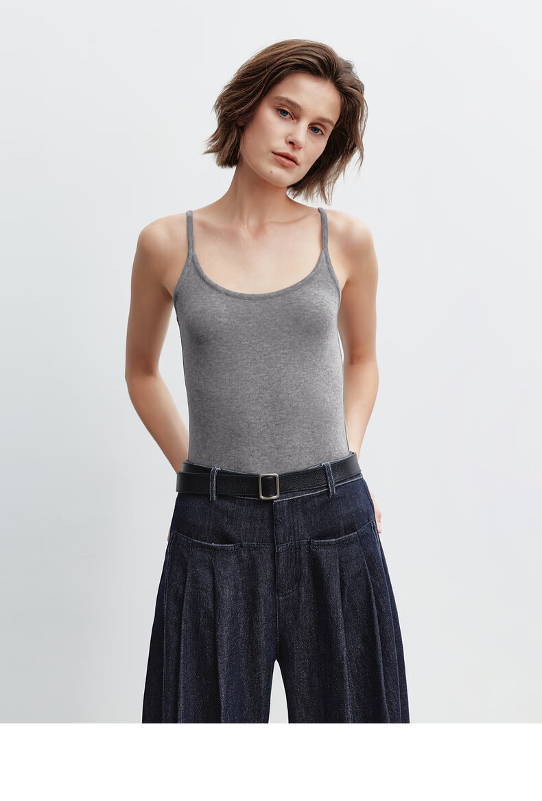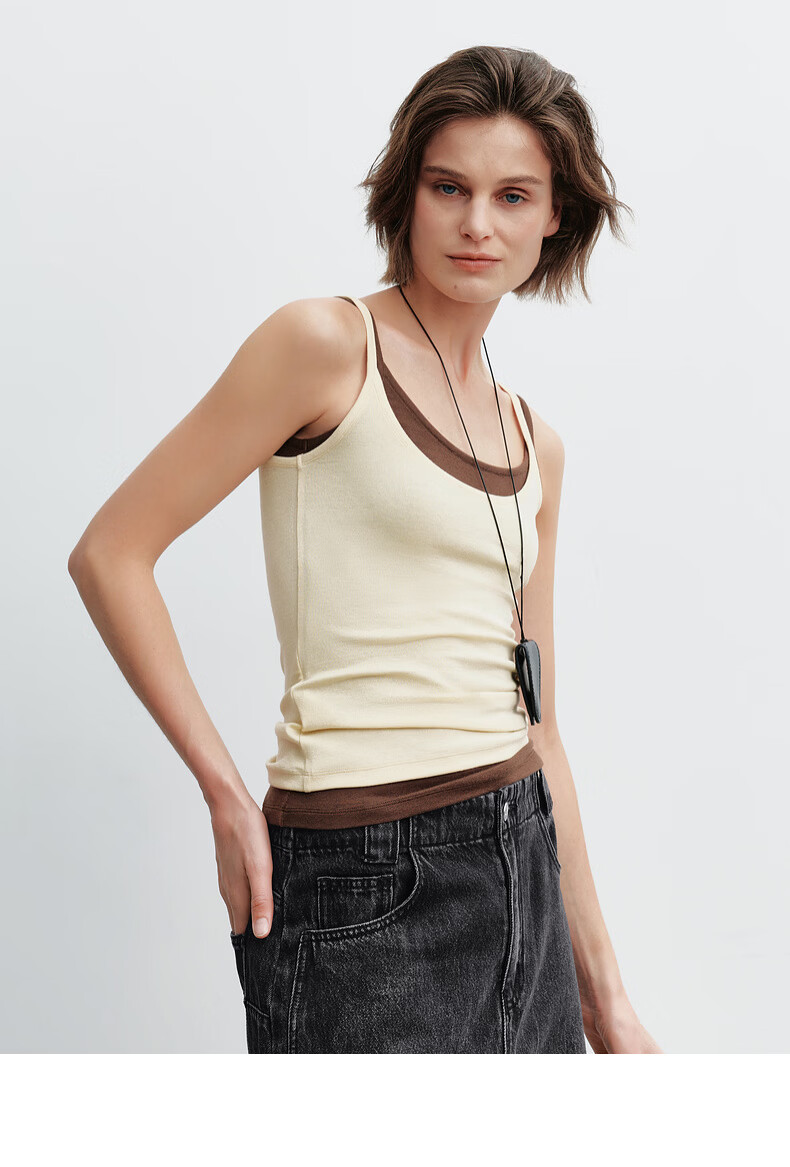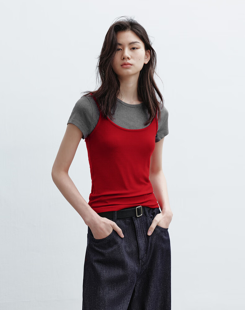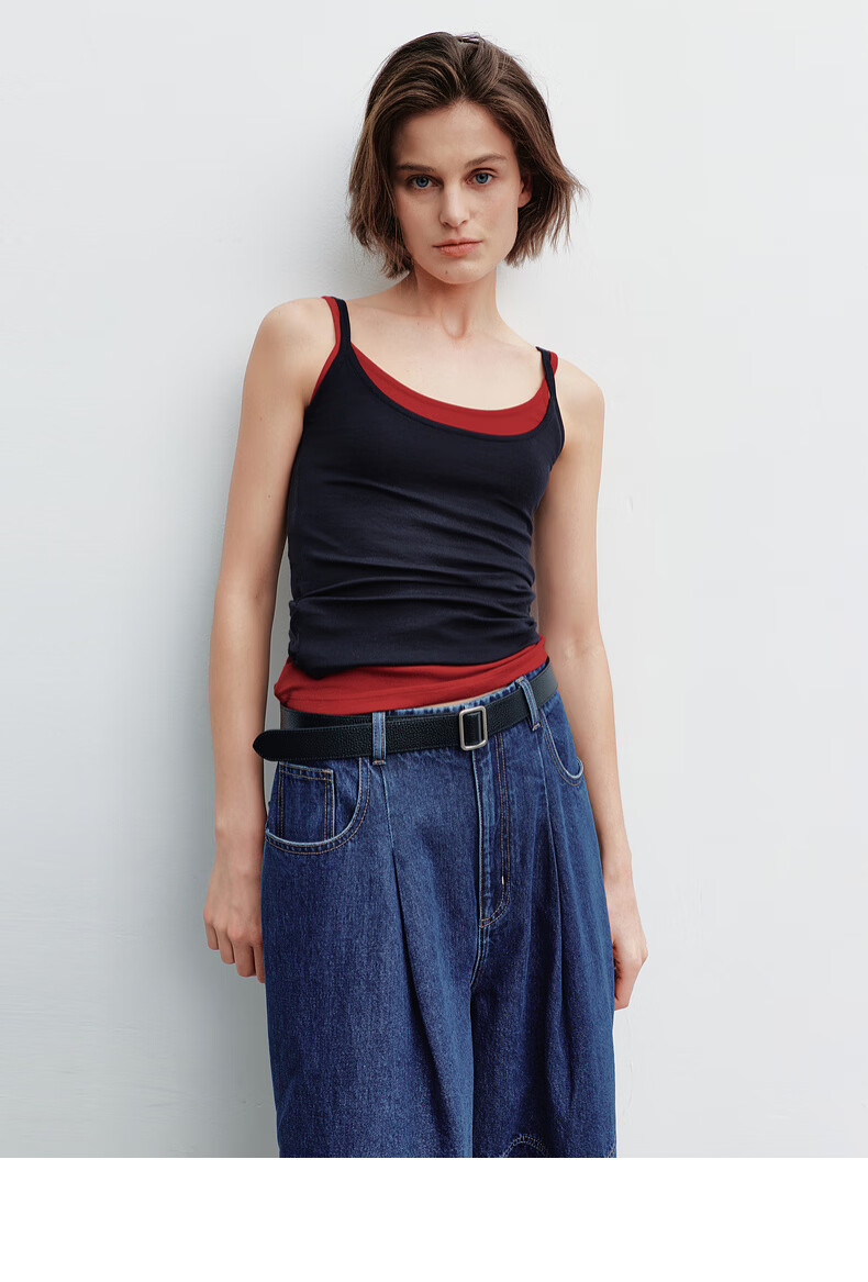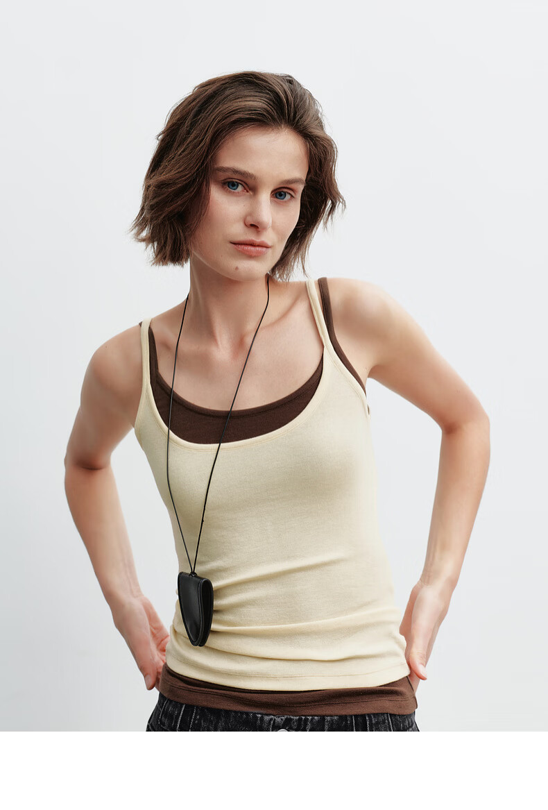 H's【莱赛尔】吊带女26年春季新款高级设计感U领修身内搭背心上衣 果实红 S