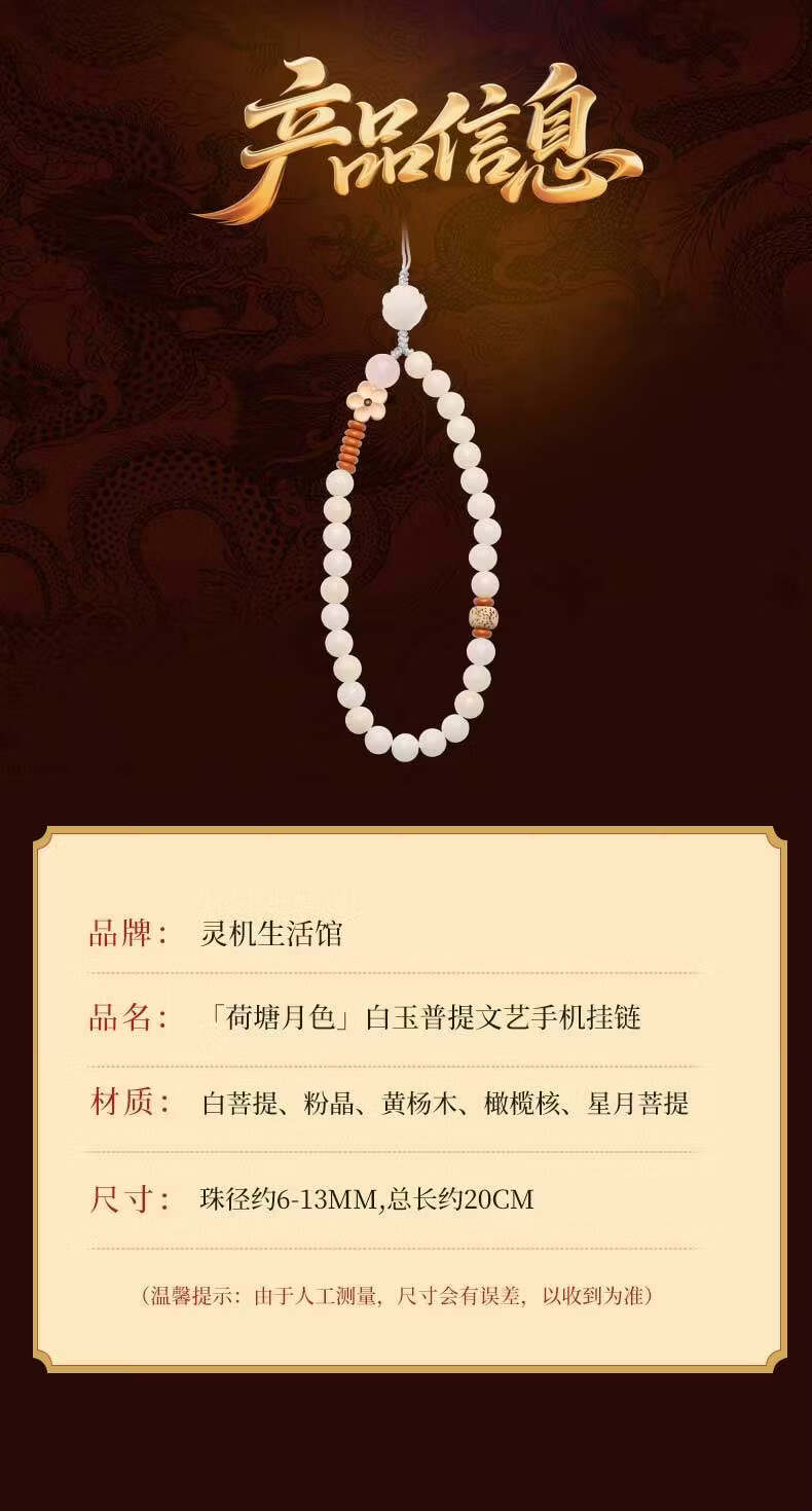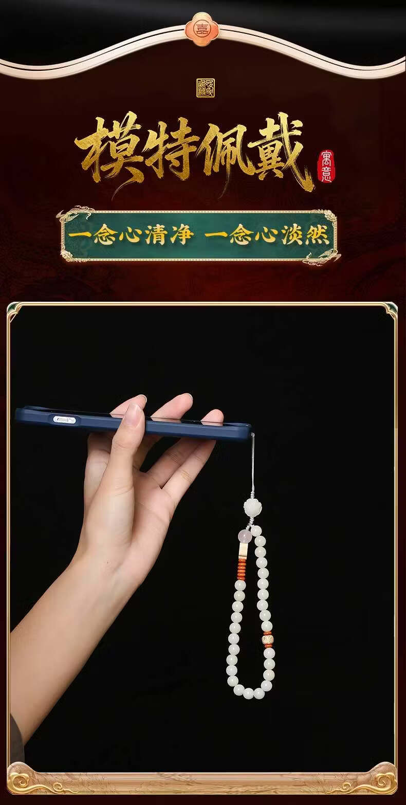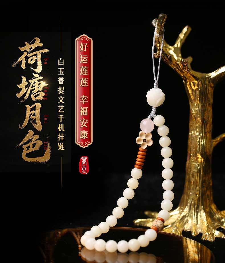 灵机生活馆麦玲玲代言2026款荷塘月色白玉普提文艺手机挂链挂件钥匙新年礼物 【开运】白玉普提文艺手机挂链