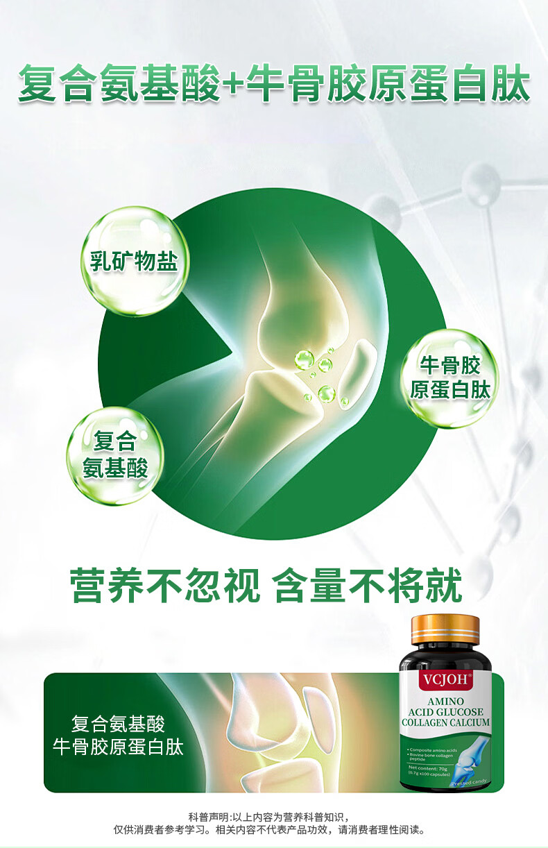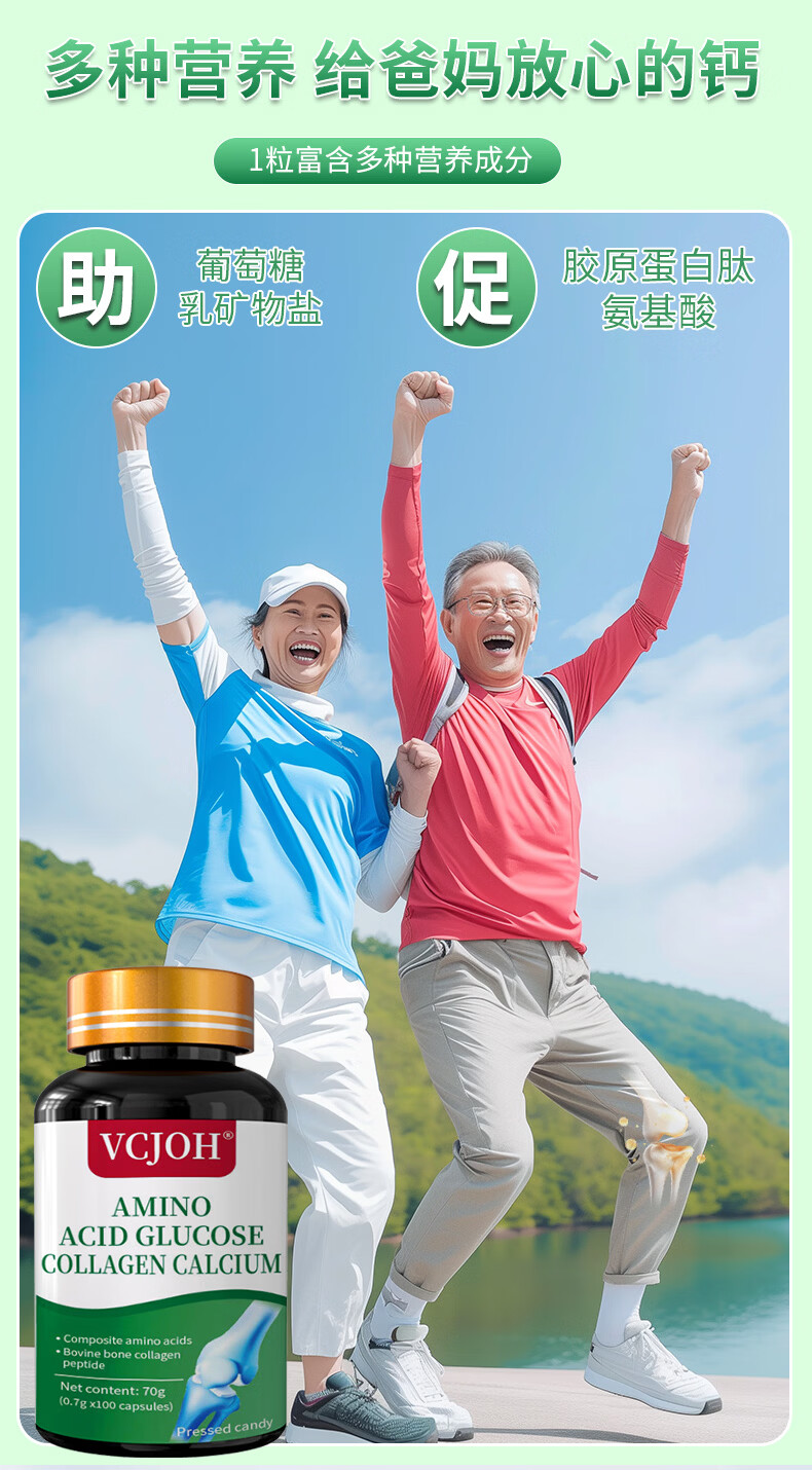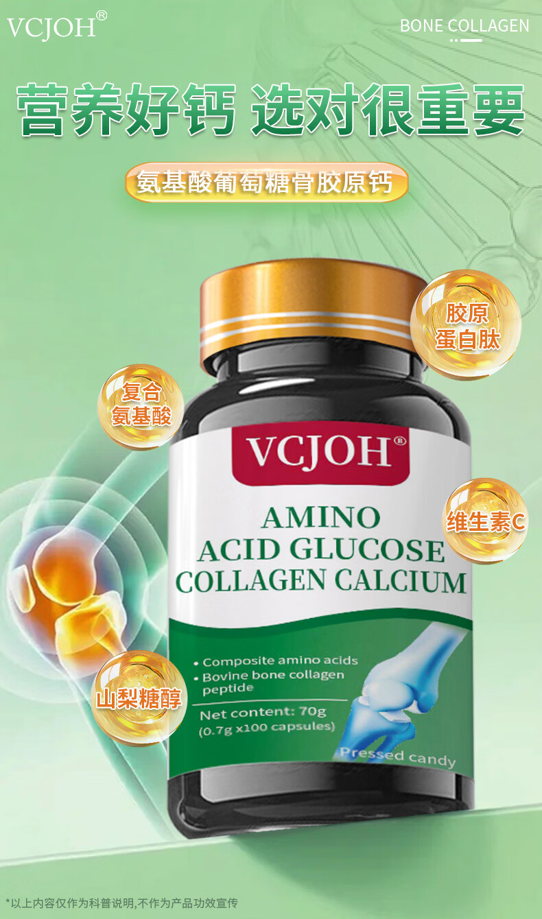 Hong Kong VCJOH Limited氨基酸葡萄糖氨糖软骨钙片糖果中老年人关节不适膝盖疼痛 100粒*3瓶 【三瓶装】