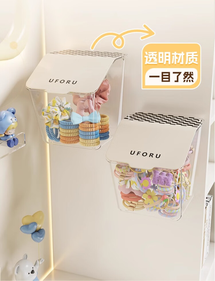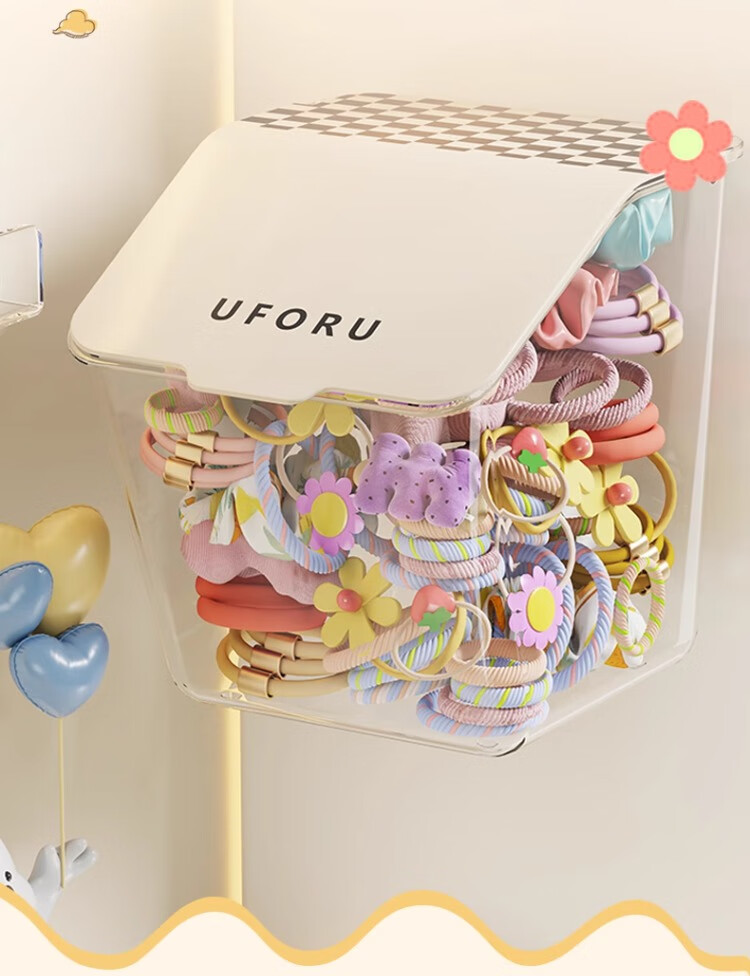 桌面首饰收纳盒头绳皮筋饰品儿童发饰盒壁挂式整理盒女孩置物架子 一个装