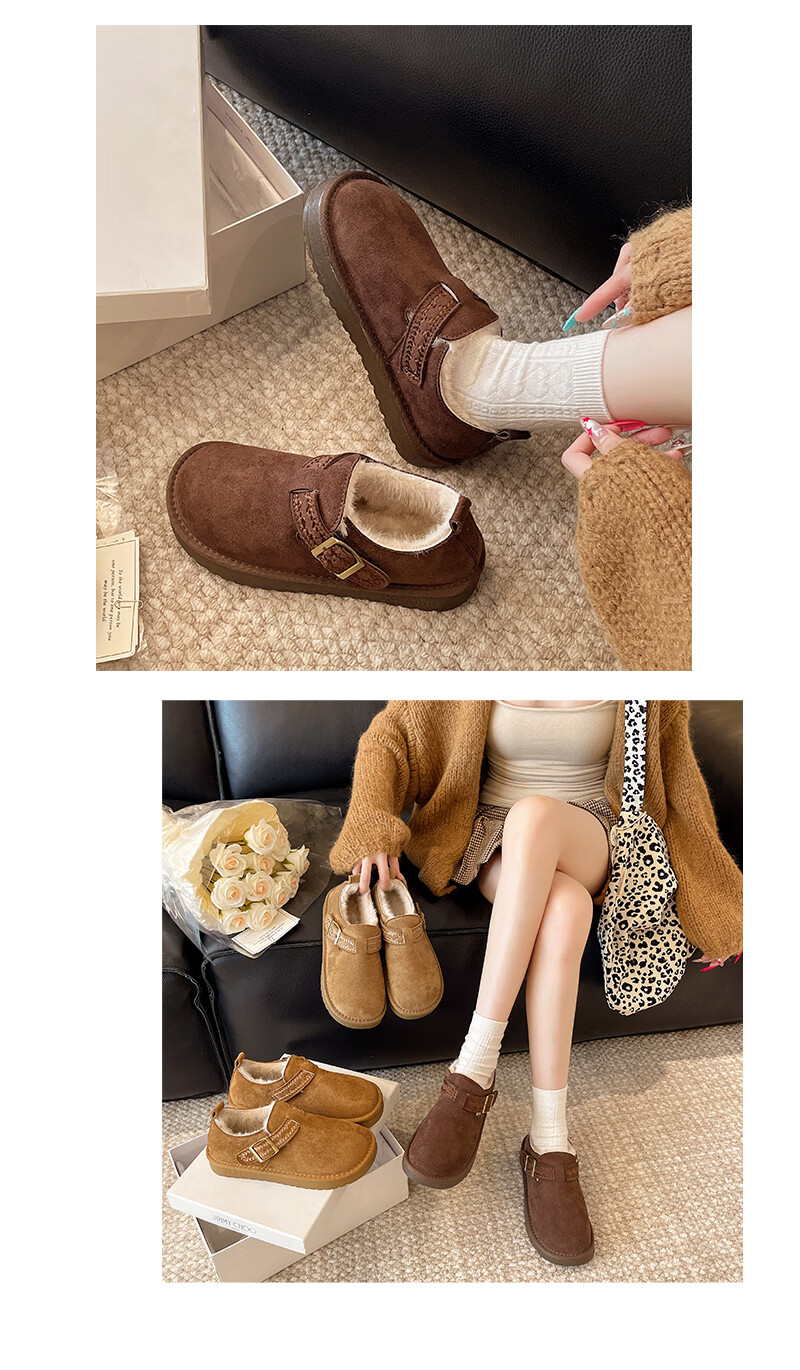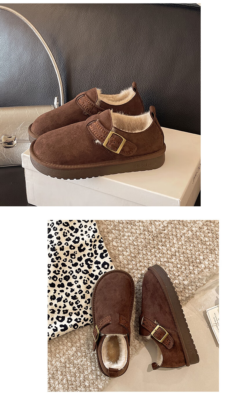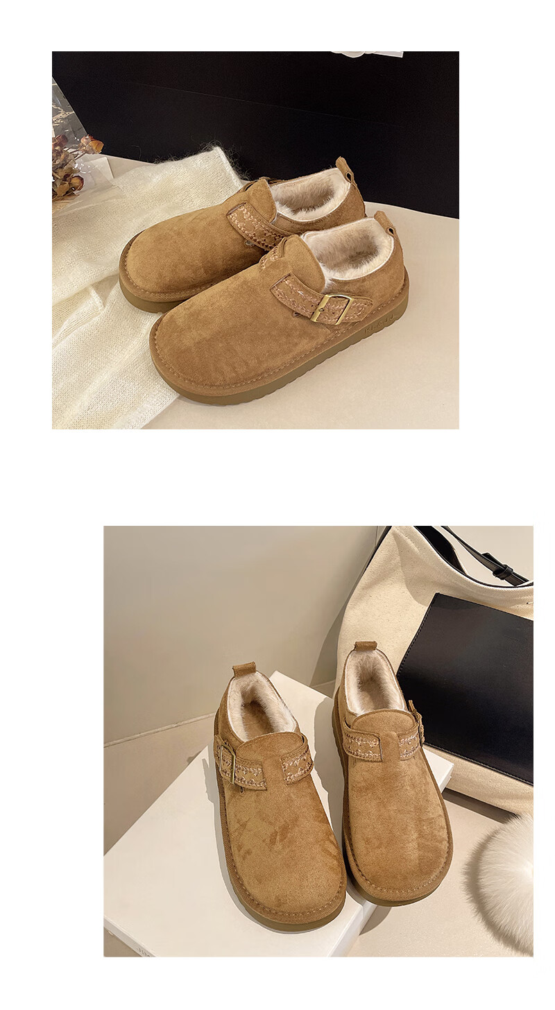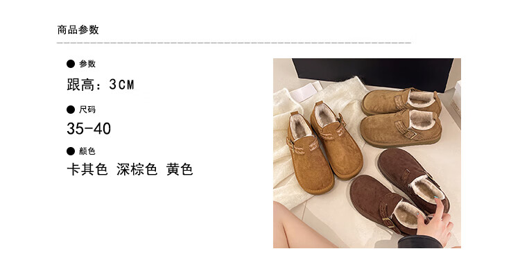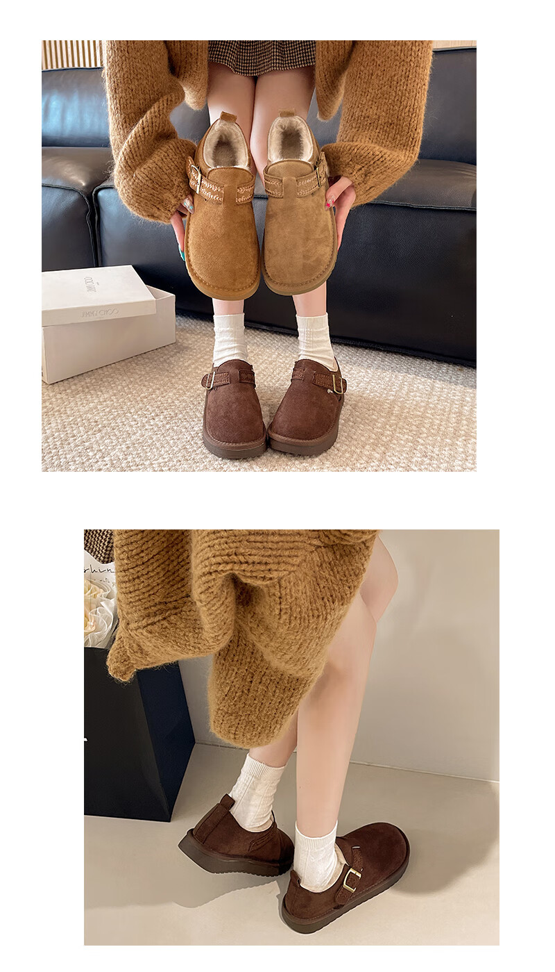 妙丽勃肯鞋女厚底复古加绒时尚保暖潮流2025冬季新款包头半拖鞋 咖色 37 (235mm) 标准码