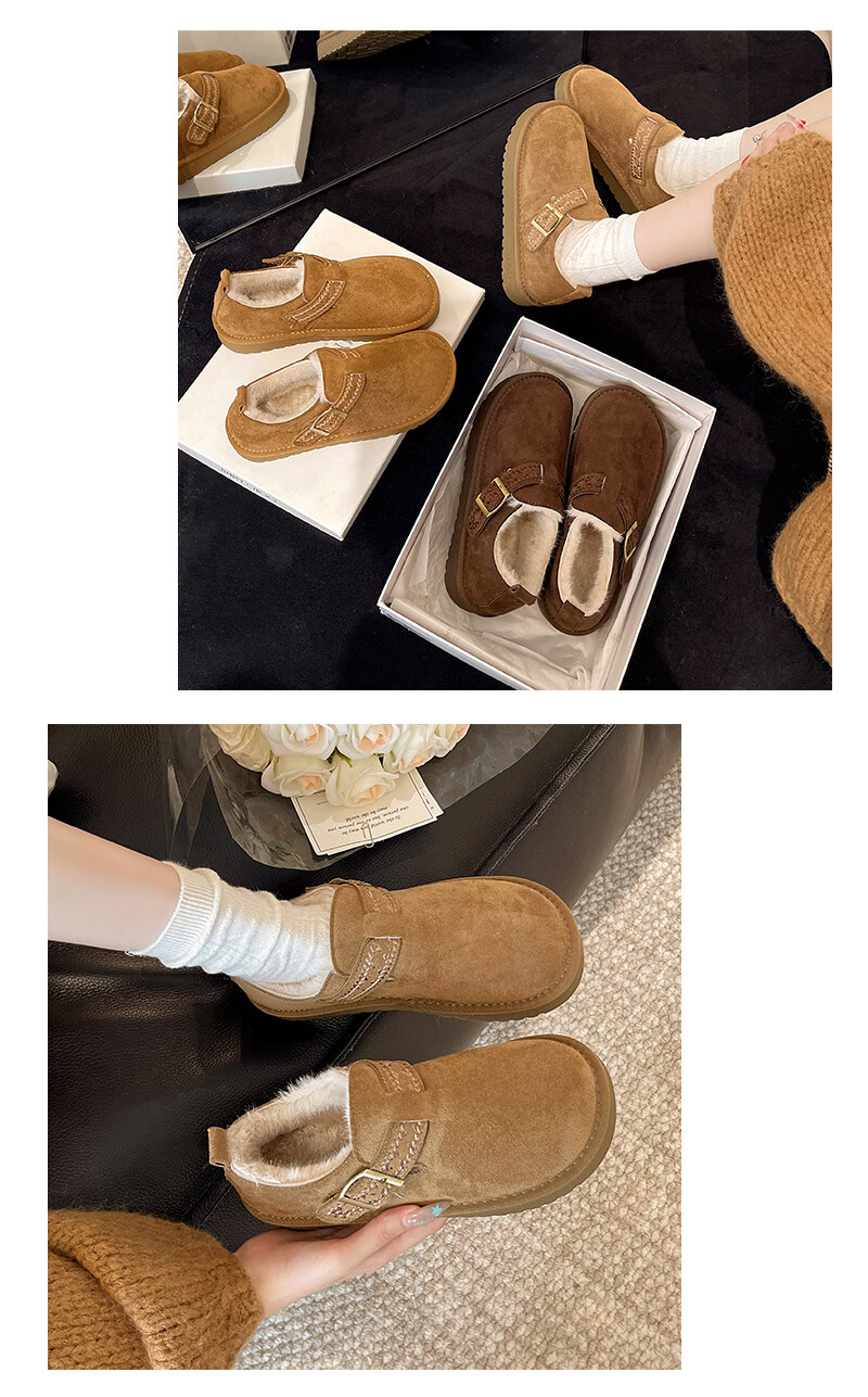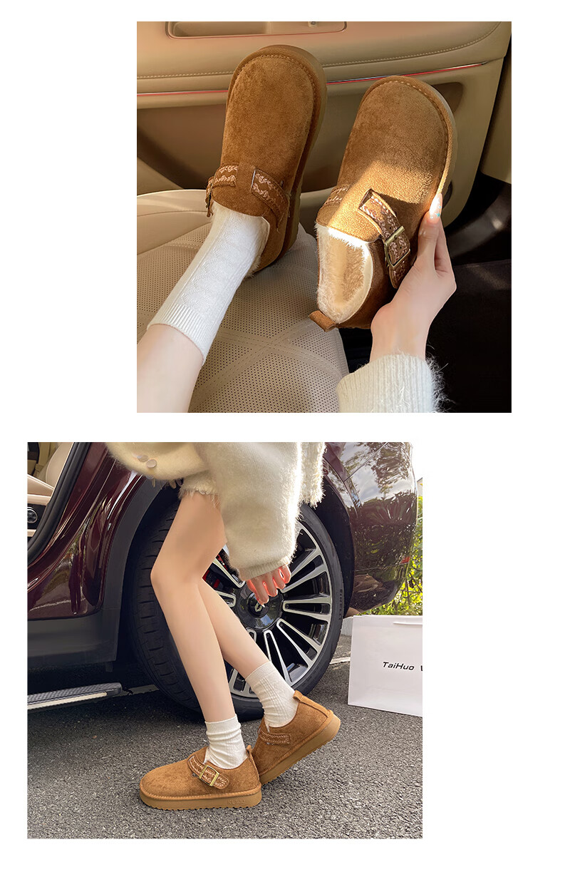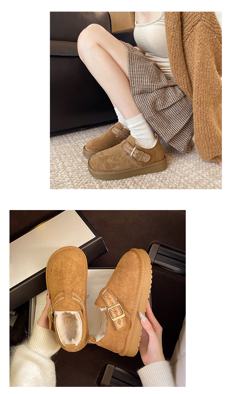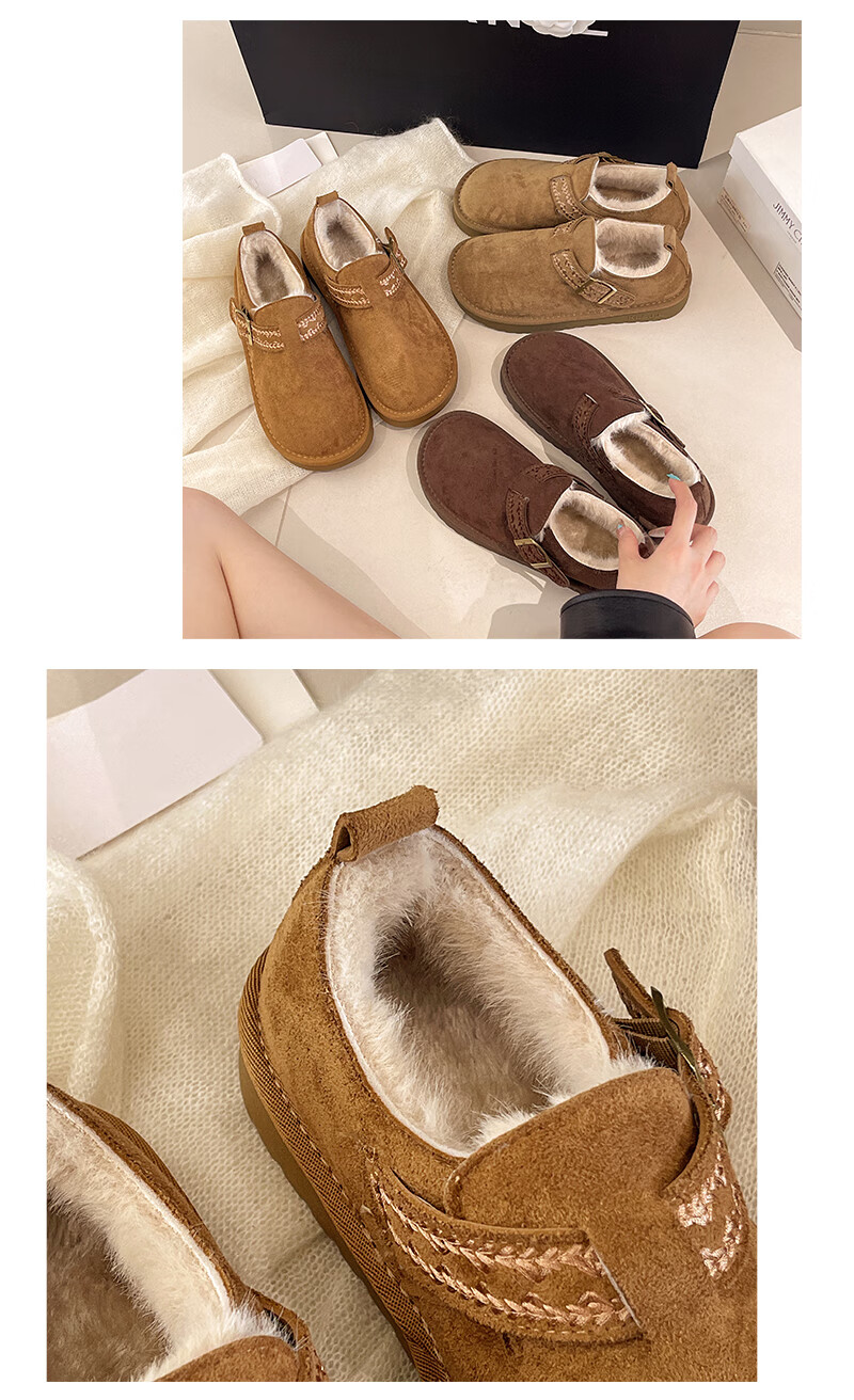 妙丽勃肯鞋女厚底复古加绒时尚保暖潮流2025冬季新款包头半拖鞋 咖色 37 (235mm) 标准码