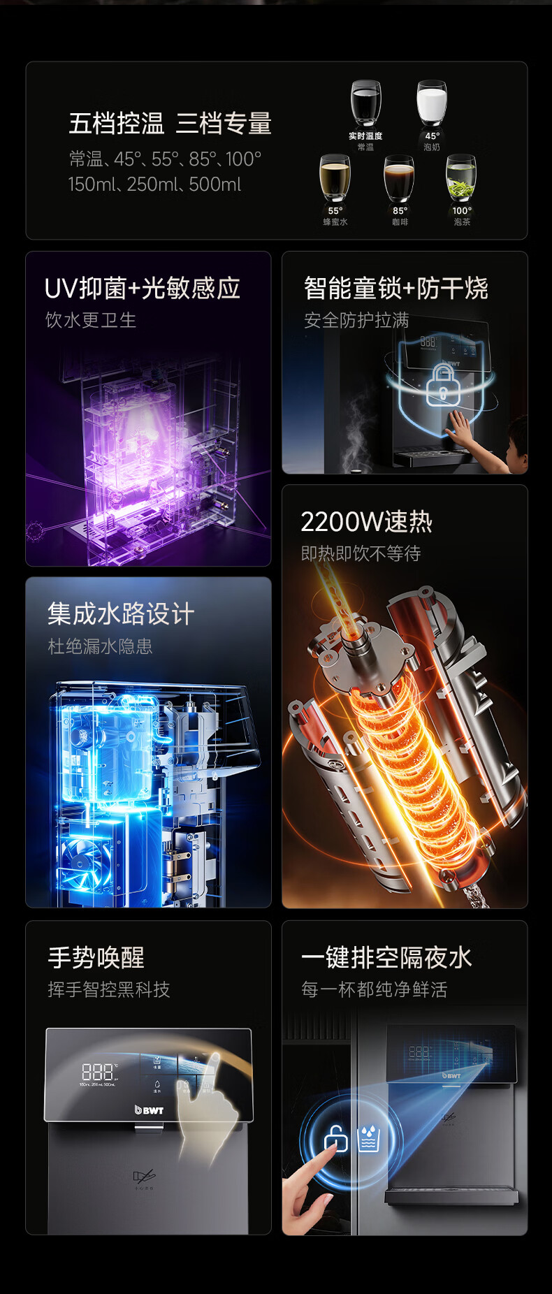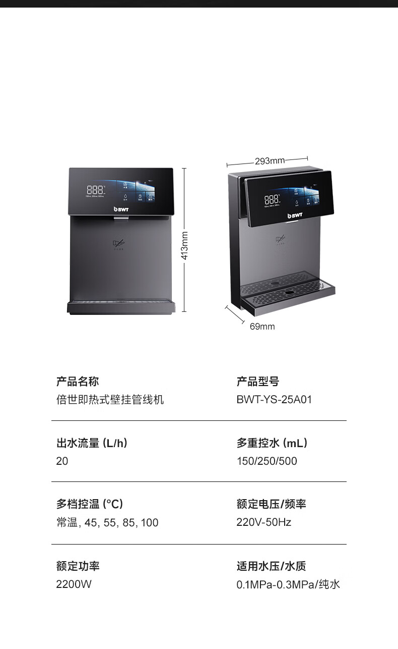 倍世家用净水器伴侣管线机超薄壁挂式多段控温定量取水净饮机加热即热式直饮水一体机 管线机-YS-25A01-白色 【免费上门安装】