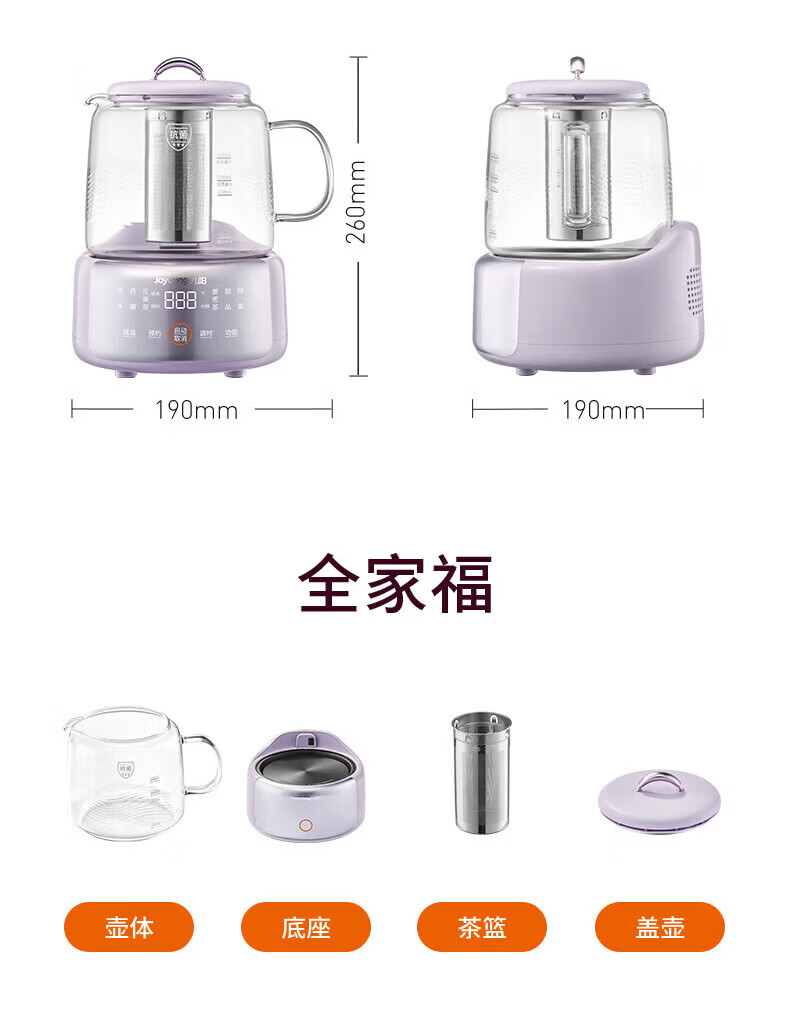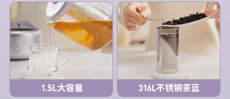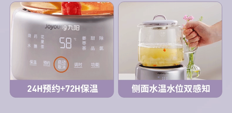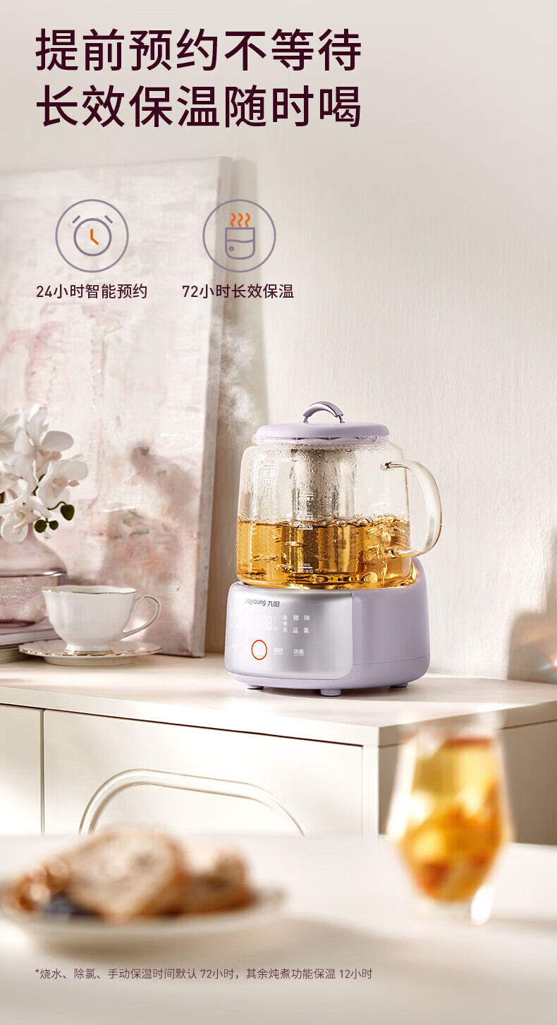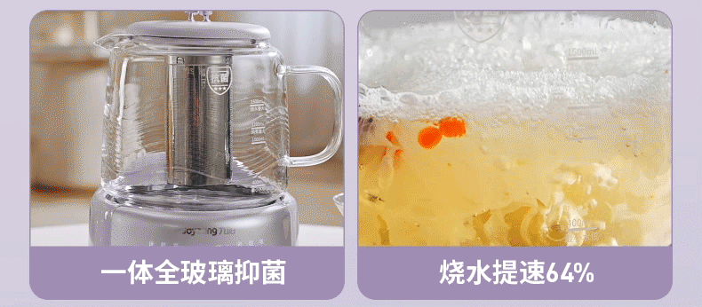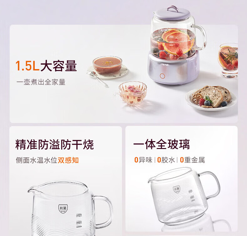 九阳(Joyoung)全玻璃母婴养生壶恒温壶1.5L大容量办公室多功能煮茶壶 0胶水0金属 72h保温 1.5L K15D-WY106 1.5L 【配茶篮】全玻璃大容量