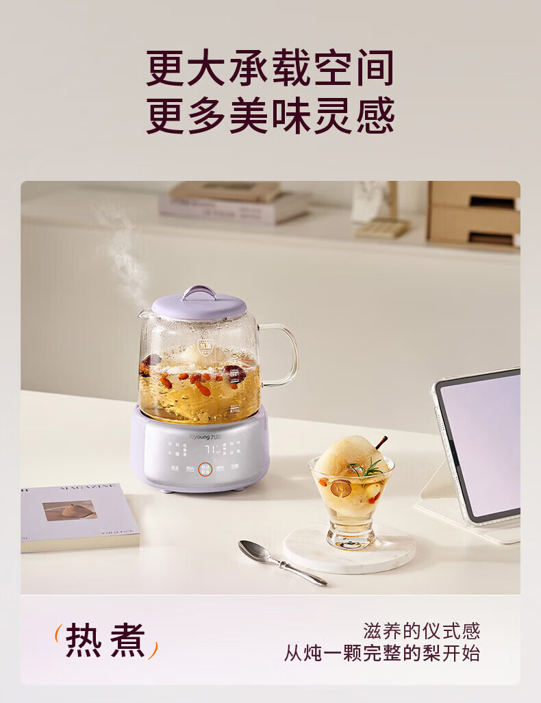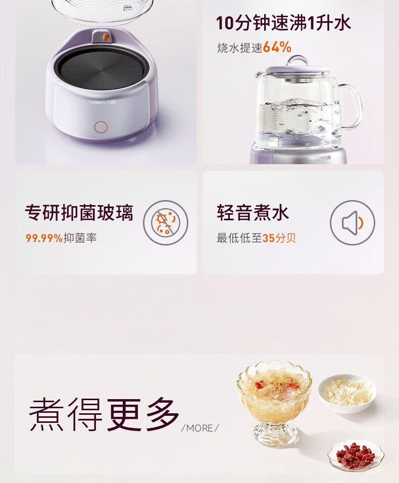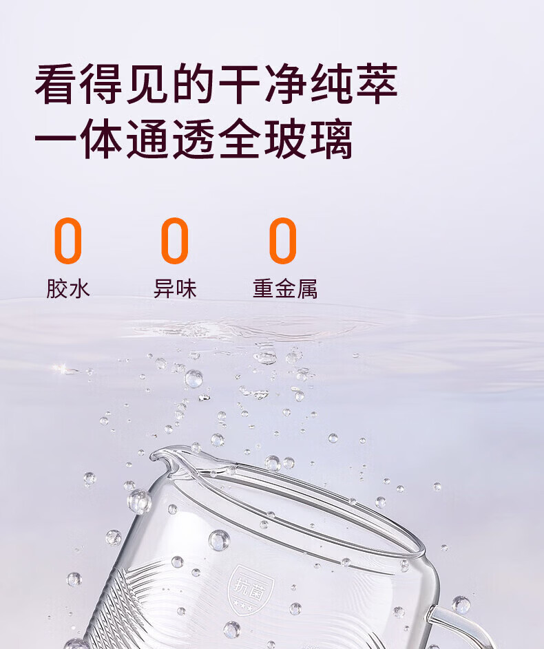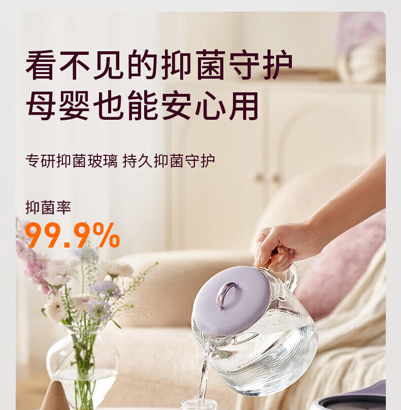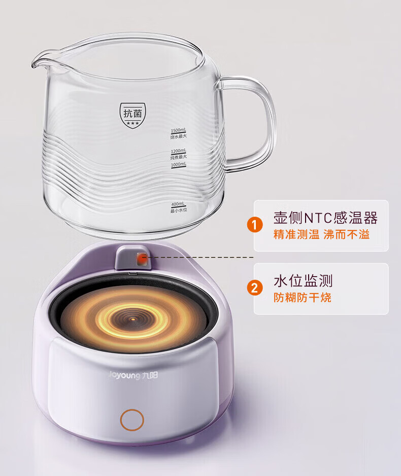 九阳(Joyoung)全玻璃母婴养生壶恒温壶1.5L大容量办公室多功能煮茶壶 0胶水0金属 72h保温 1.5L K15D-WY106 1.5L 【配茶篮】全玻璃大容量