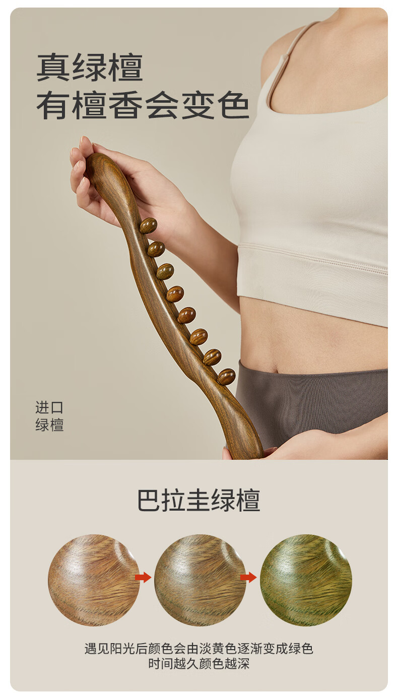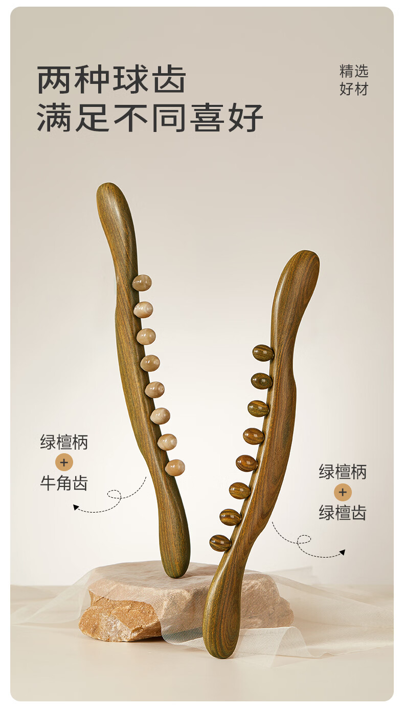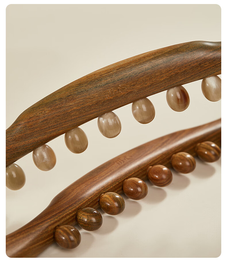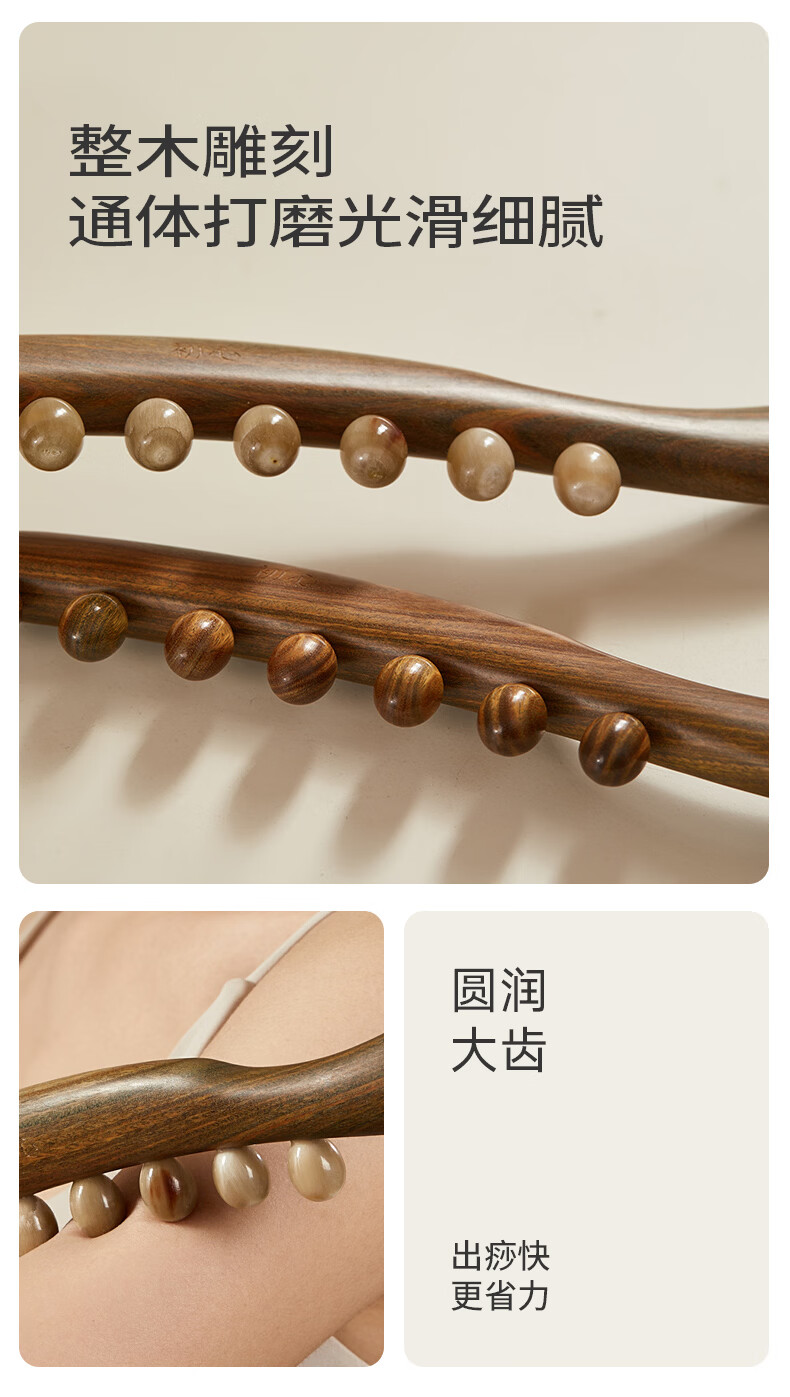 初心绿檀木擀筋棒按摩刮痧肩颈腹部经络疏通推背开背 经络按摩棒-绿檀+牛角齿