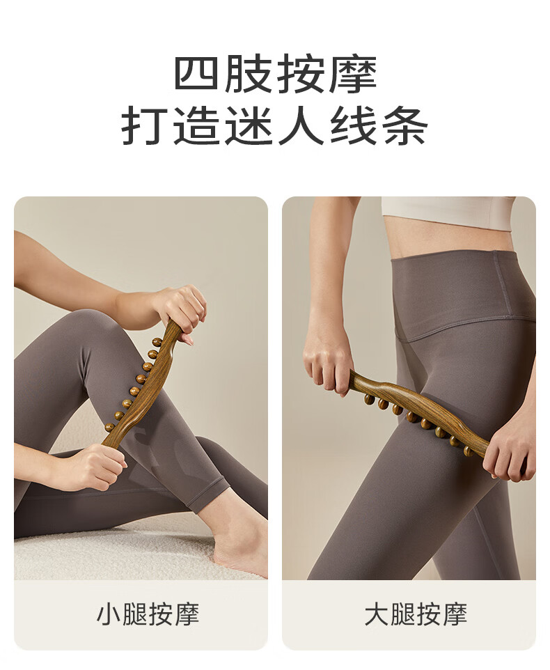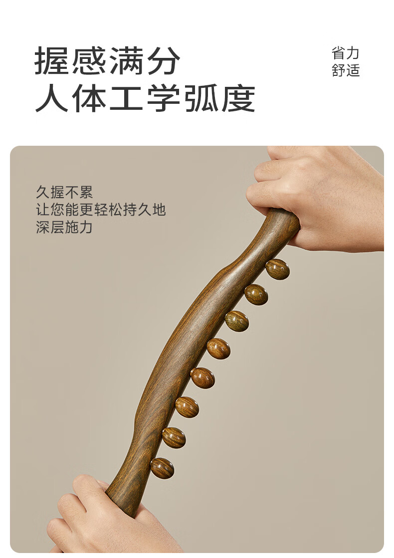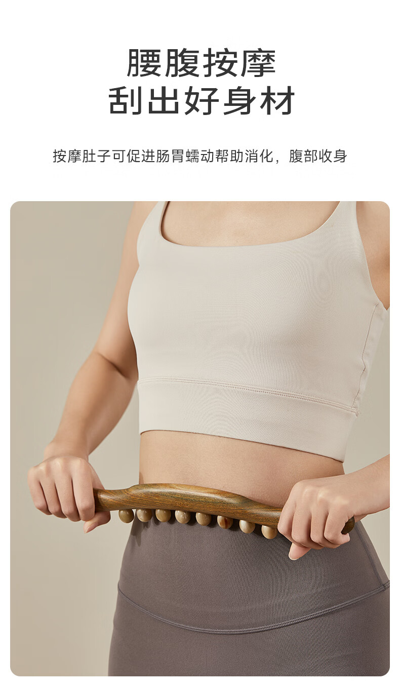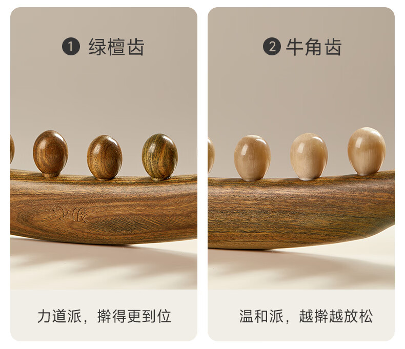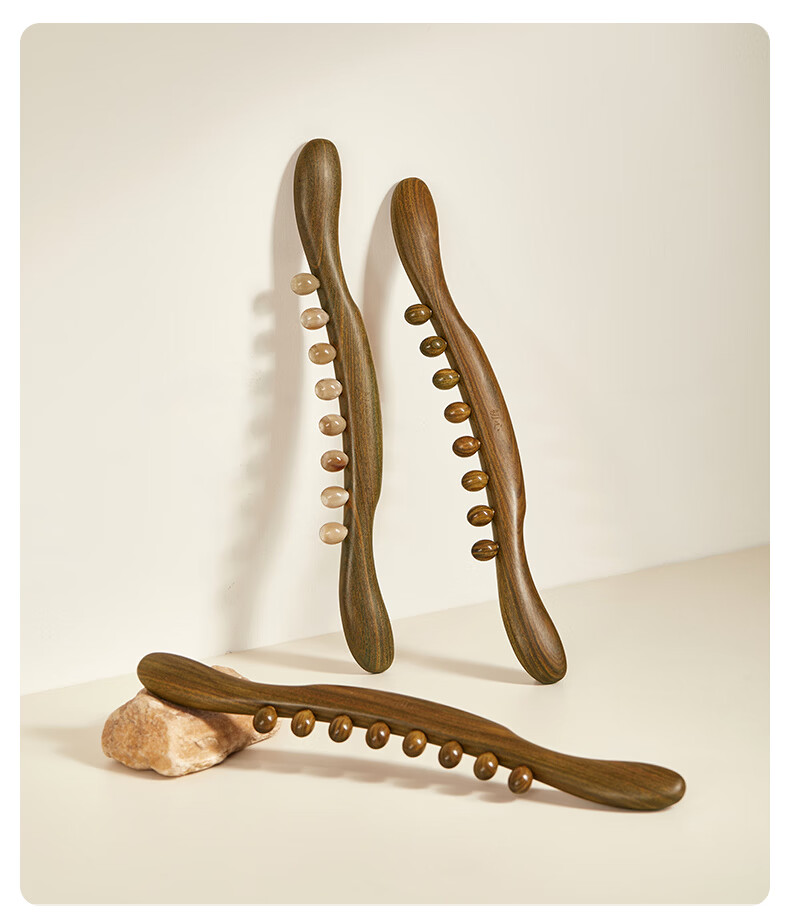 初心绿檀木擀筋棒按摩刮痧肩颈腹部经络疏通推背开背 经络按摩棒-绿檀+牛角齿