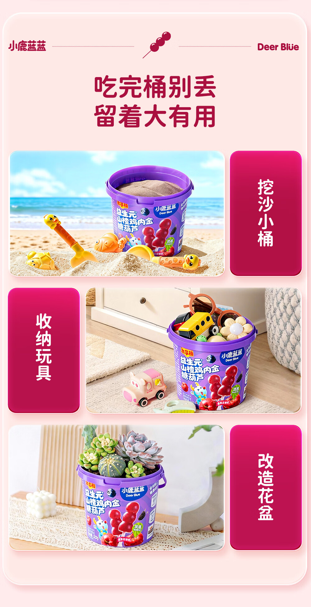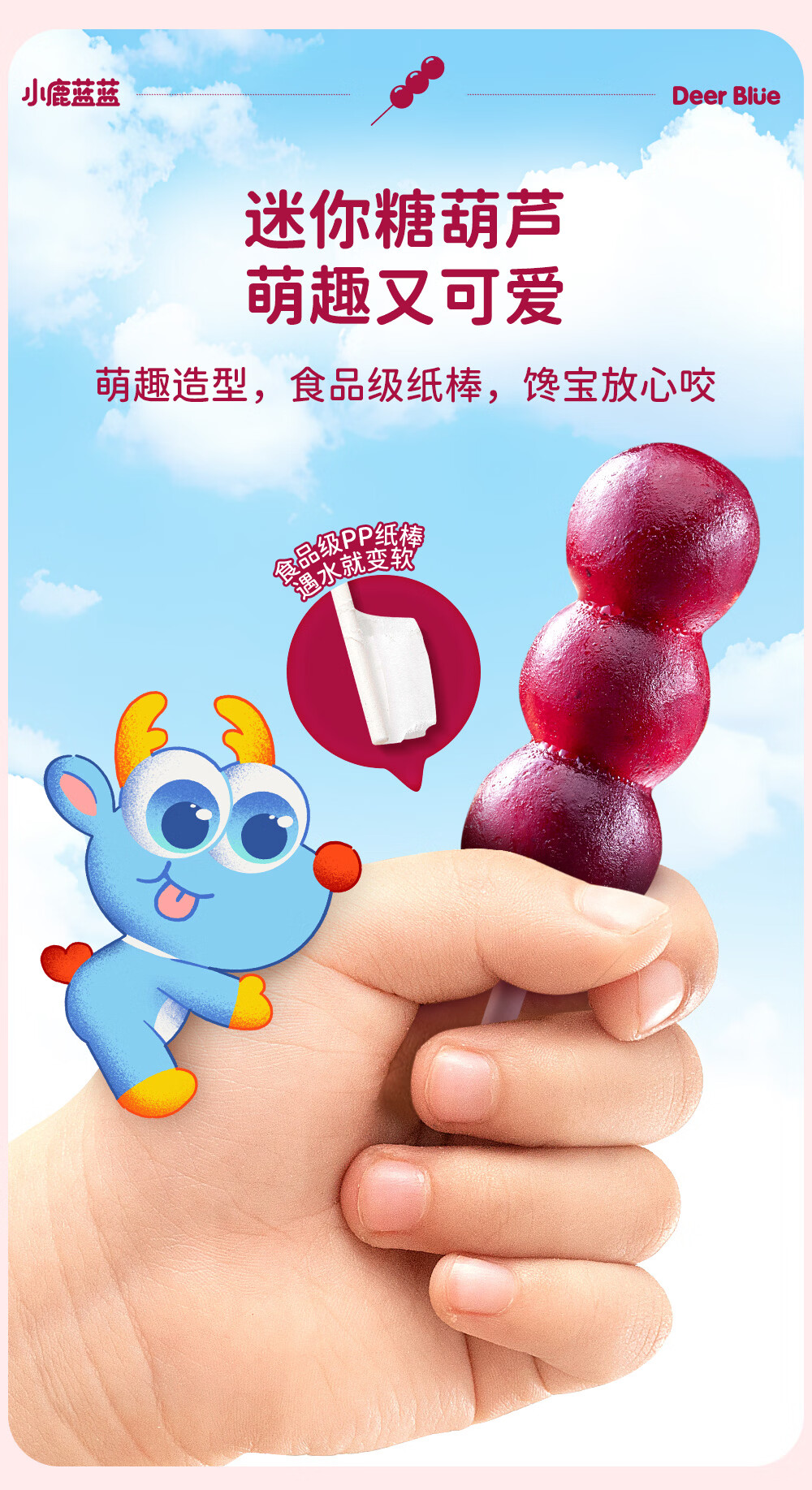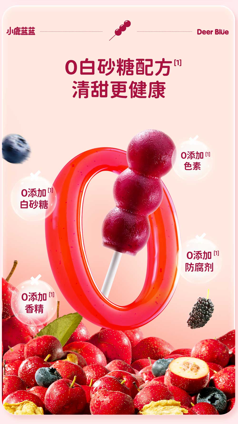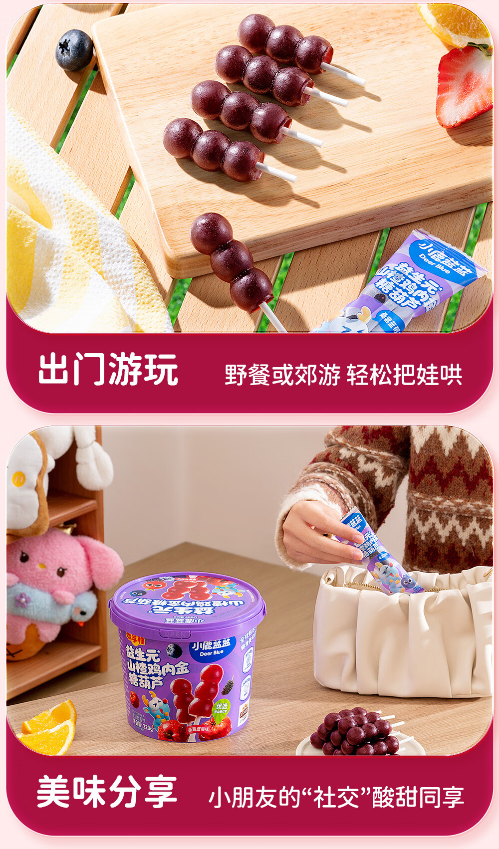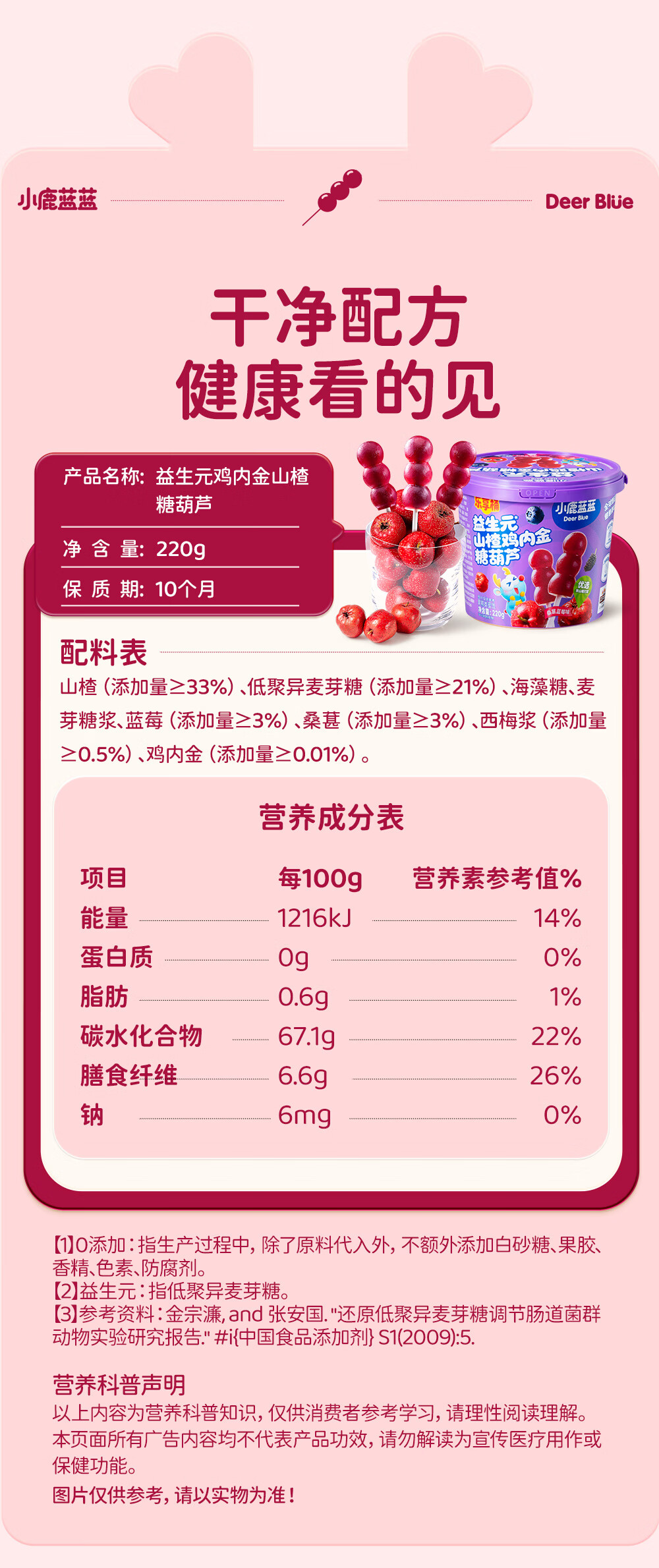 小鹿蓝蓝0添加蔗糖 益生元山楂鸡内金糖葫芦宝宝儿童山楂棒桑葚蓝莓味220g