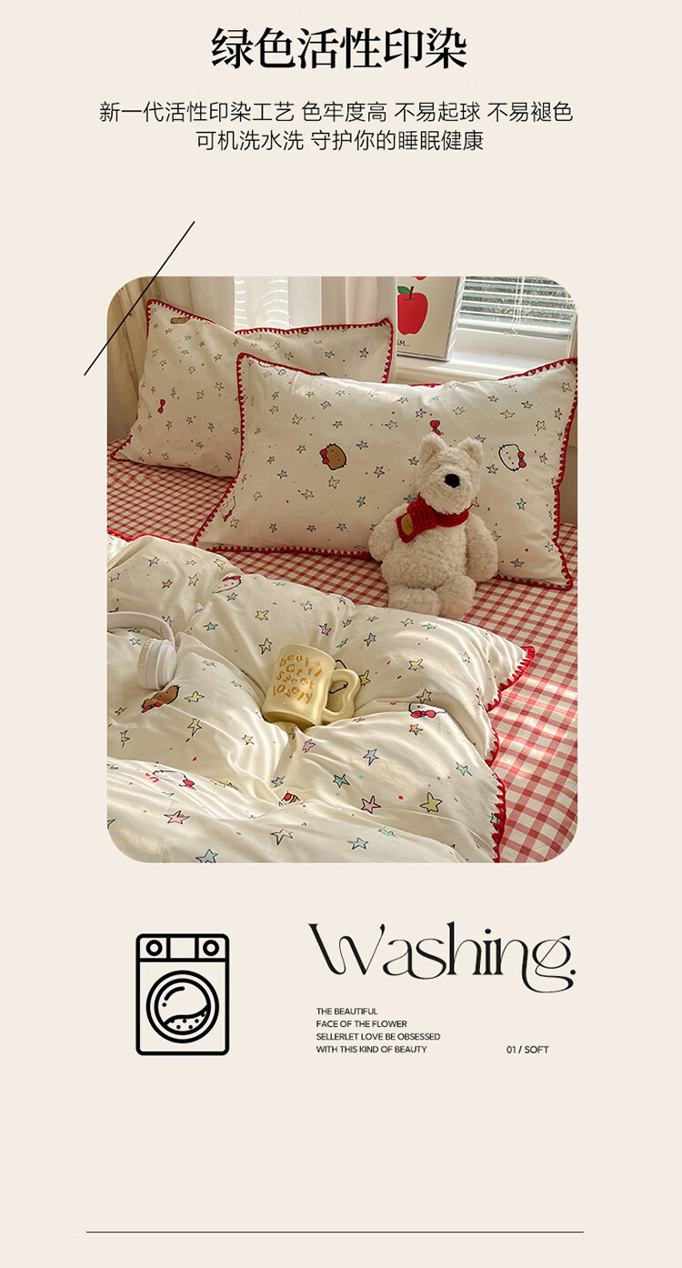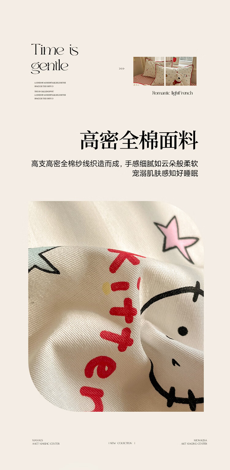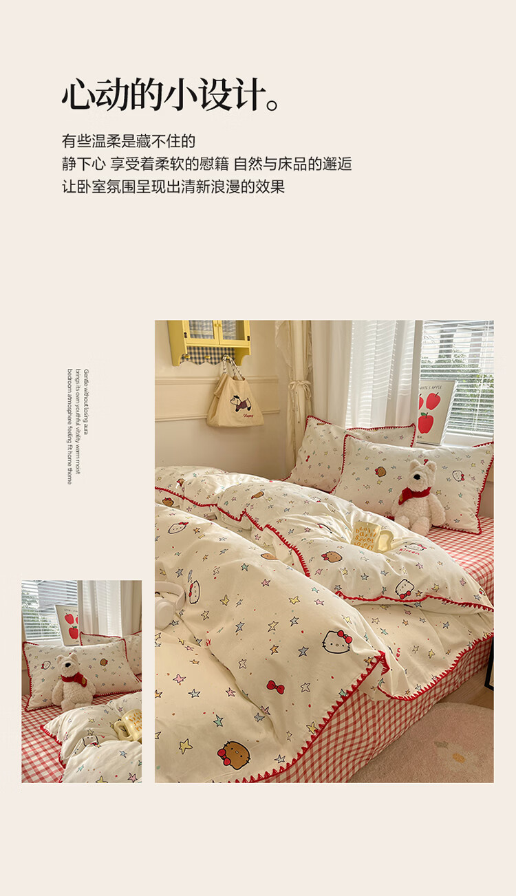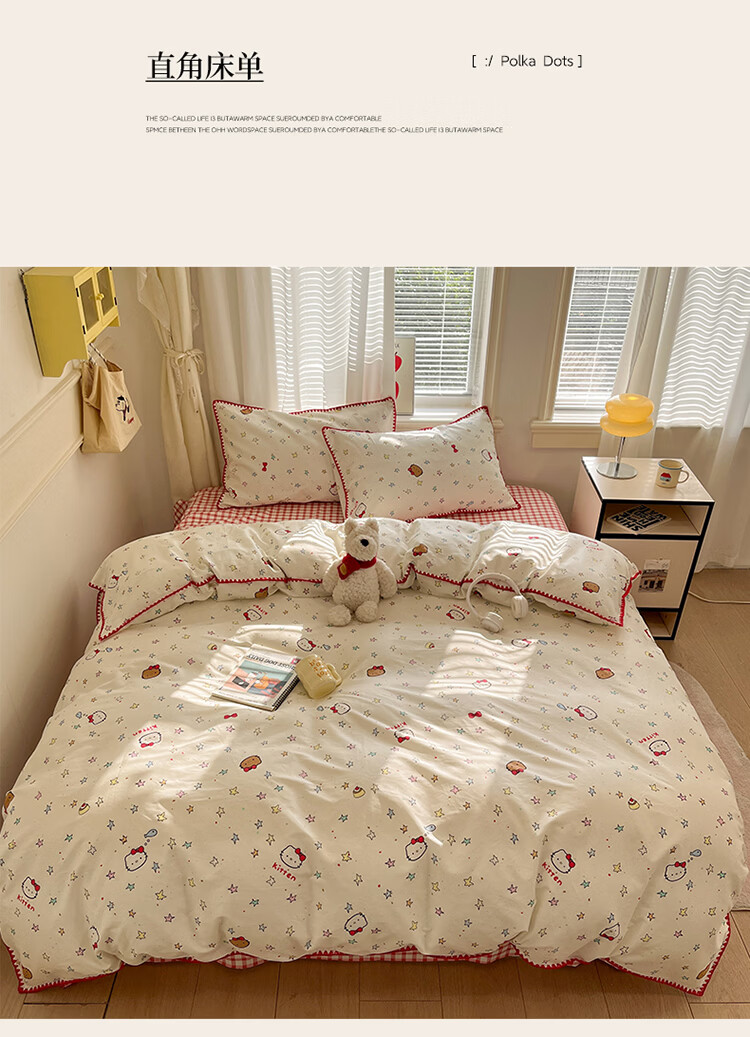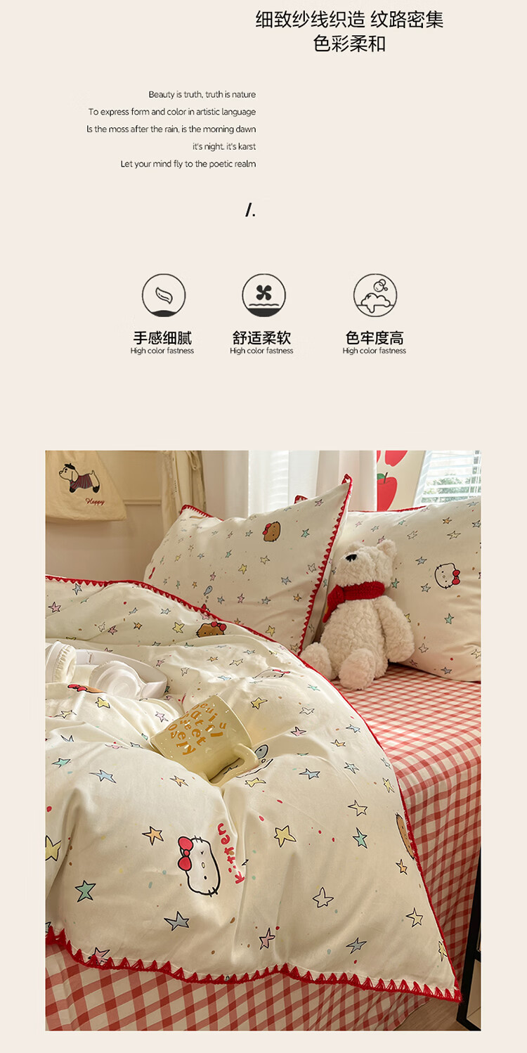 无印良品卡通风纯棉床单四件套全棉裸睡床上用品被套床笠款四季通用三件套 星星猫【全棉贝壳边 亲肤柔软】 1.8m 床笠款 四件套-被套200*230cm