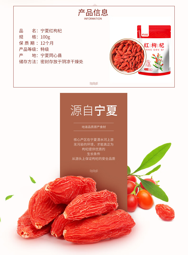 吟山红正宗果茎食补干货宁夏红枸杞子泡水泡茶煮粥煲汤枸杞干货 宁夏红枸杞100g