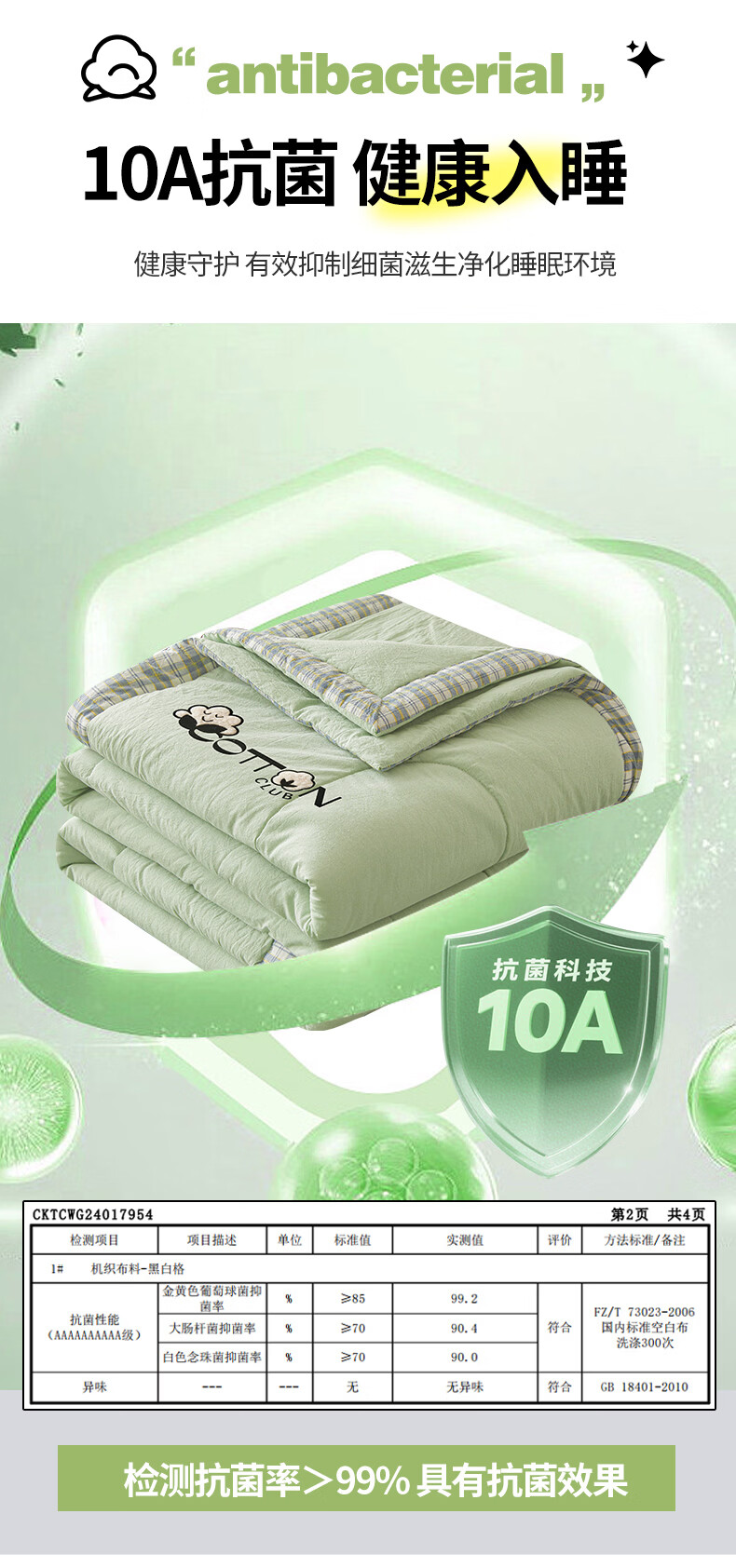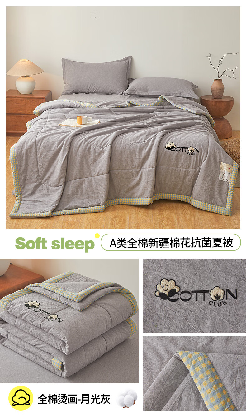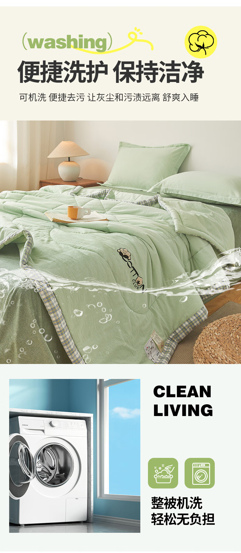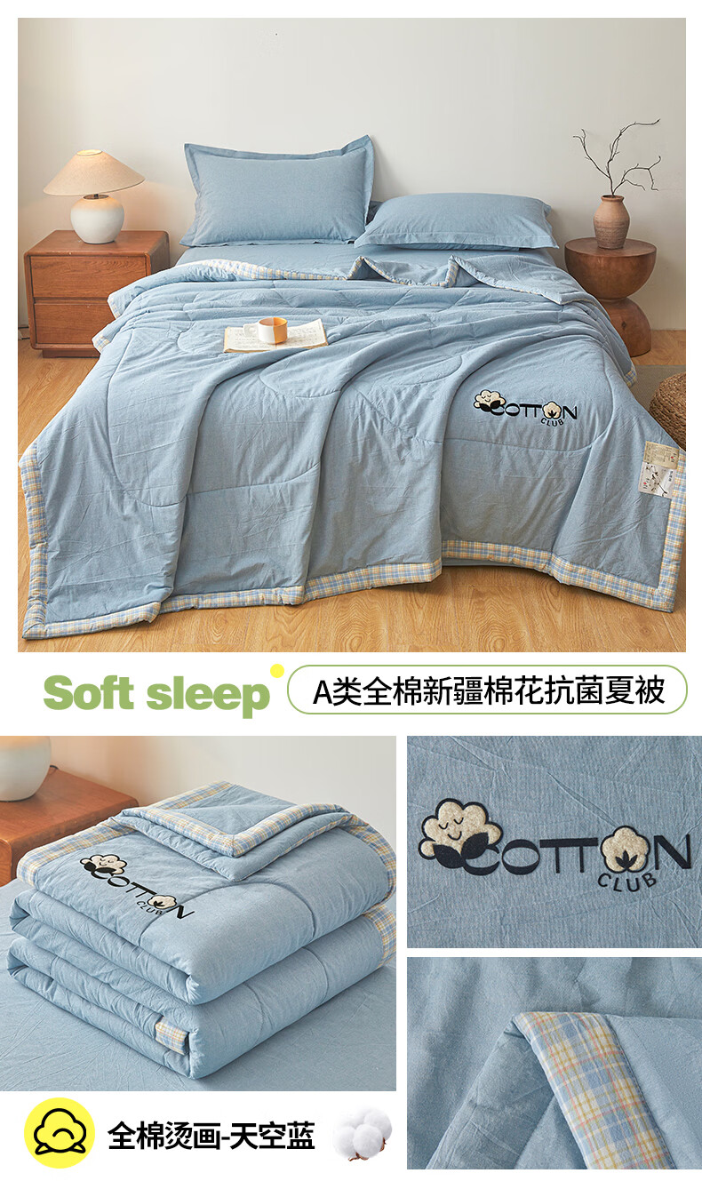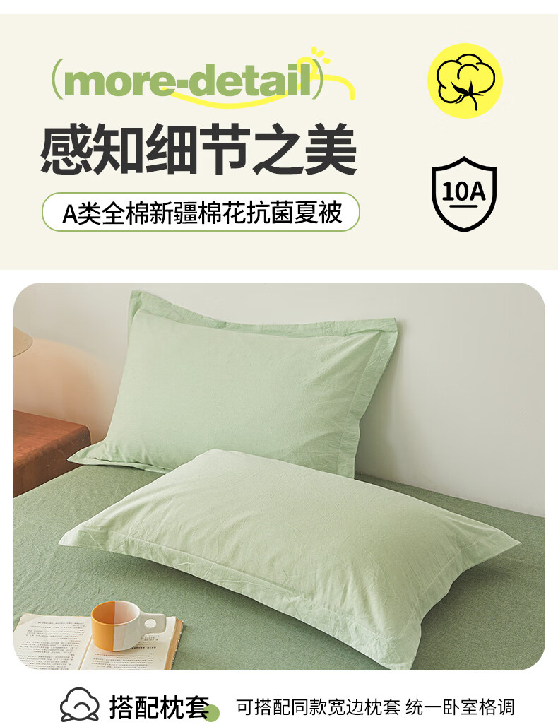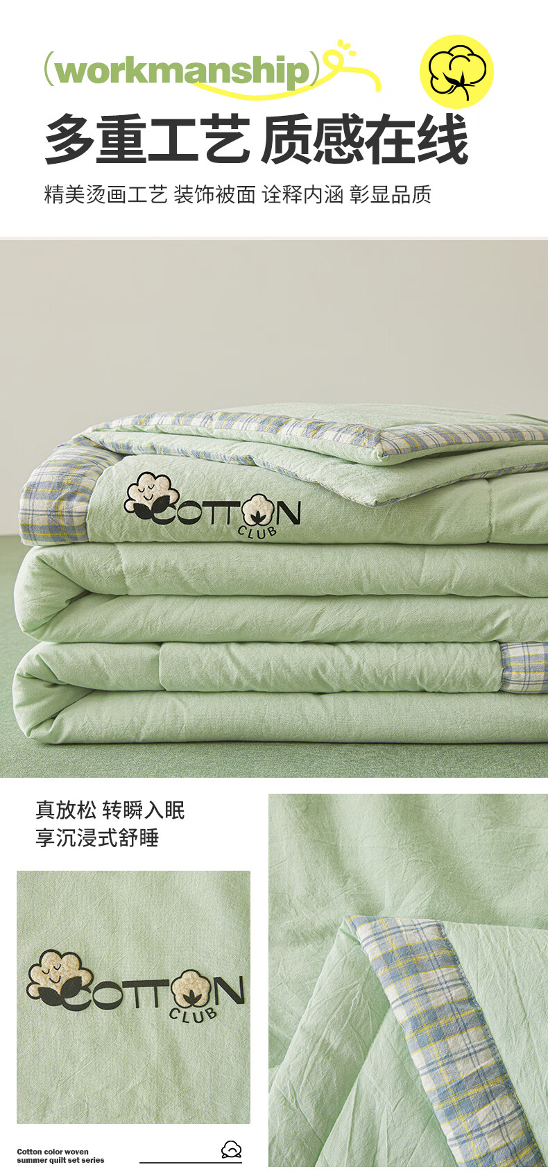 一默棉花被纯棉新疆棉花抗菌夏被2026春夏薄被子A类全棉空调被夏凉被 全棉烫画-清新绿 150x200cm