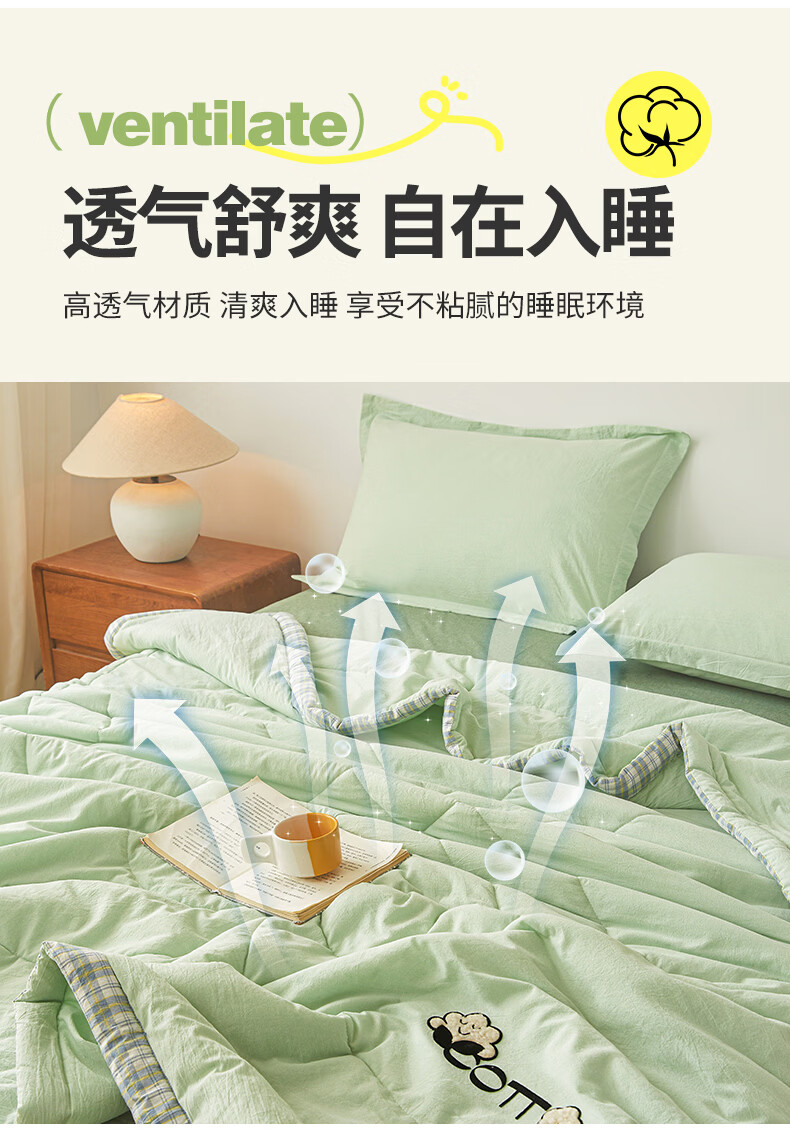 水星家纺被子夏凉被 空调被可机洗凉感天丝棉夏被 A类夏被 植愈舒爽【60S莱赛尔纤维/A类抑菌】绿 200cm*230cm