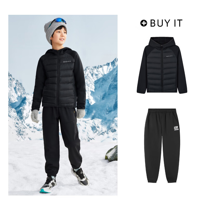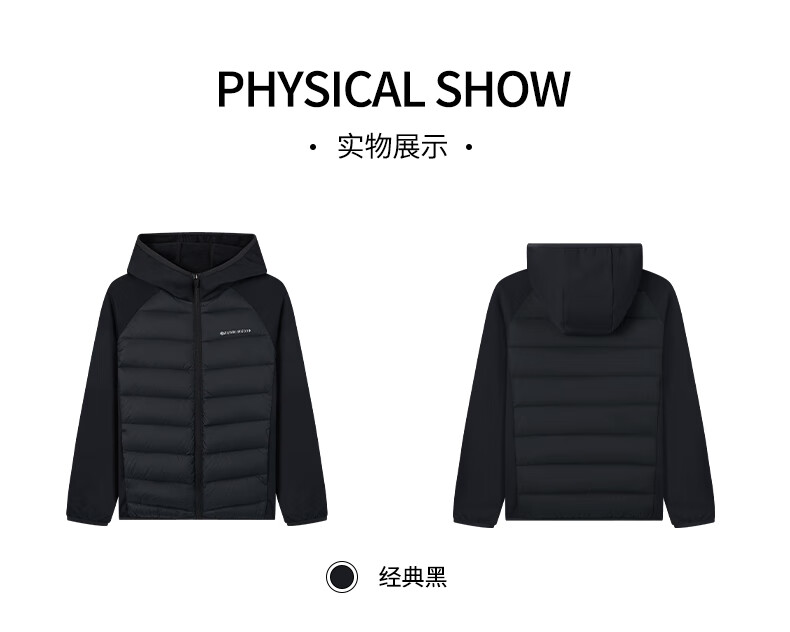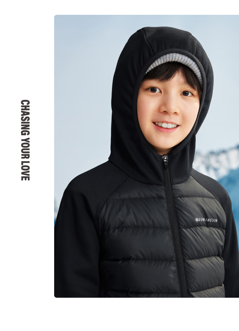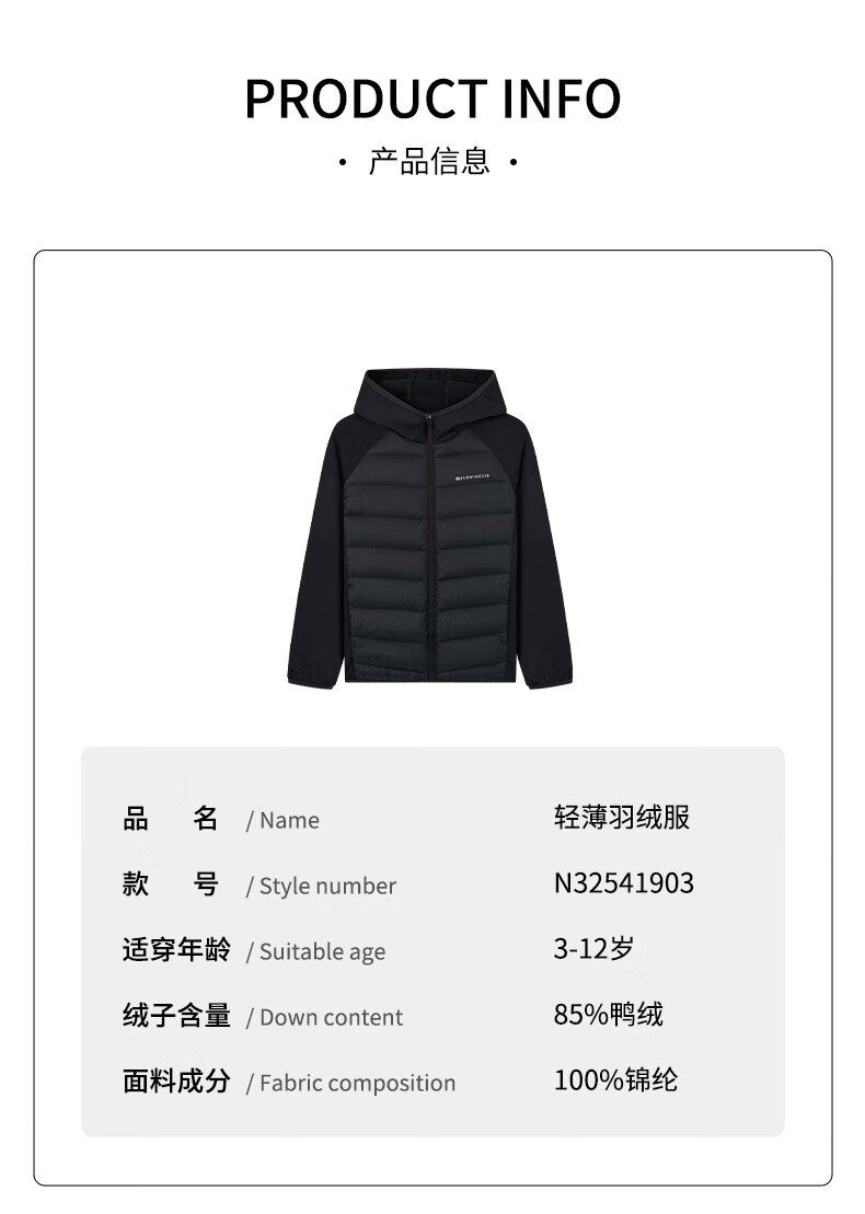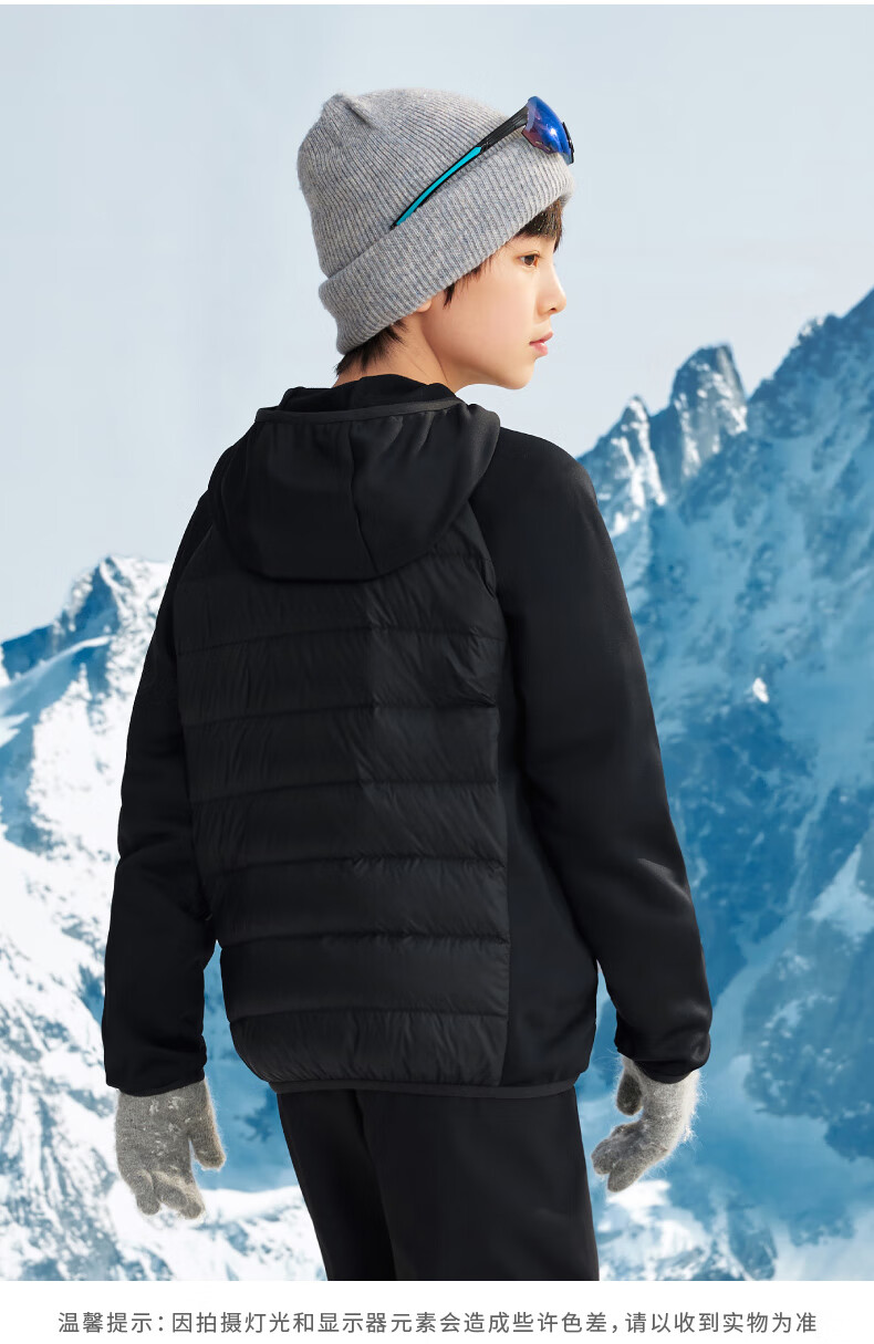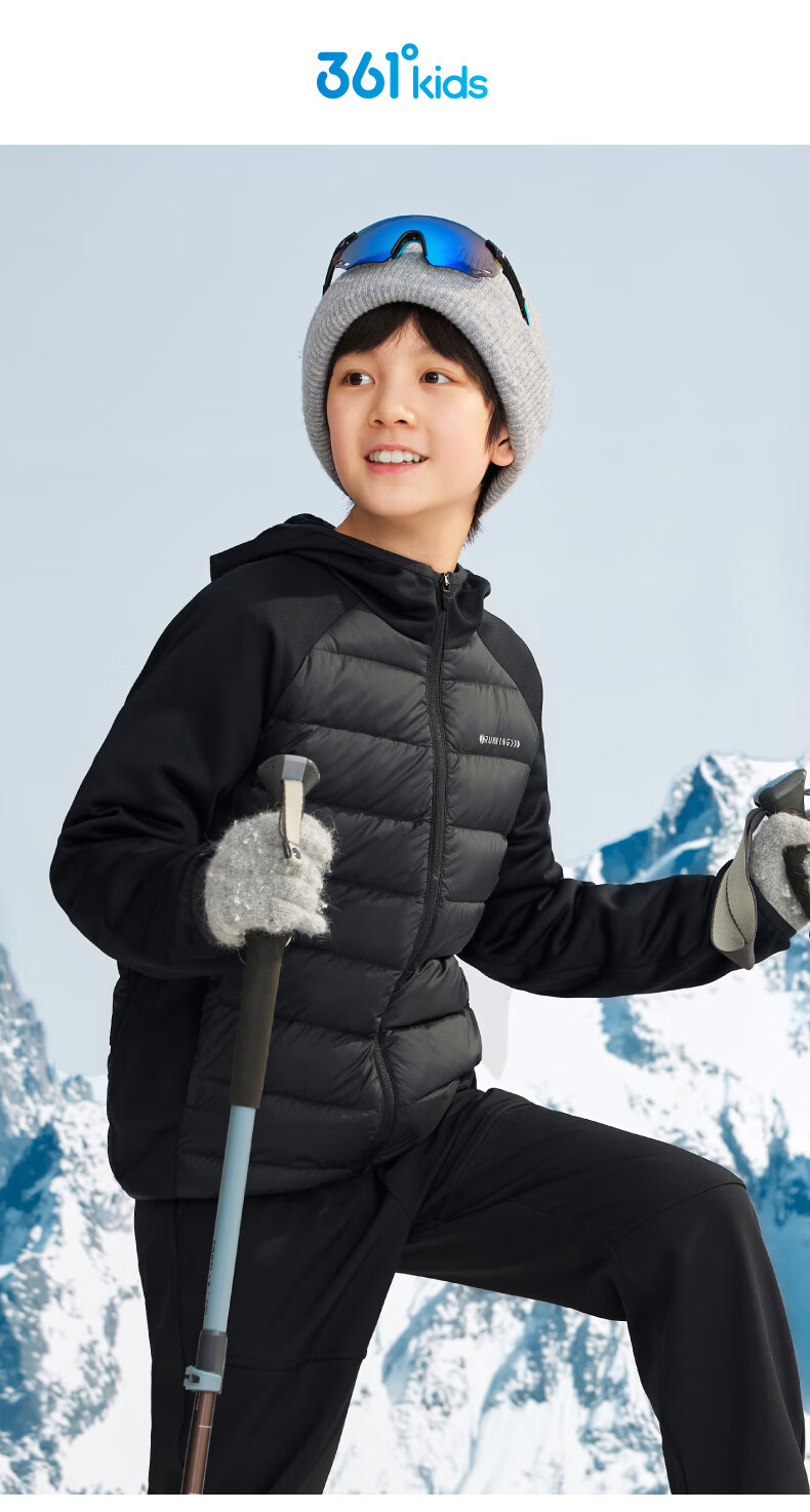 361°儿童轻薄羽绒服2025冬季男女3-14岁保暖拼接外套 黑160