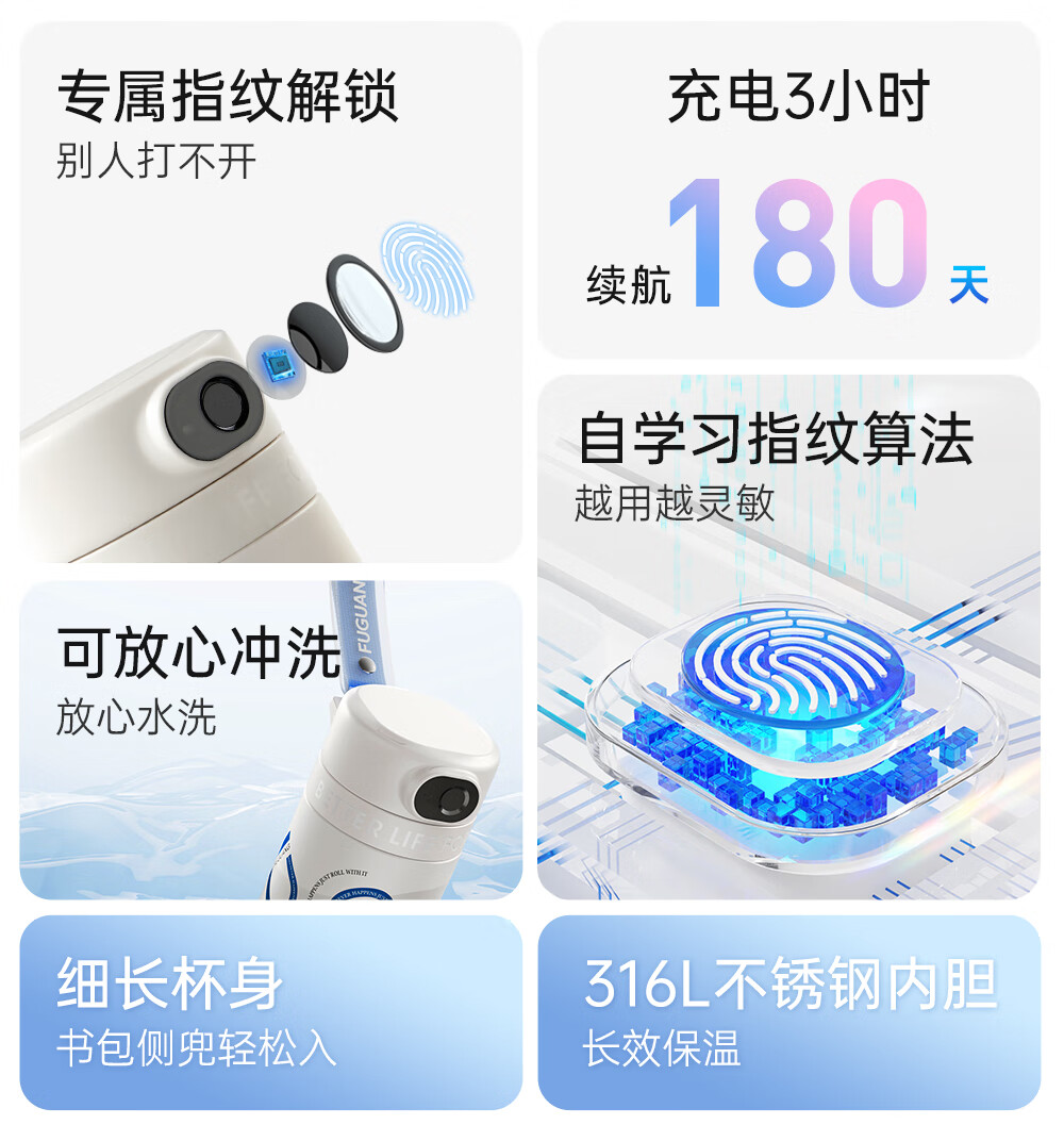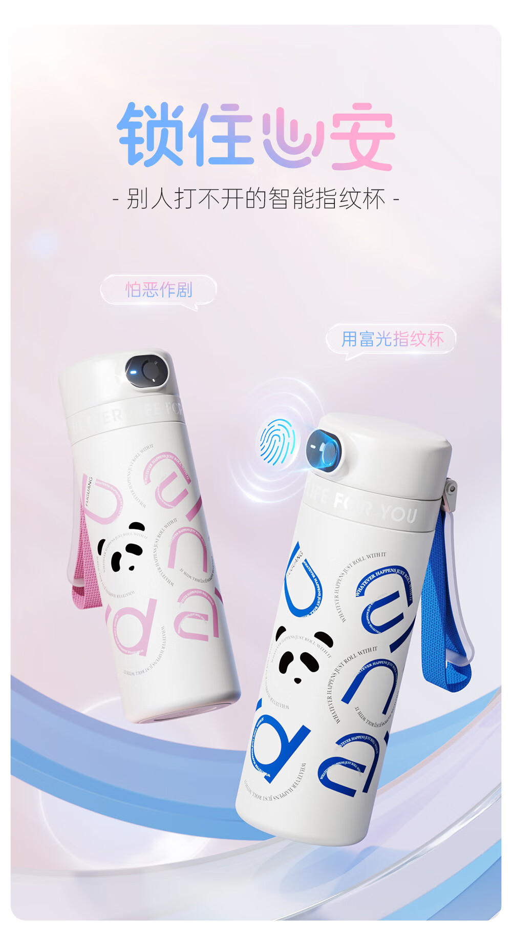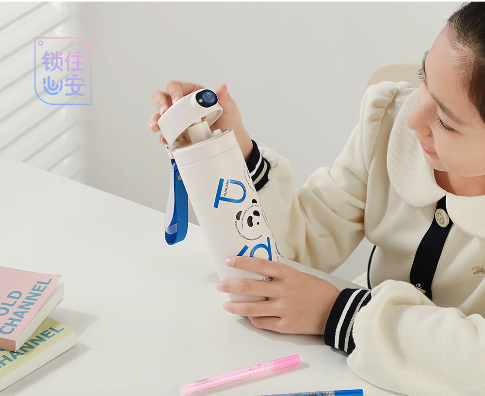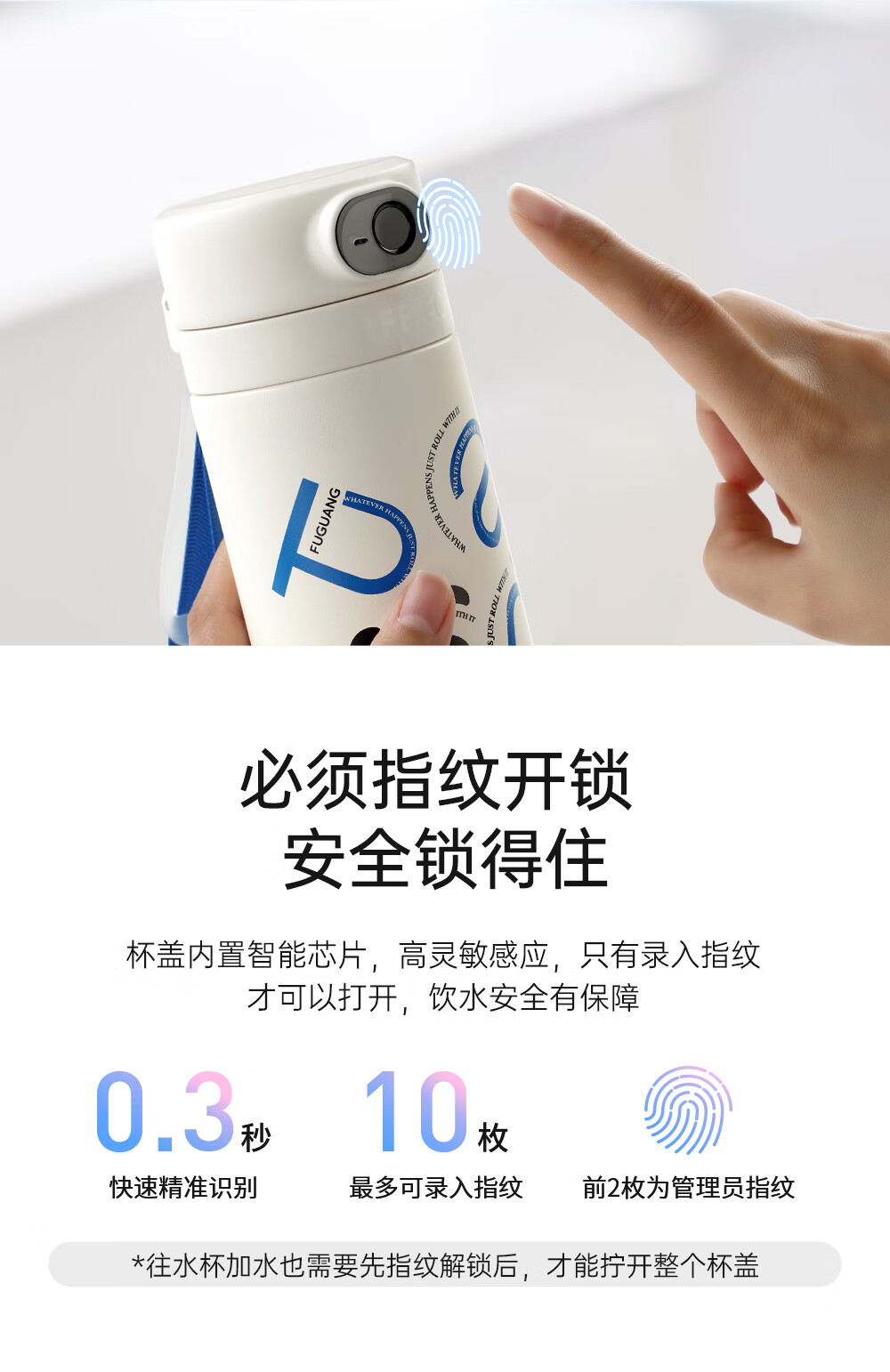 FGA富光智能指纹解锁密码儿童保温杯男女小学生吸管水杯子节日礼物蓝