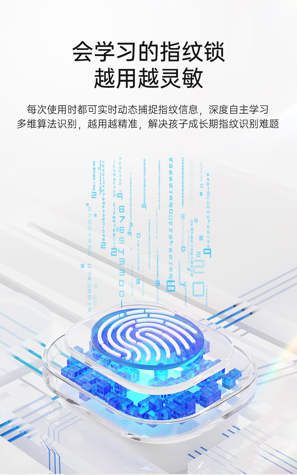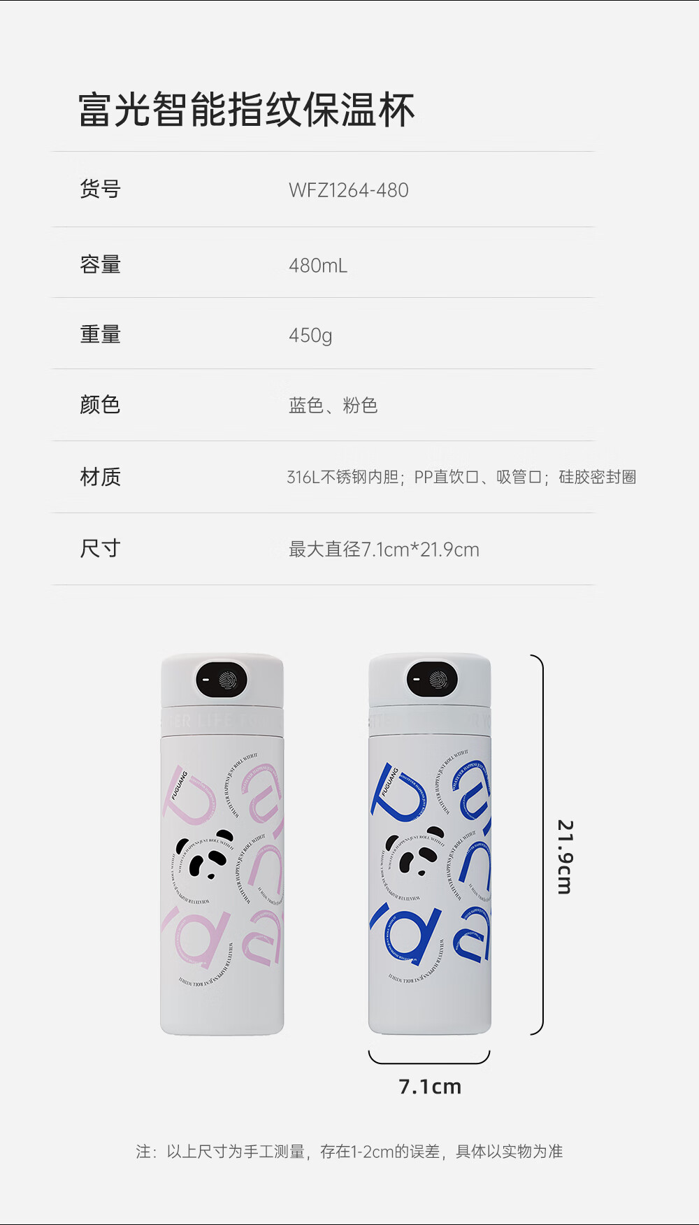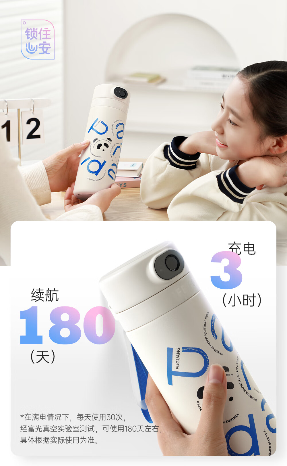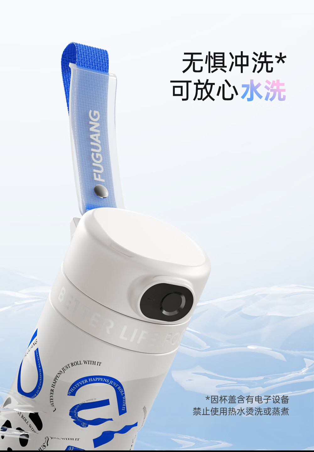 FGA富光智能指纹解锁密码儿童保温杯男女小学生吸管水杯子节日礼物蓝