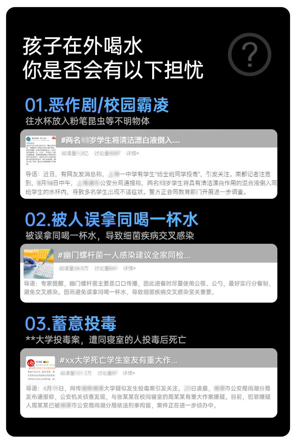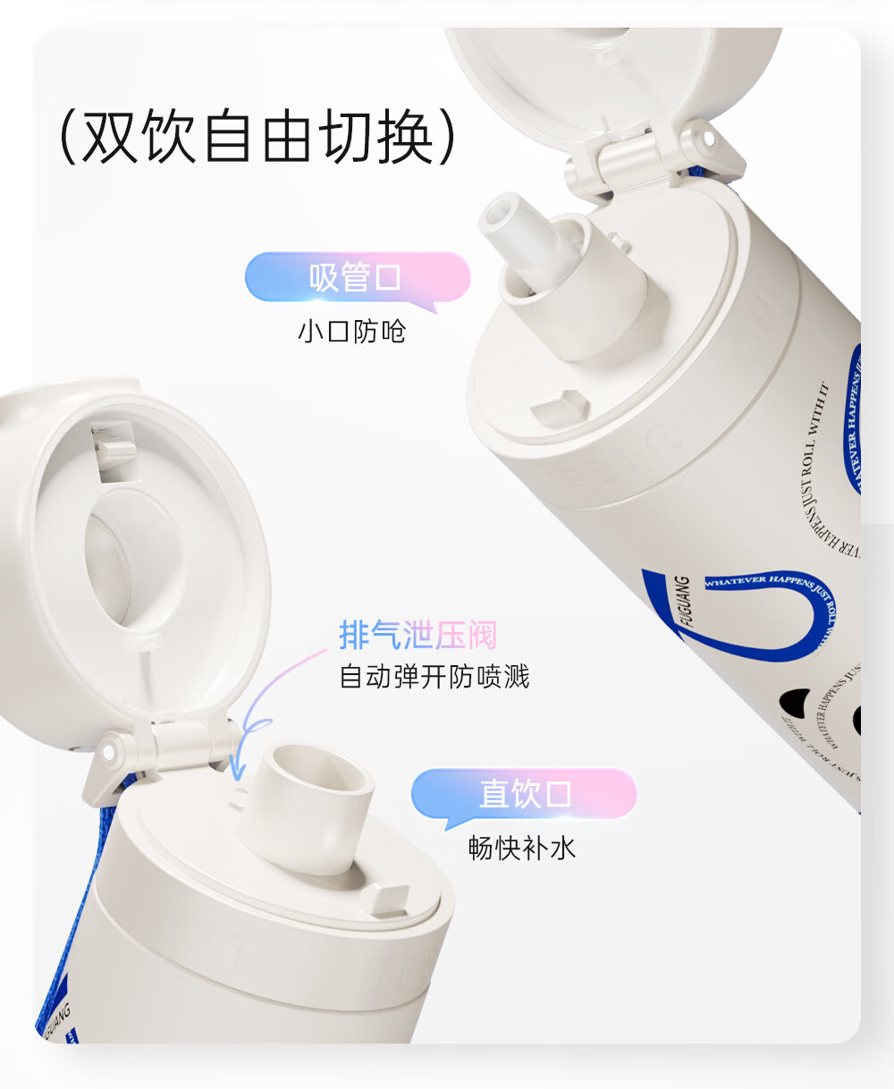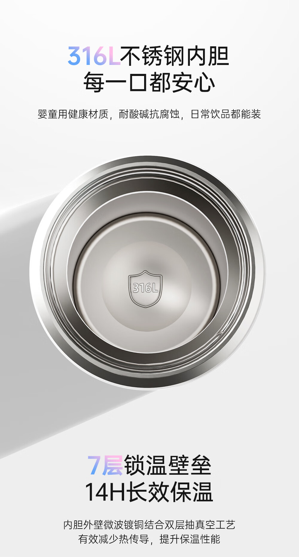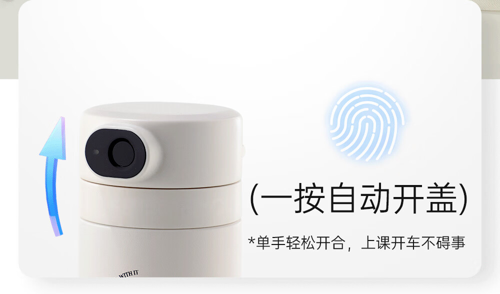 FGA富光智能指纹解锁密码儿童保温杯男女小学生吸管水杯子节日礼物蓝