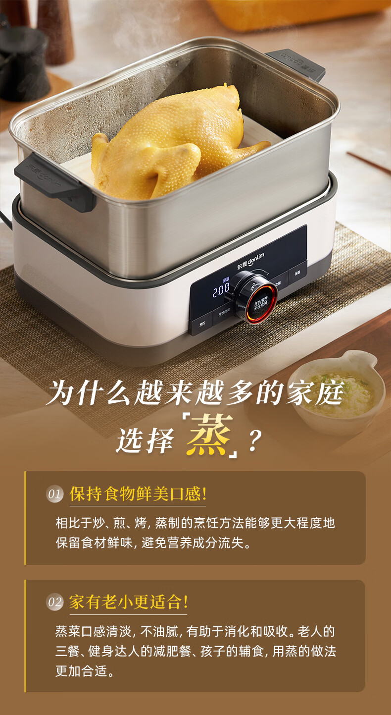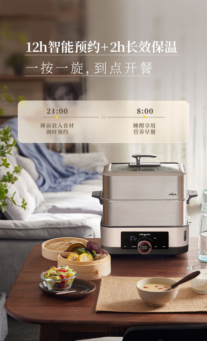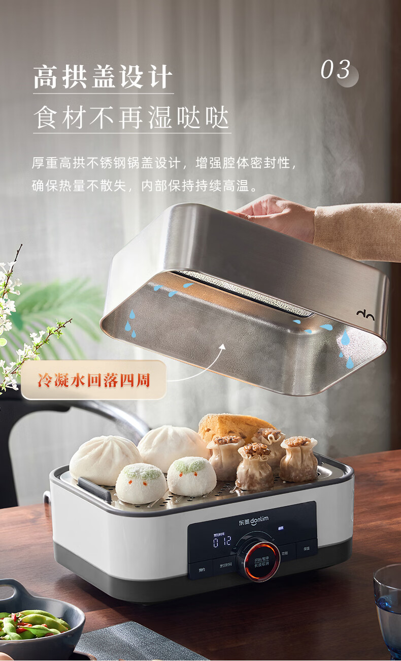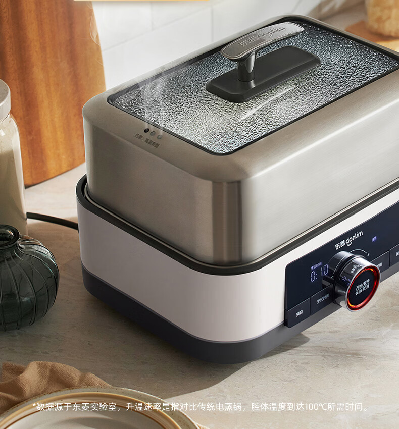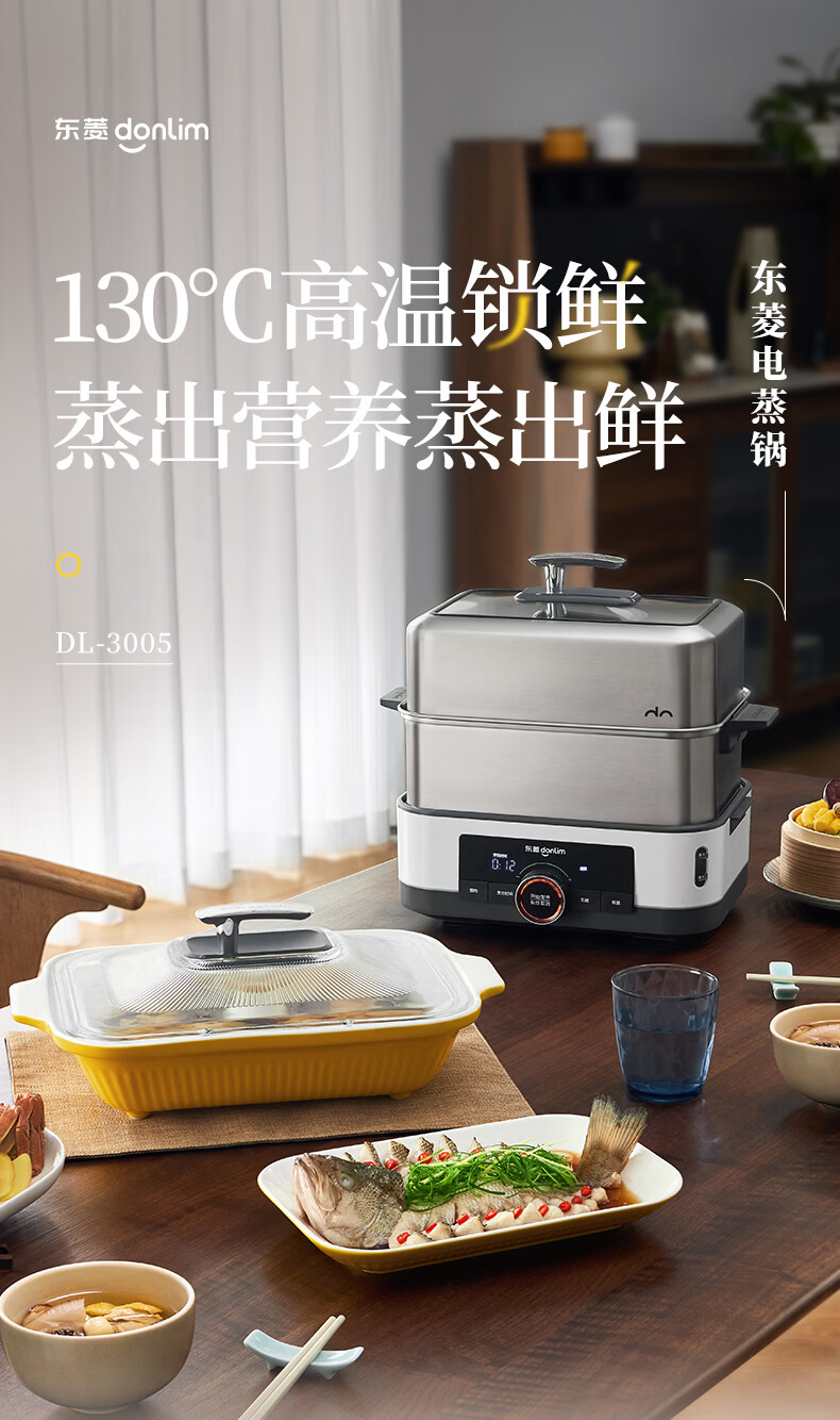 东菱(Donlim)电蒸锅18L大容量不锈钢蒸锅家用6-8人蒸炖一体速蒸锅预约定时保温多功能蒸汽锅DL-3005三层全家福