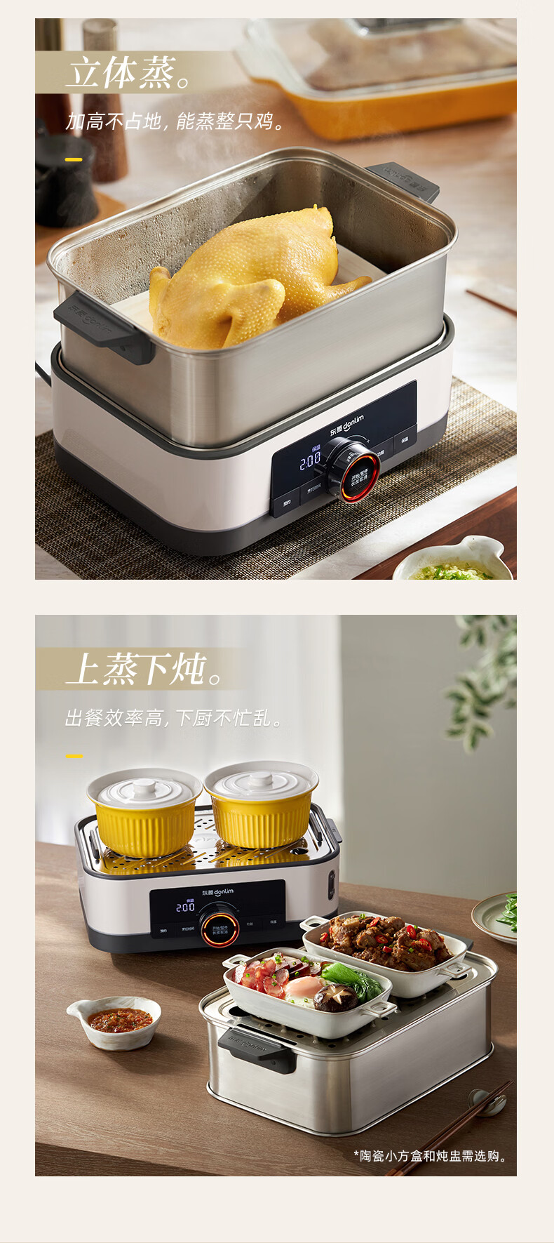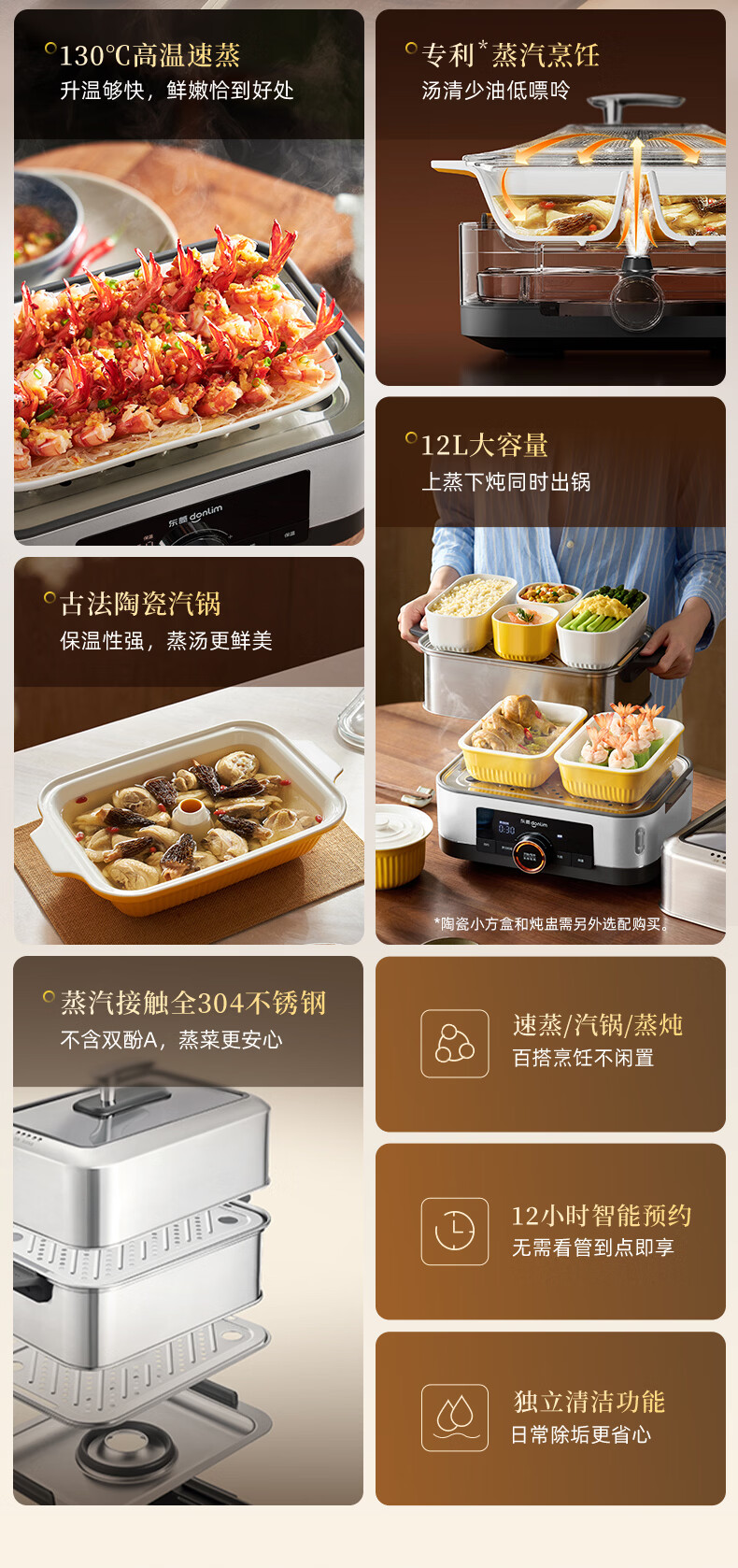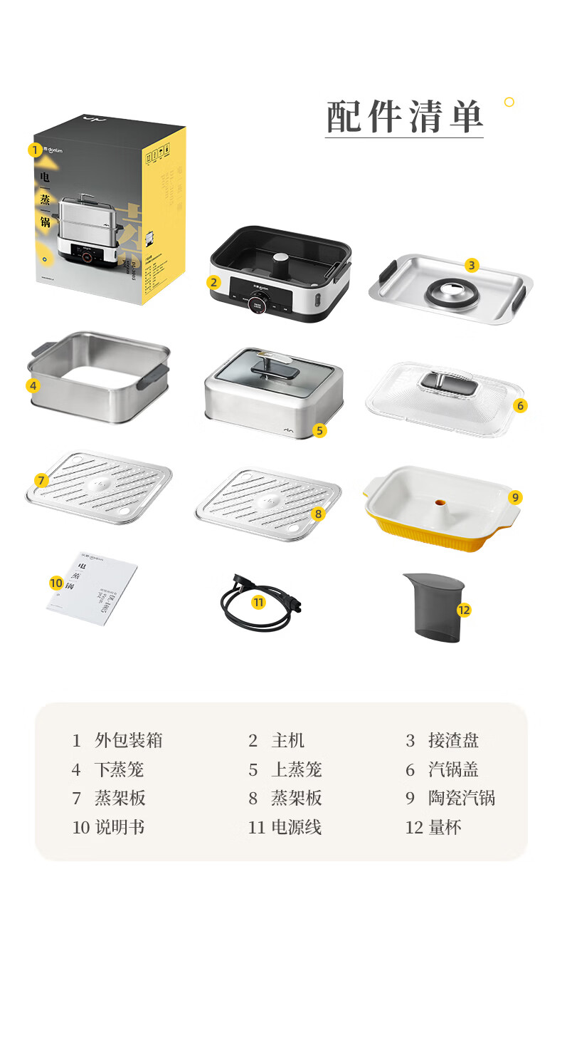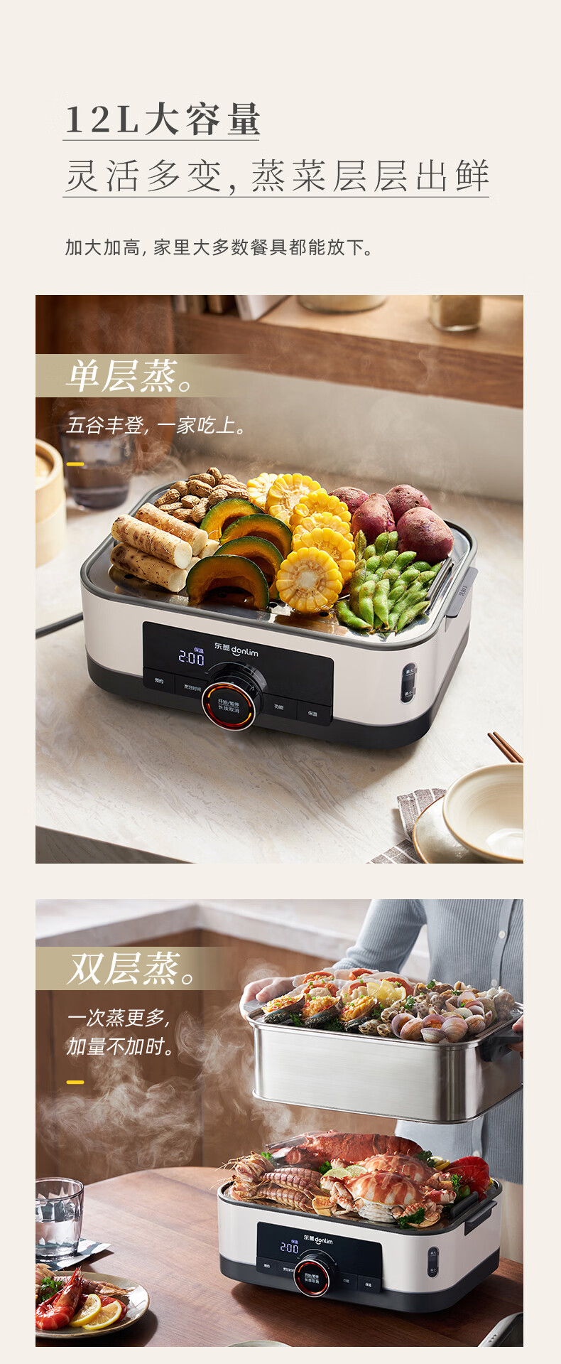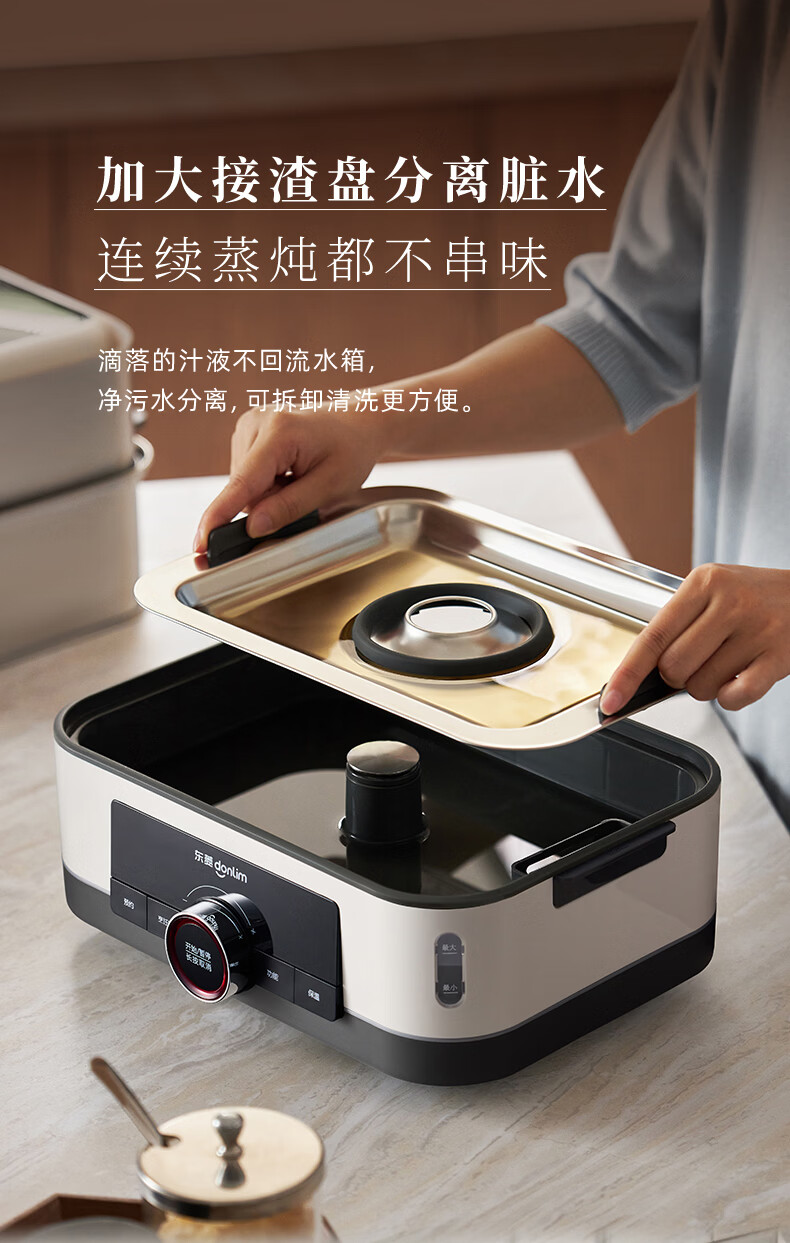 东菱(Donlim)电蒸锅18L大容量不锈钢蒸锅家用6-8人蒸炖一体速蒸锅预约定时保温多功能蒸汽锅DL-3005三层全家福