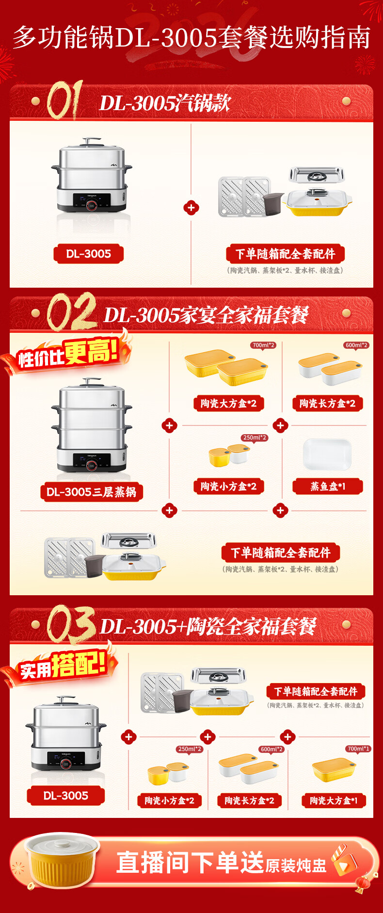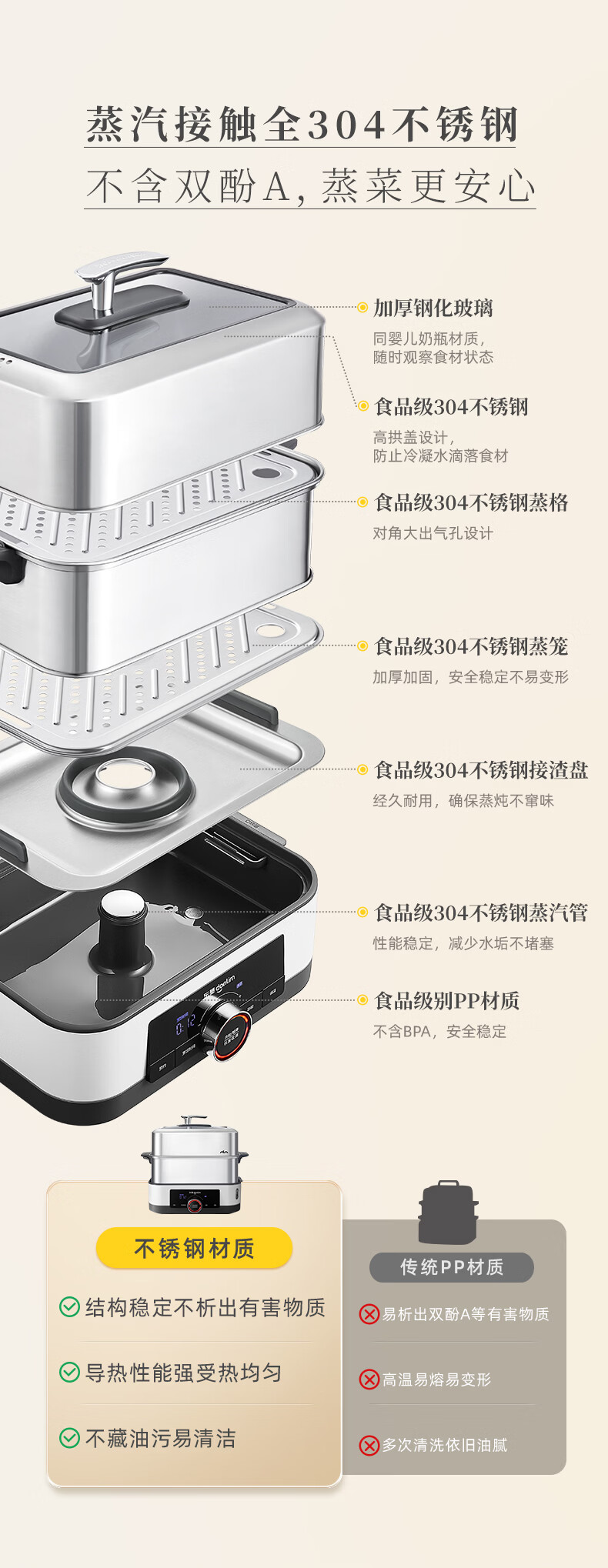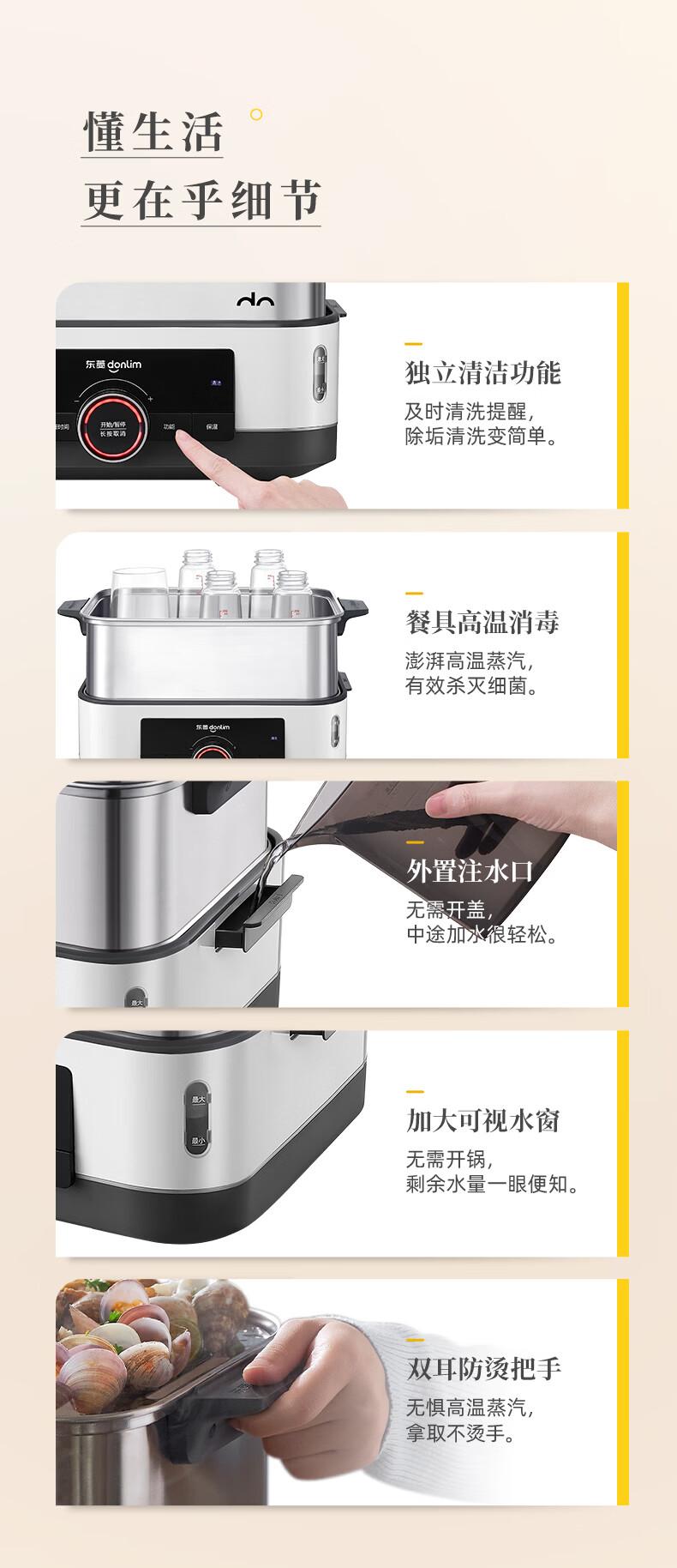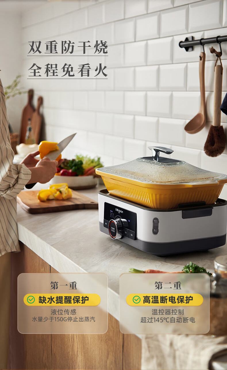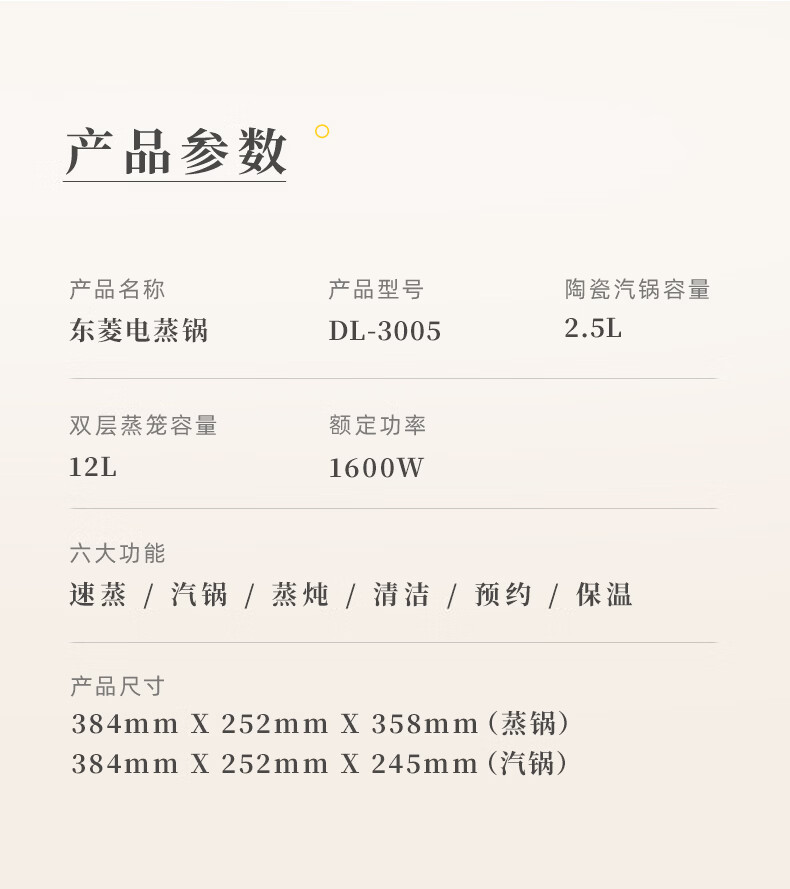东菱(Donlim)电蒸锅18L大容量不锈钢蒸锅家用6-8人蒸炖一体速蒸锅预约定时保温多功能蒸汽锅DL-3005三层全家福