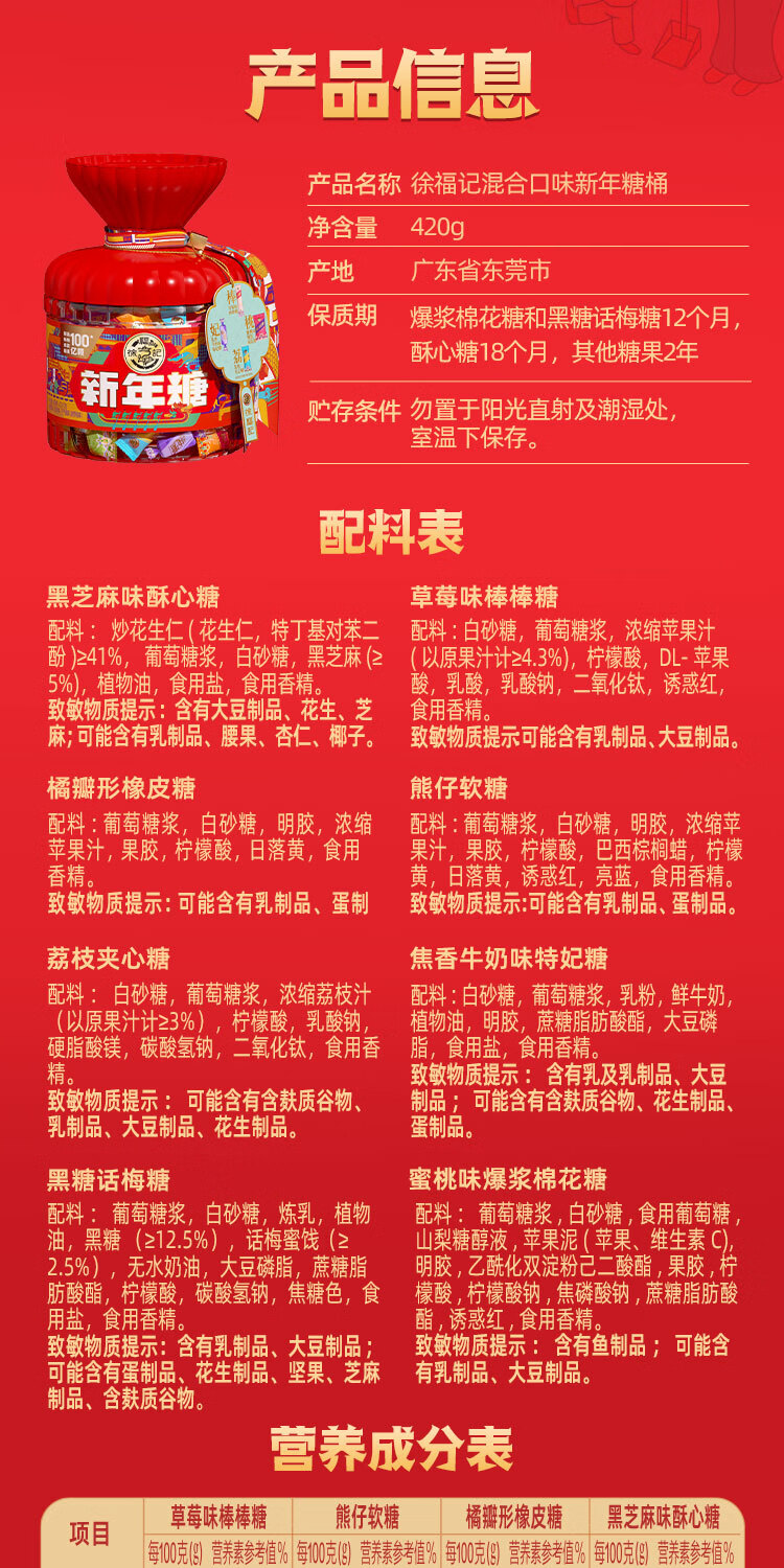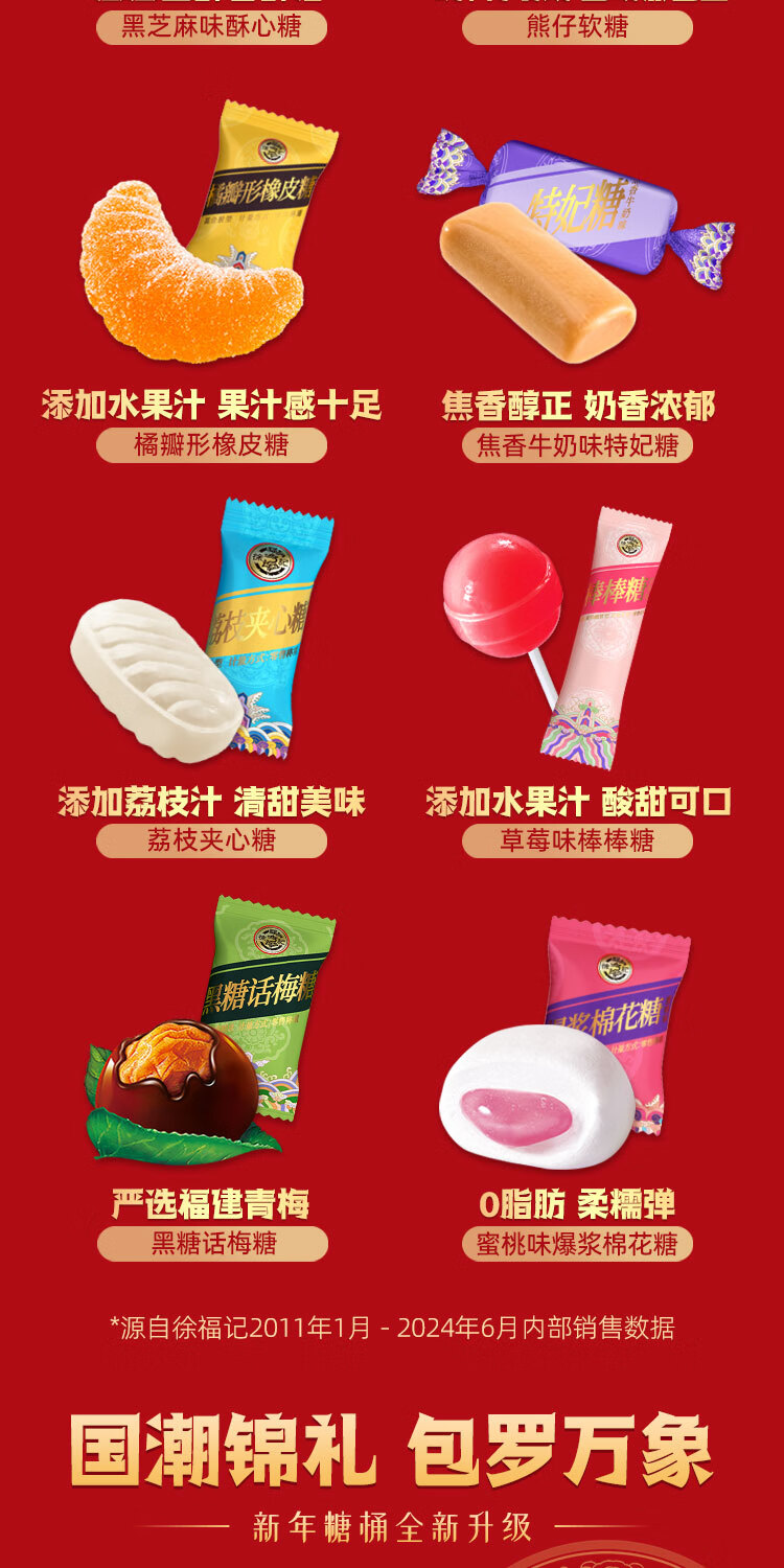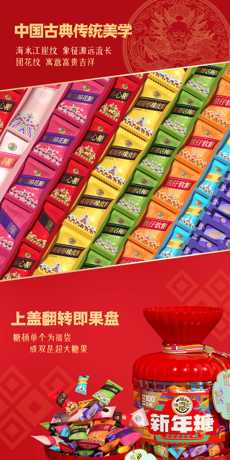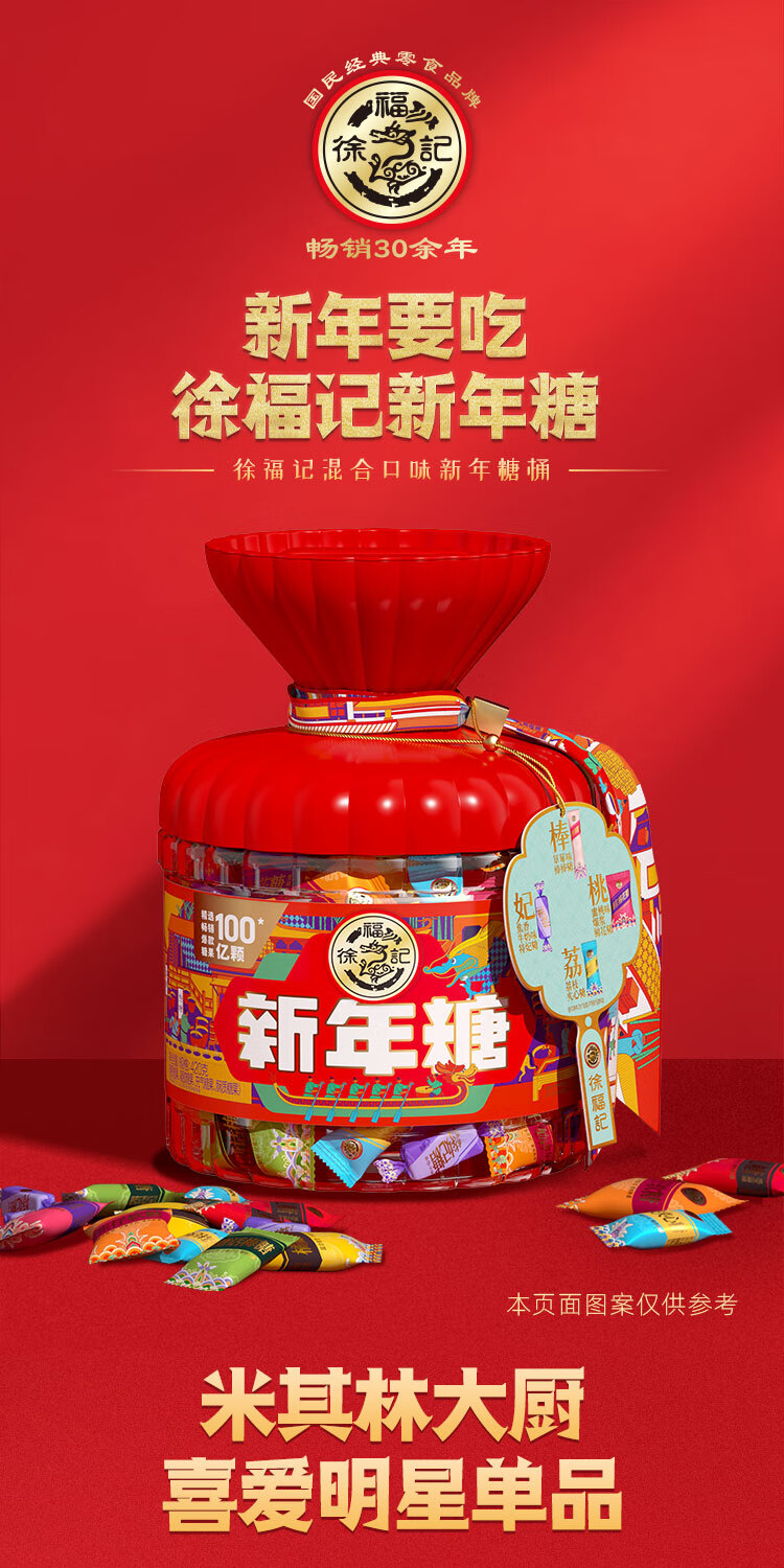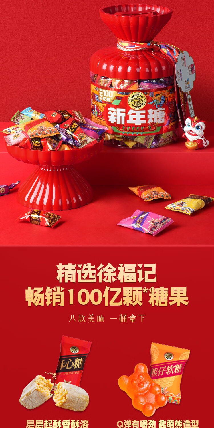 徐福记 糖果年货 新年糖红色桶装420g 糖果零食春节送礼 侯明昊推荐