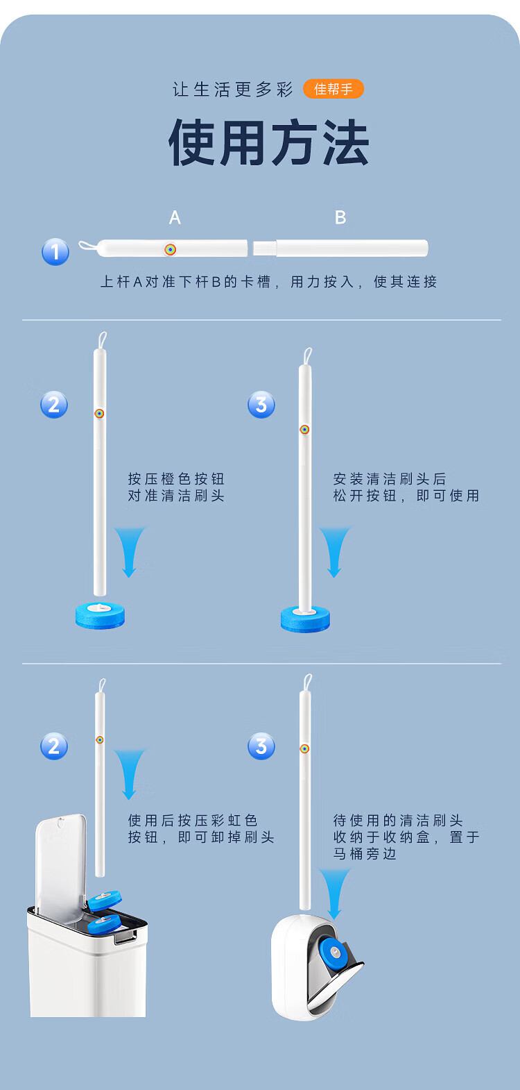 佳帮手一次性马桶刷子套装卫生间无死角洗厕所马桶清洁神器替换头21个