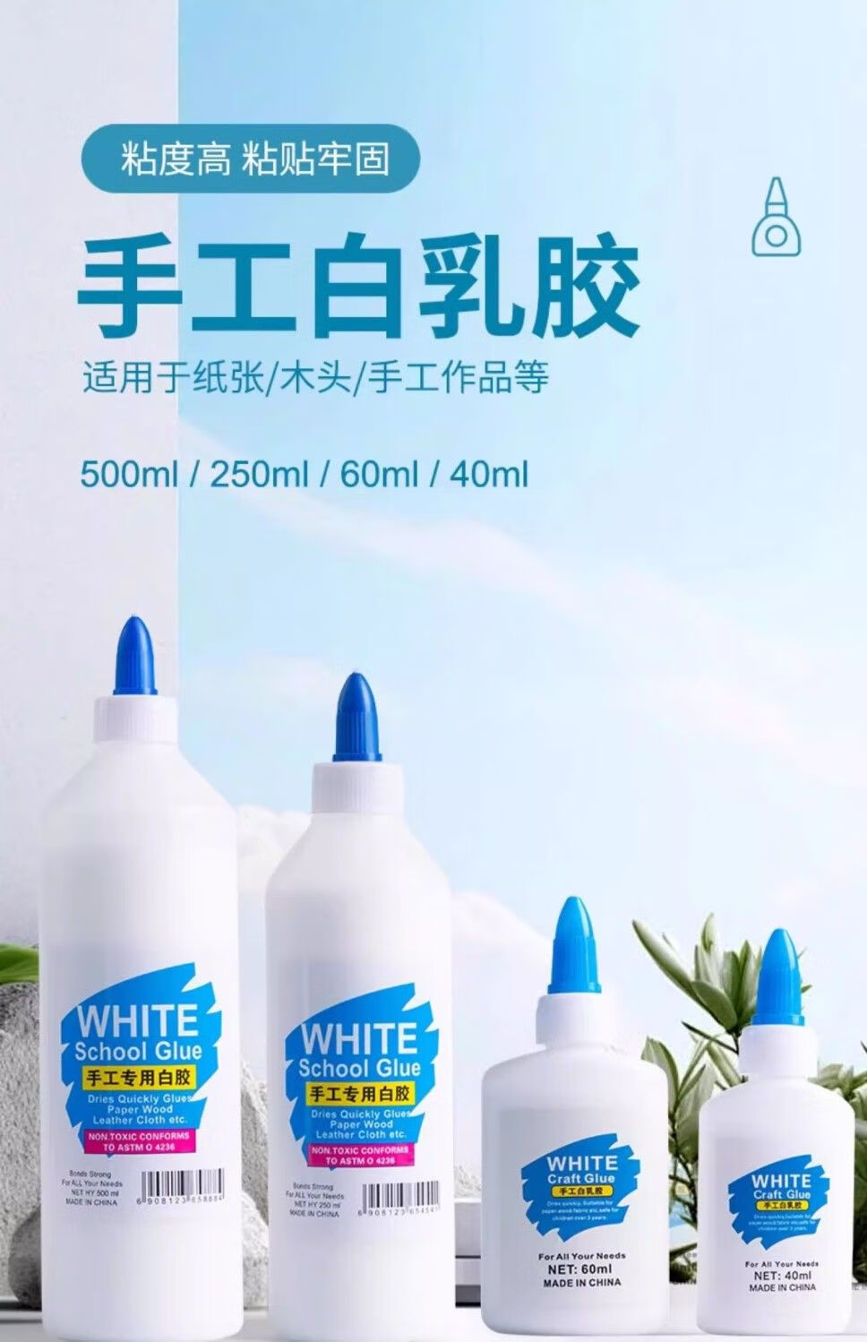 手工白乳胶水木工胶DIY制作速干高粘度学习工具学生文具DIY白胶手工胶环保无甲醛可水洗胶水 白乳胶40ml【4支】