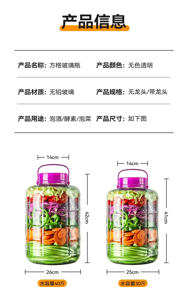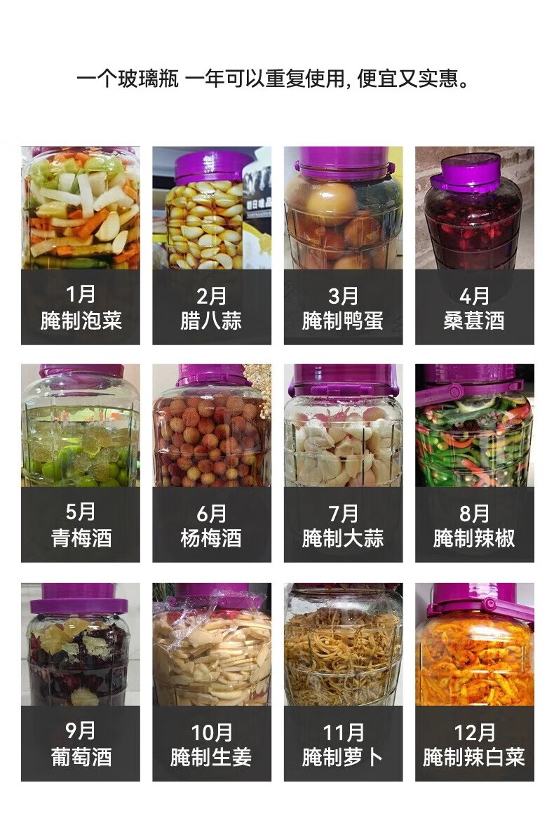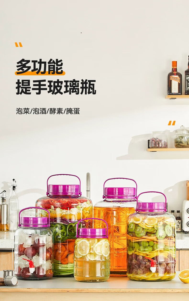 品喻(PINYU)泡酒玻璃瓶泡菜坛子加厚玻璃密封罐专用酒坛腌制罐空腌咸菜缸家用