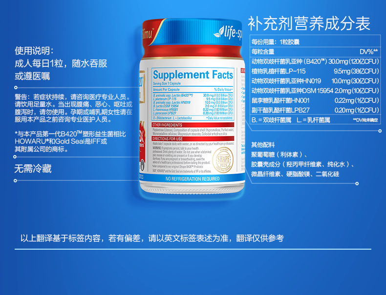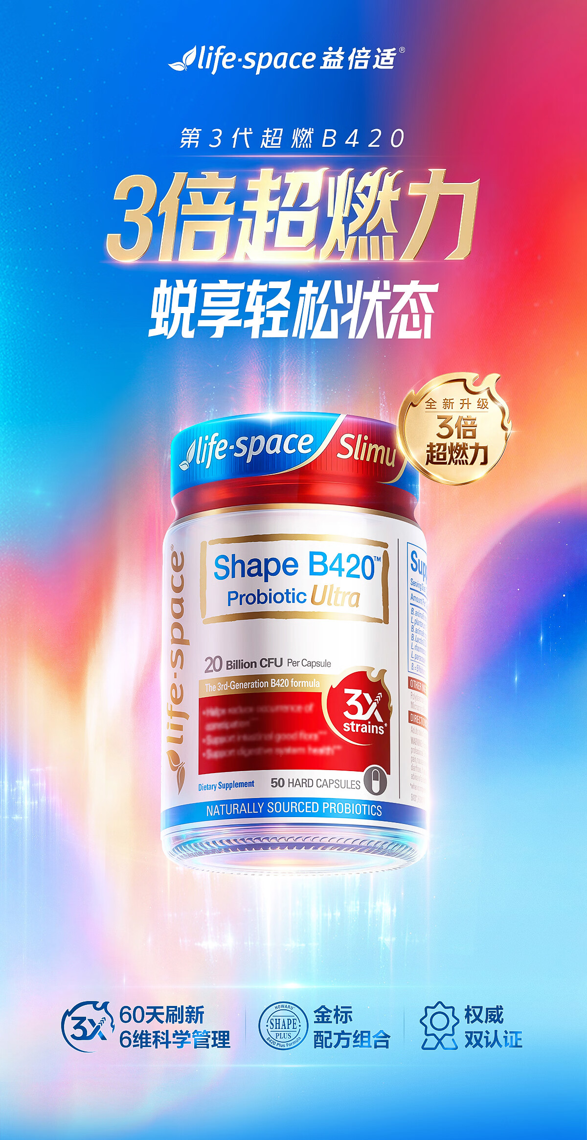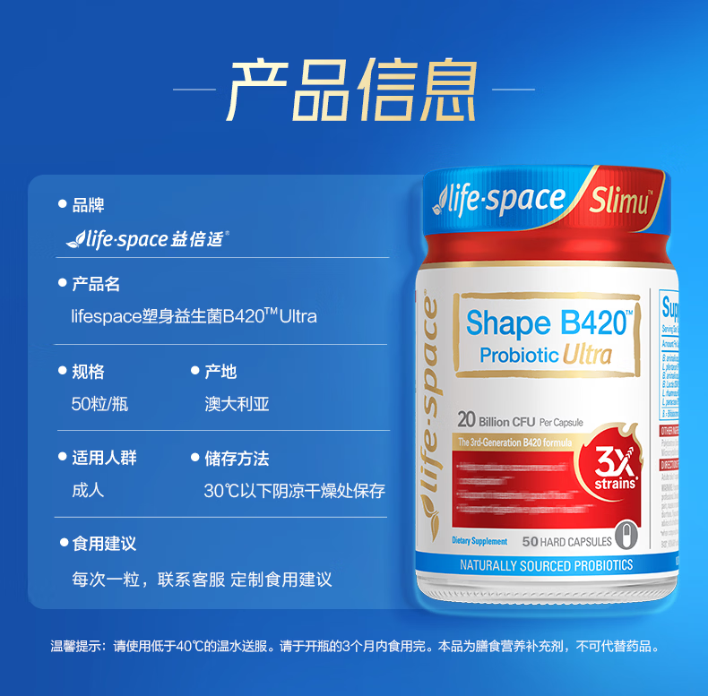 Life Space益倍适成人B420 Ultra超燃塑身益生菌50粒