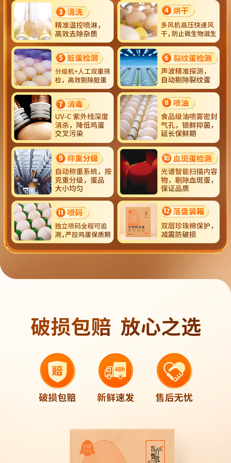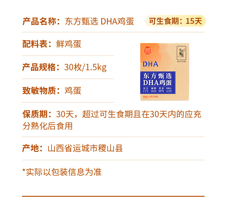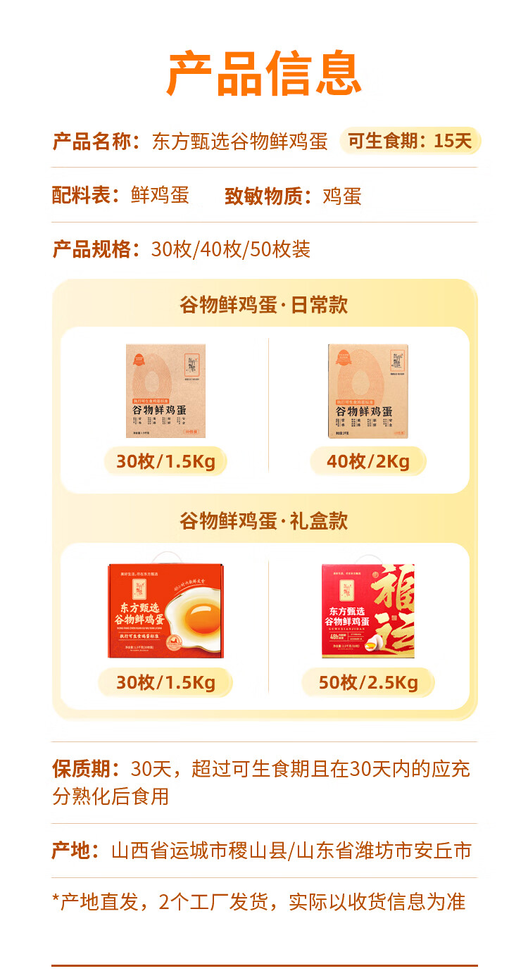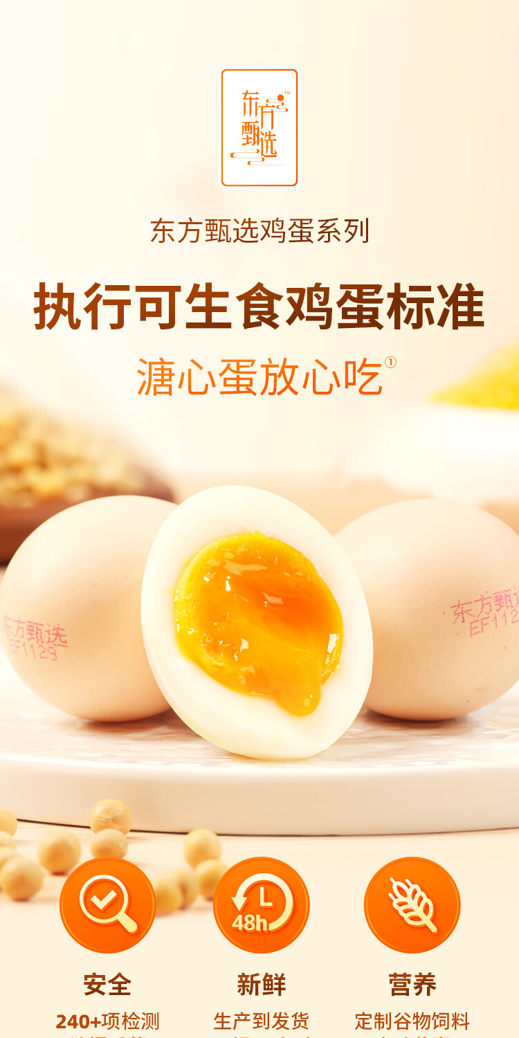 东方甄选谷物鲜鸡蛋/DHA/大码蛋/鸡蛋礼盒新鲜可生食营养早餐溏心蛋 40枚2kg谷物鲜鸡蛋