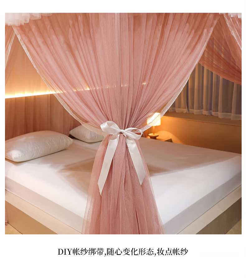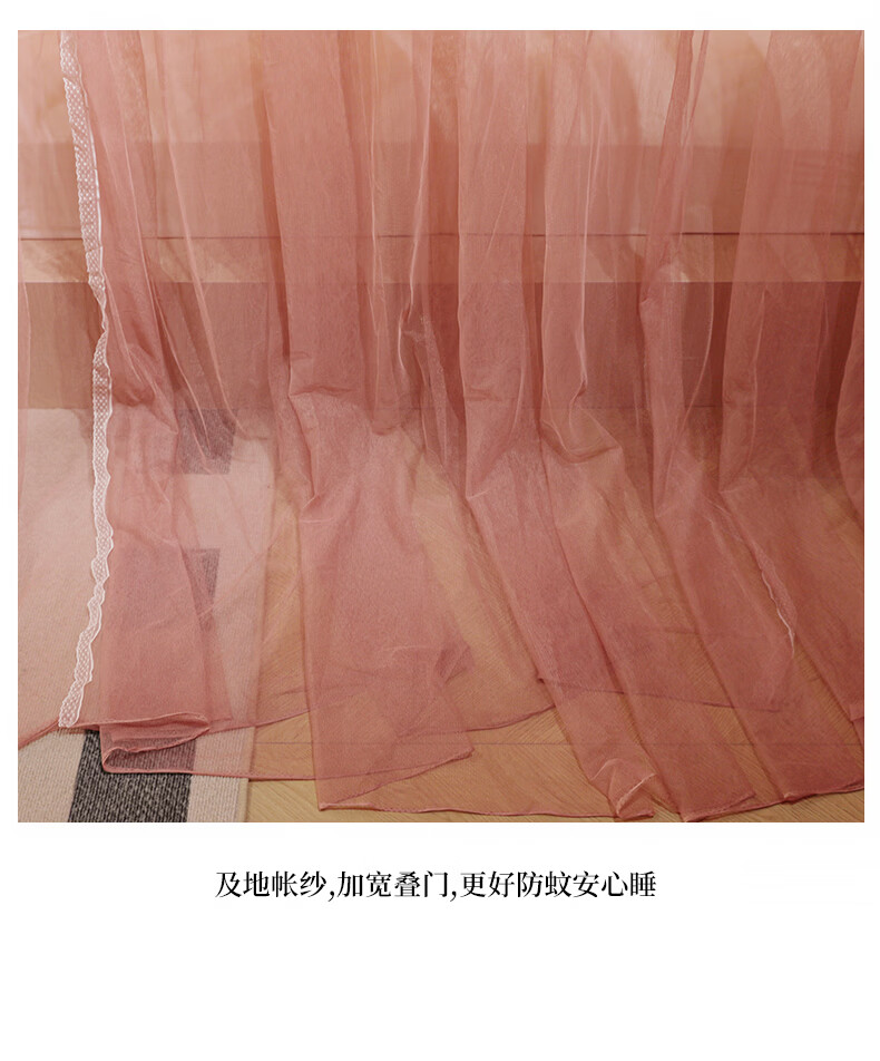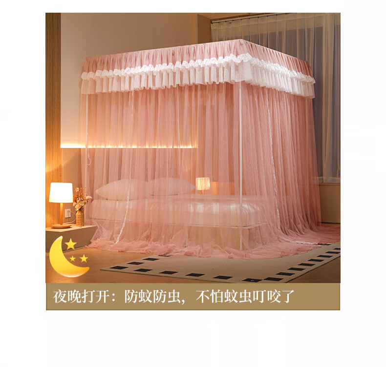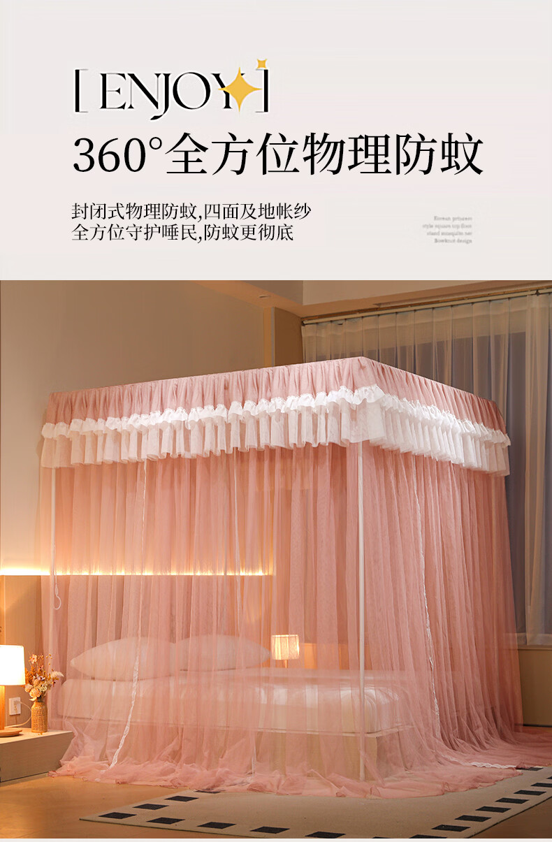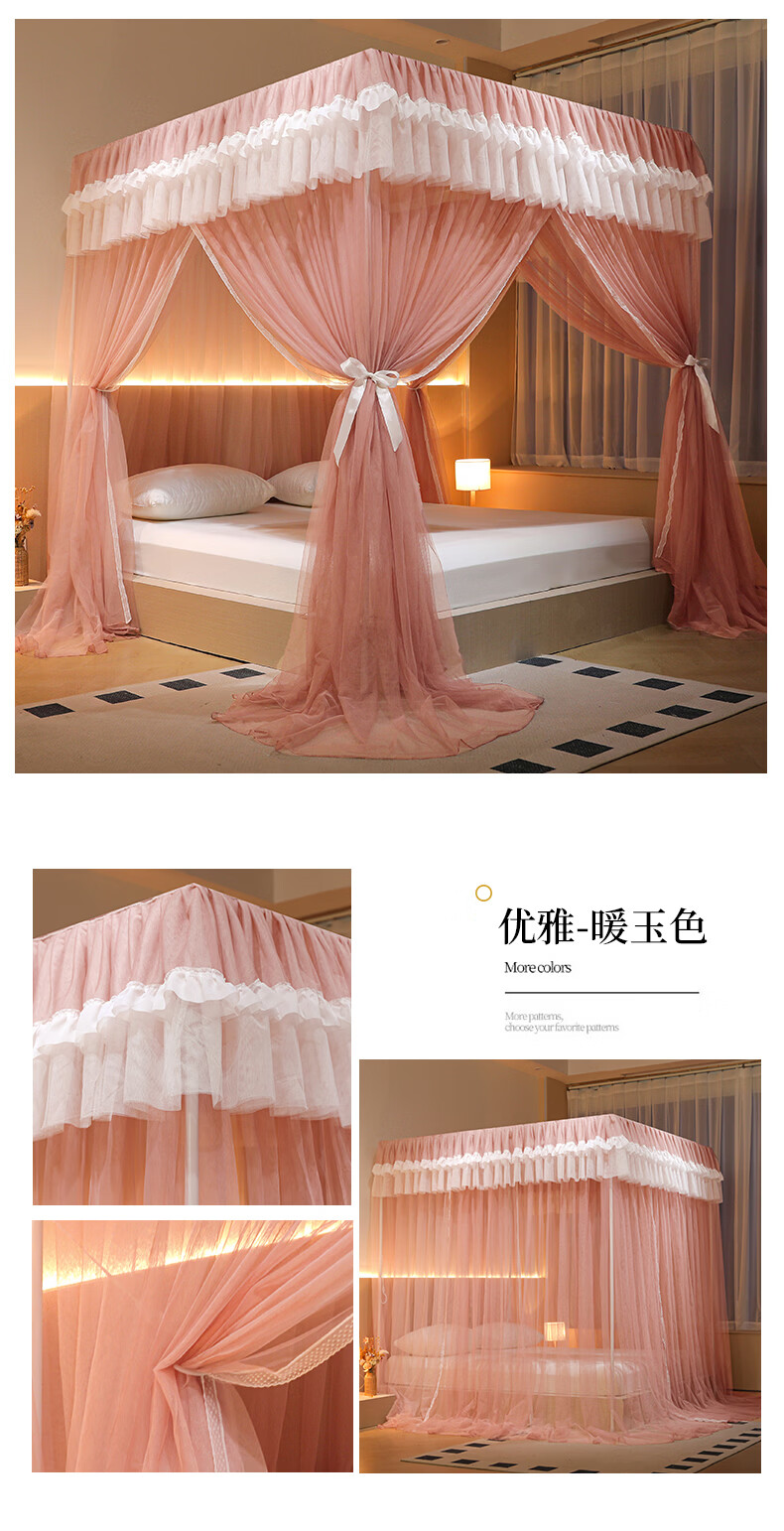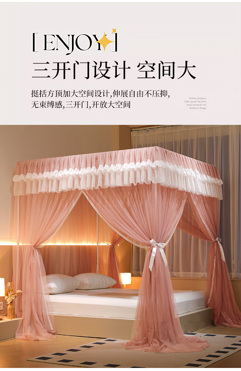 无印良品宫廷落地蚊帐1.8x2米家用卧室公主风三开门1.8米大床防蚊蚊帐床幔 优雅-暖玉色【双层帐纱 加粗支架】 120cm*200cm*200cm 加厚烤漆支架