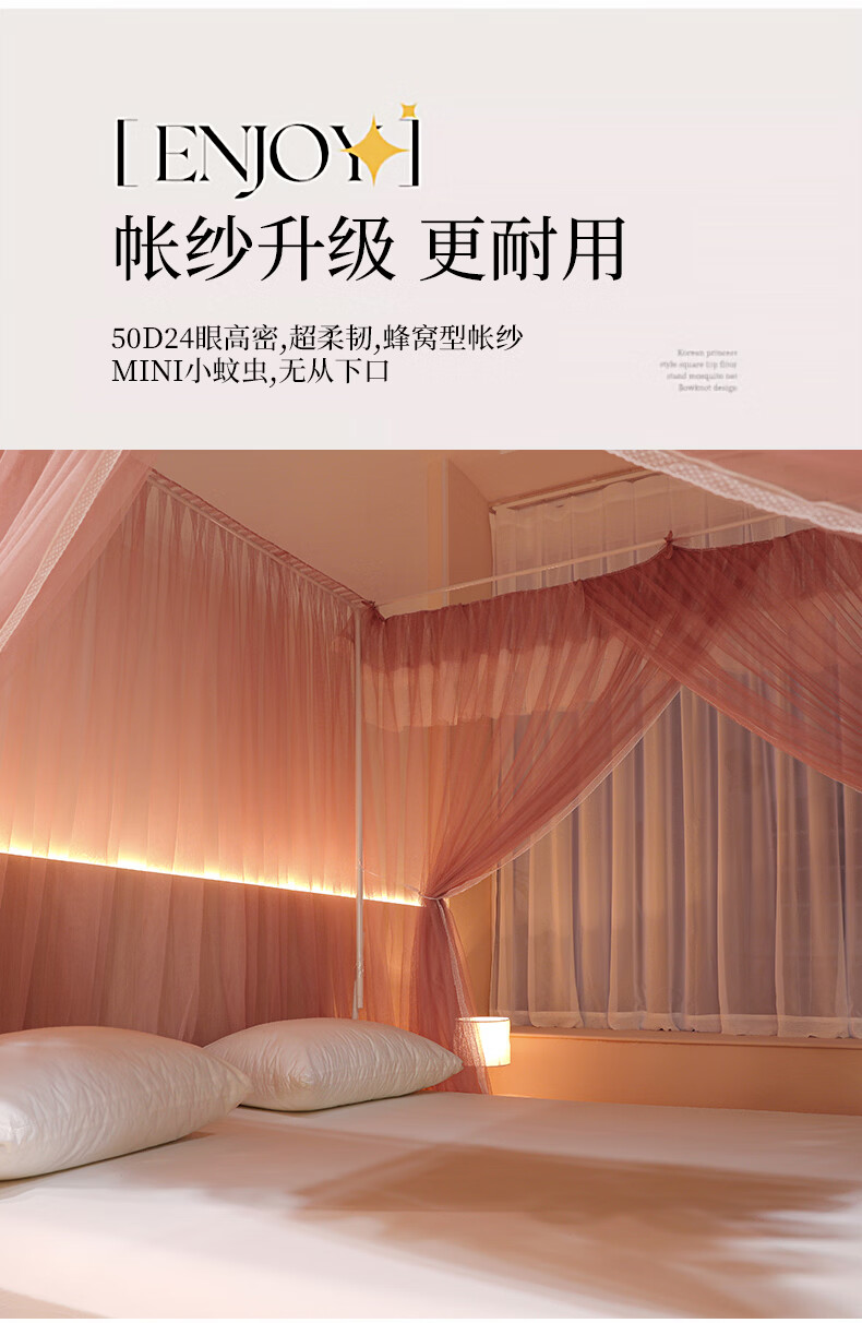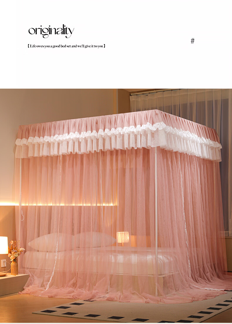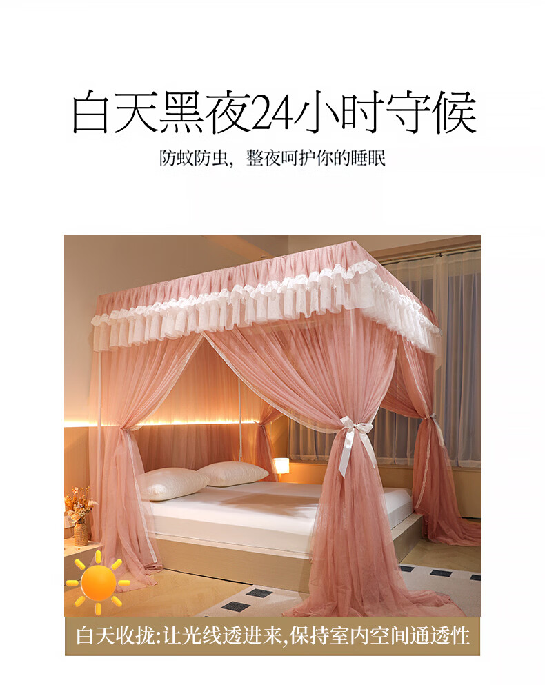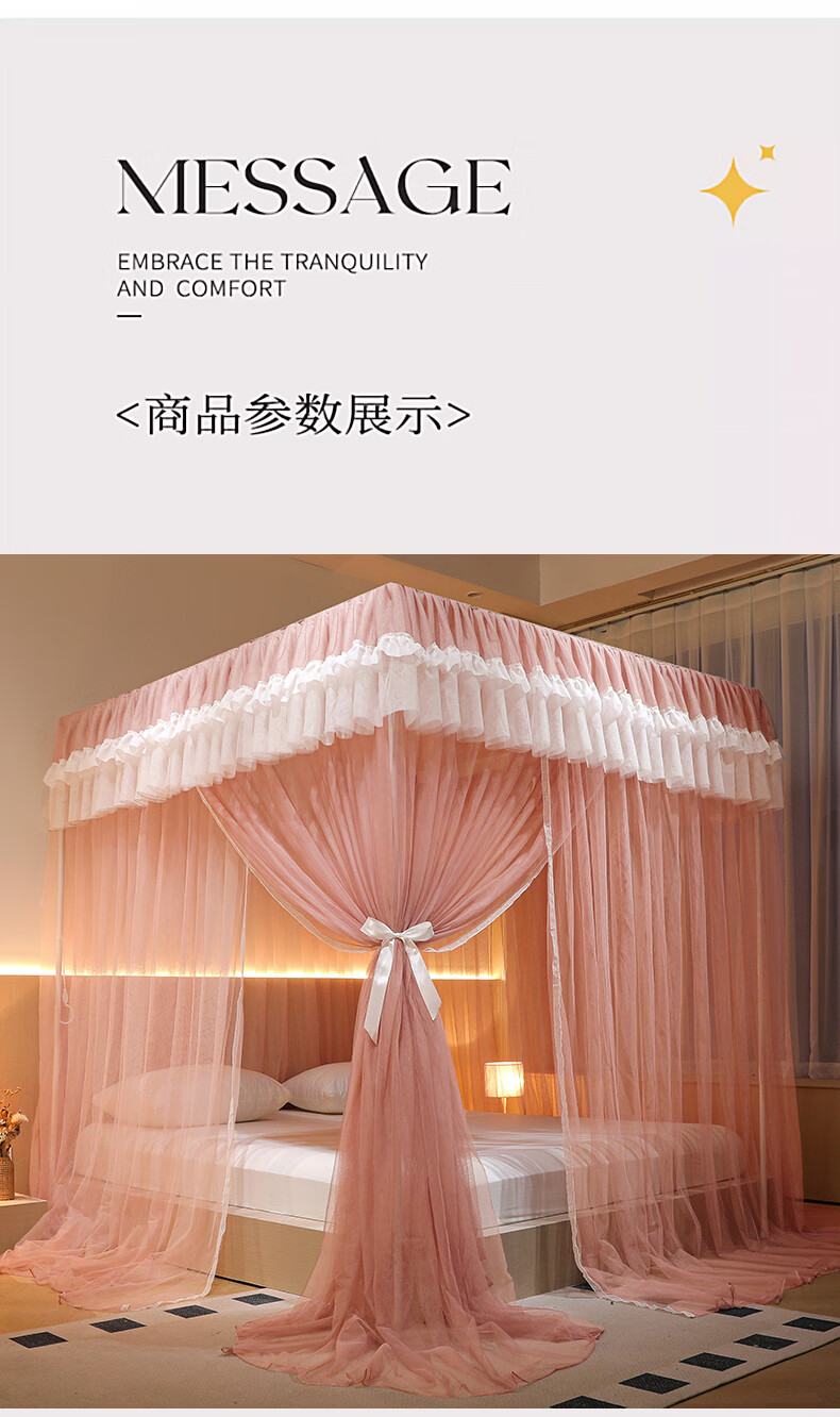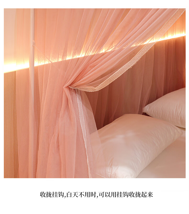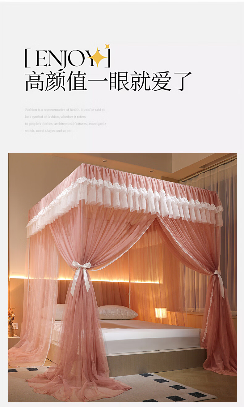 无印良品宫廷落地蚊帐1.8x2米家用卧室公主风三开门1.8米大床防蚊蚊帐床幔 优雅-暖玉色【双层帐纱 加粗支架】 120cm*200cm*200cm 加厚烤漆支架