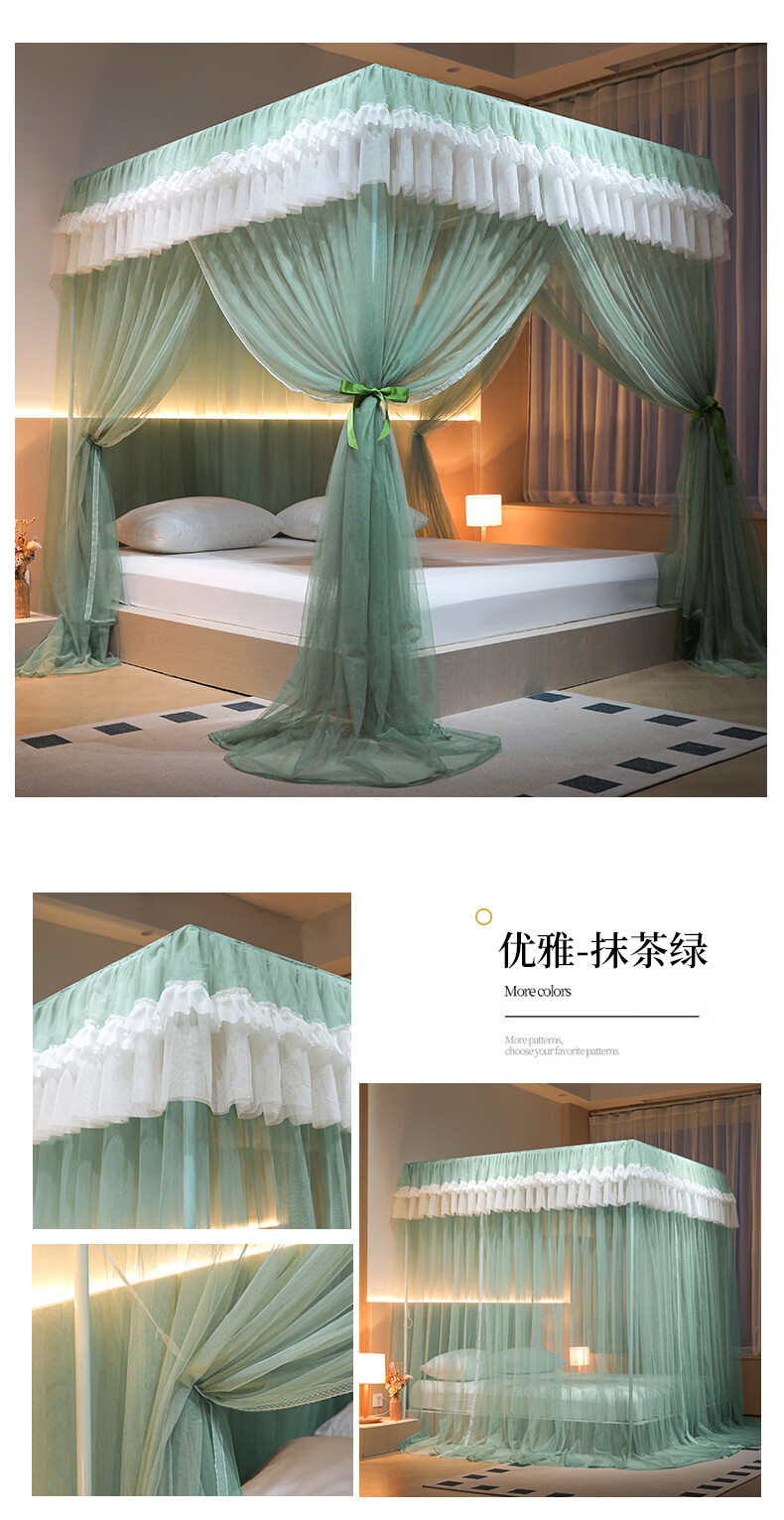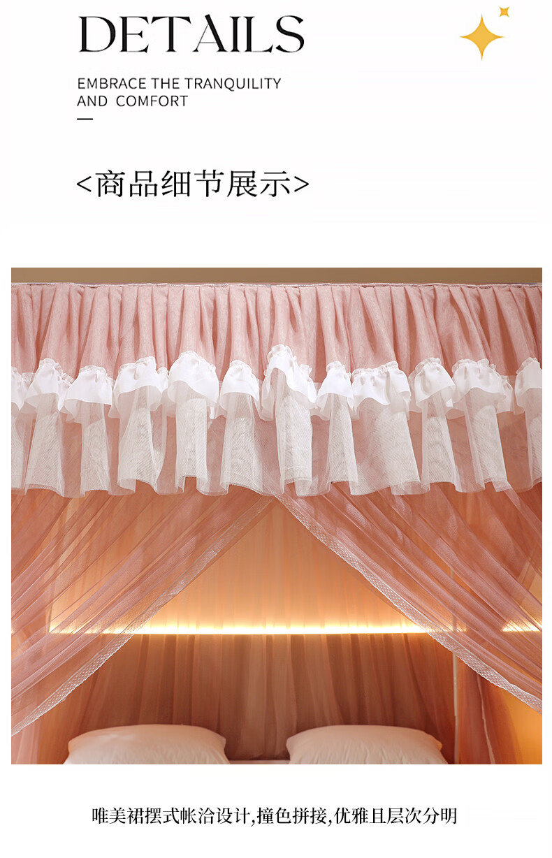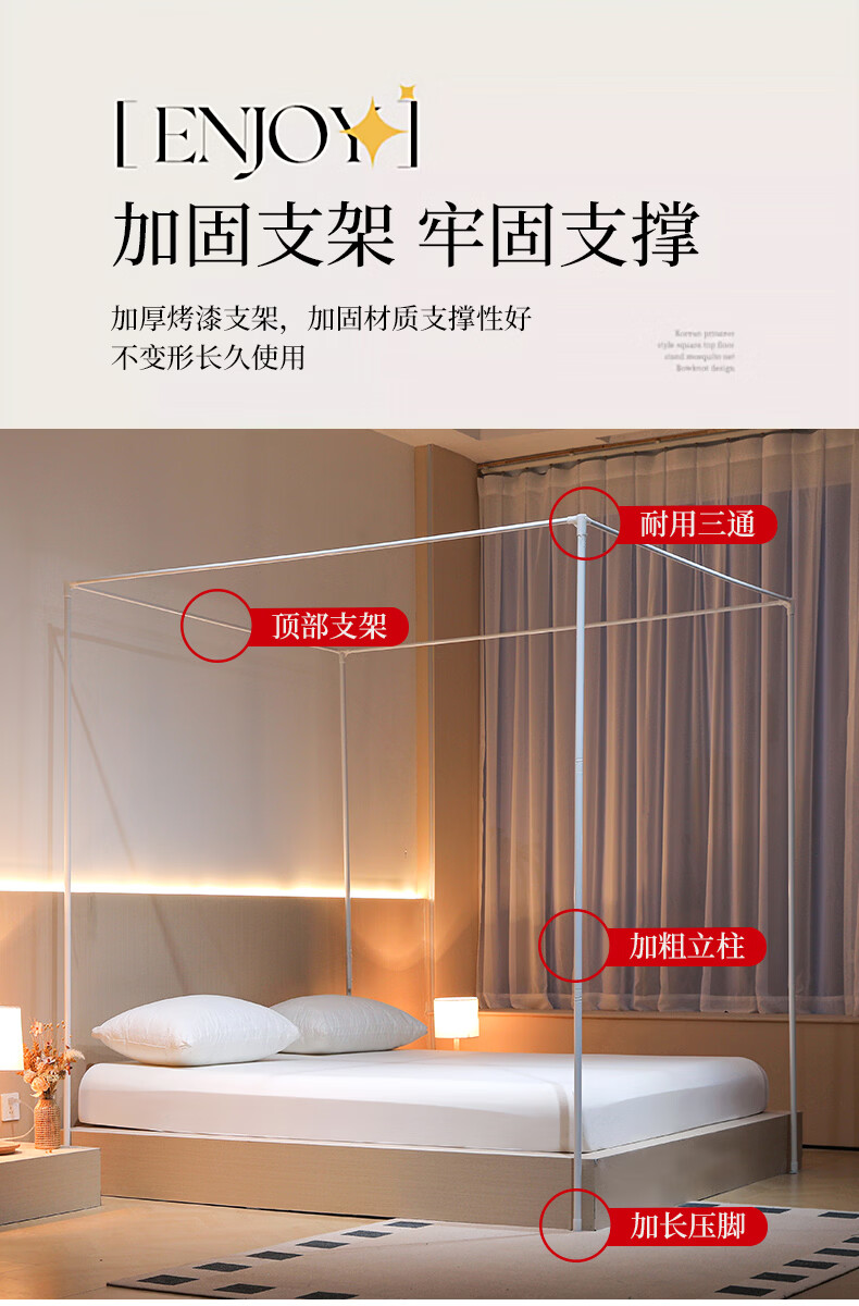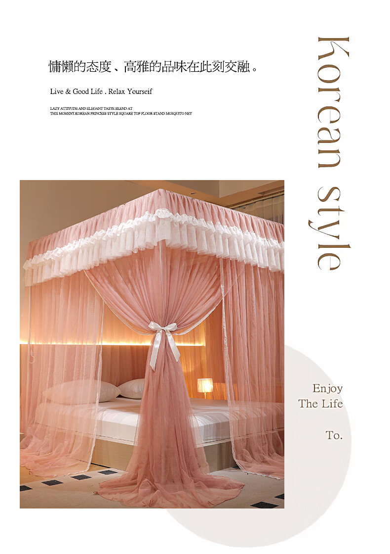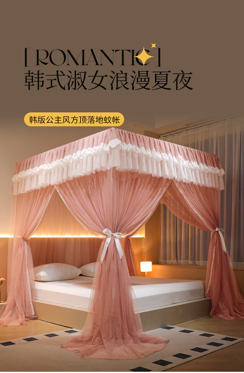 无印良品宫廷落地蚊帐1.8x2米家用卧室公主风三开门1.8米大床防蚊蚊帐床幔 优雅-暖玉色【双层帐纱 加粗支架】 120cm*200cm*200cm 加厚烤漆支架