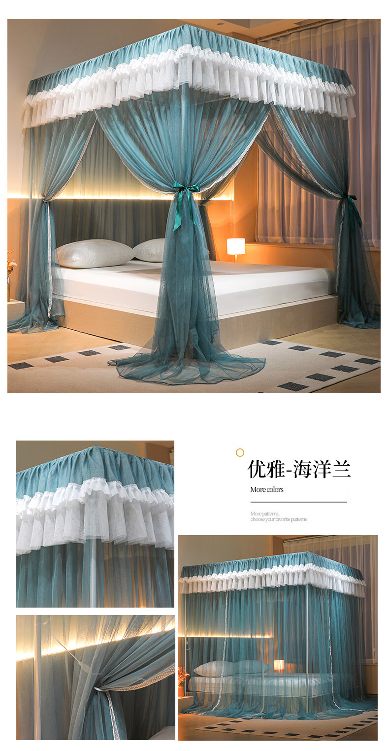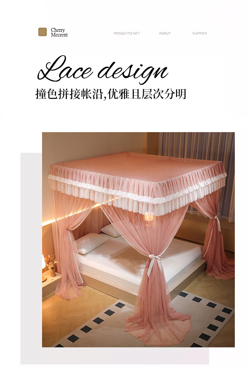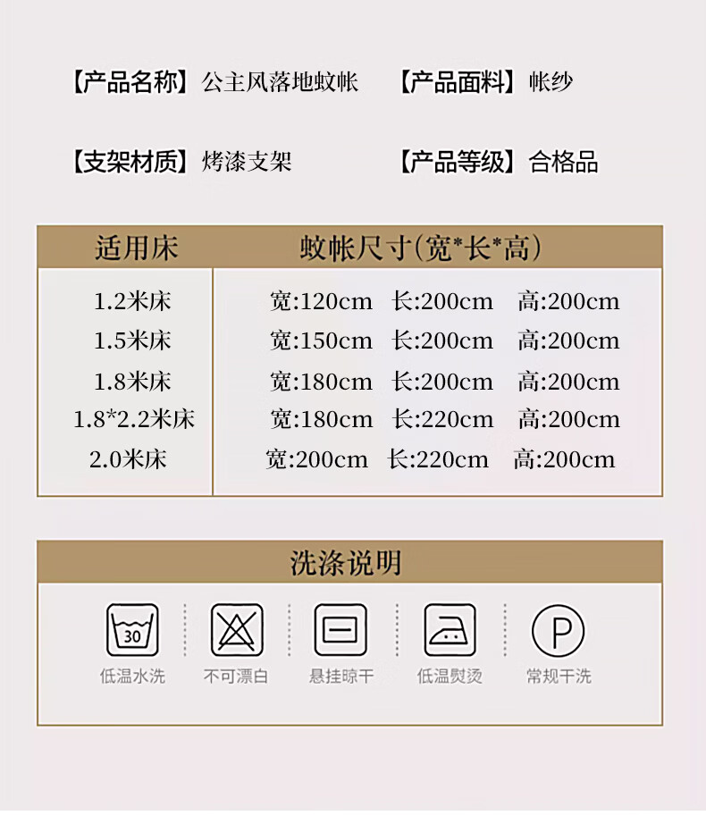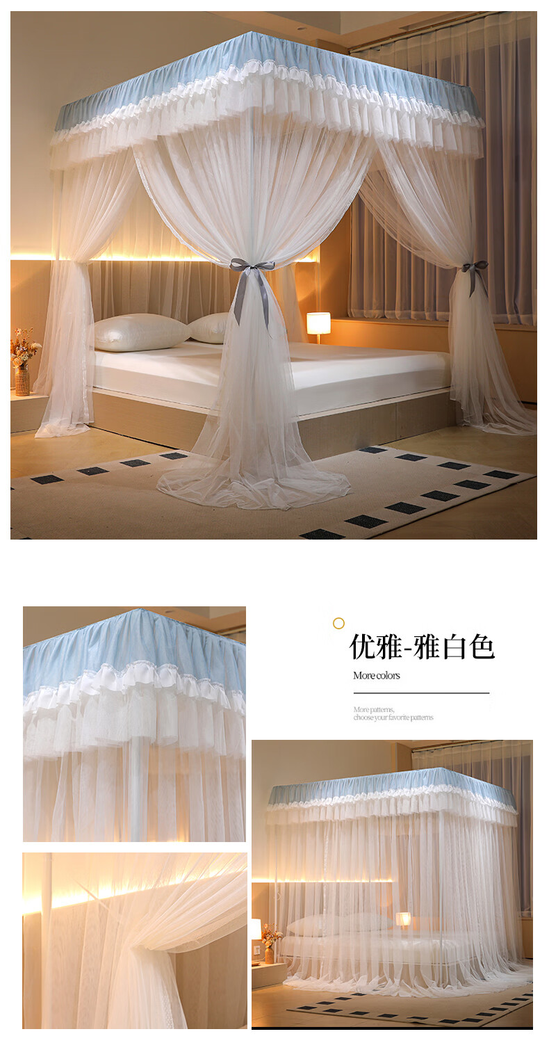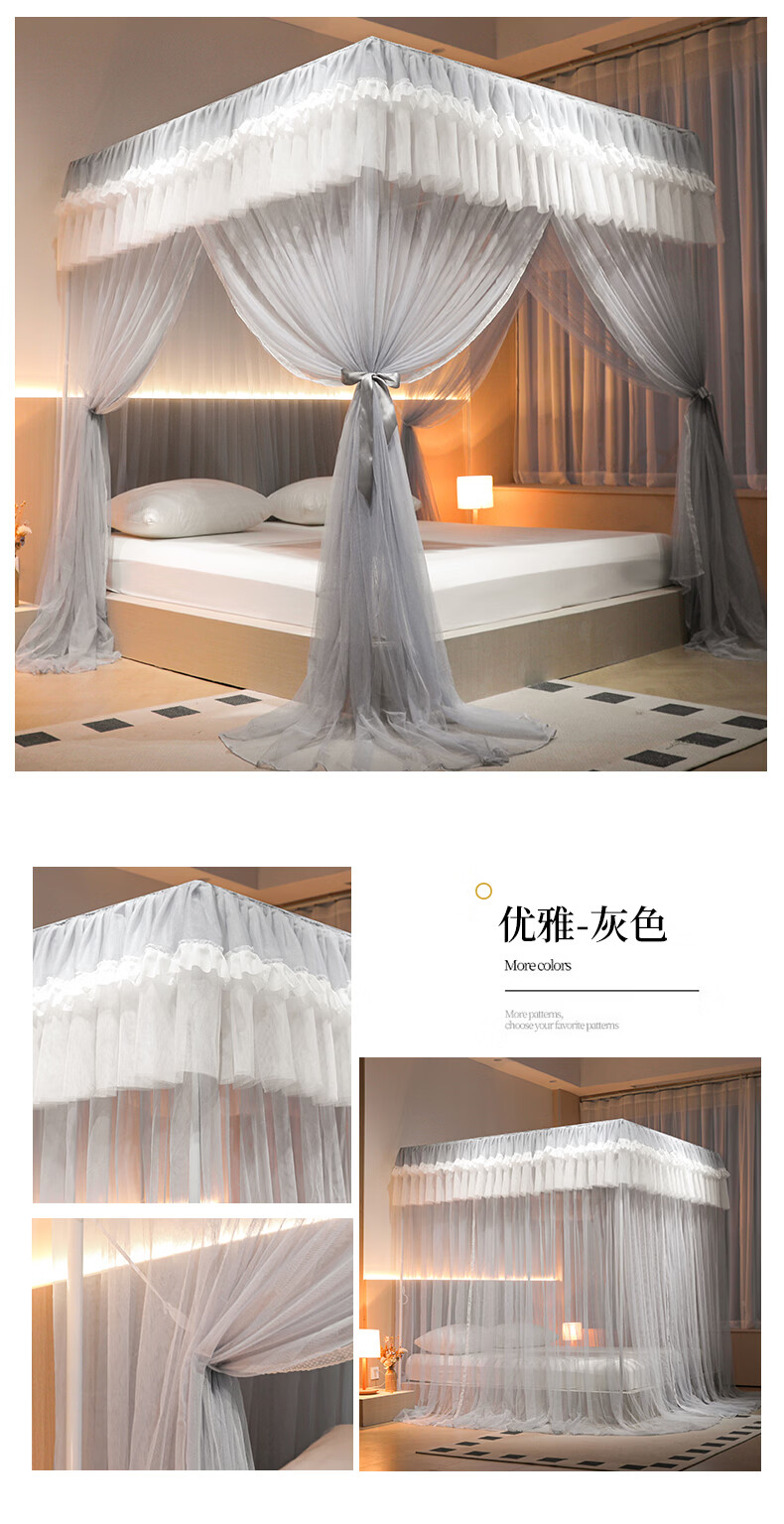 无印良品宫廷落地蚊帐1.8x2米家用卧室公主风三开门1.8米大床防蚊蚊帐床幔 优雅-暖玉色【双层帐纱 加粗支架】 120cm*200cm*200cm 加厚烤漆支架