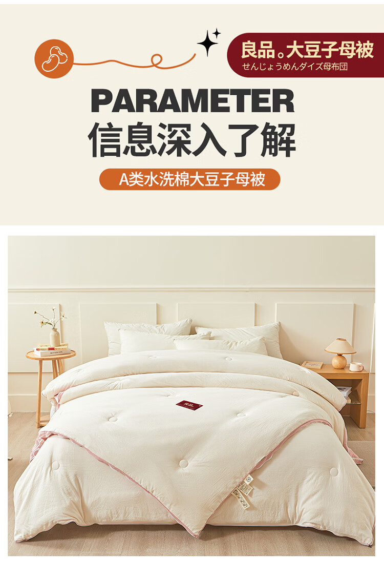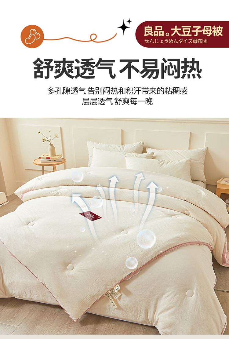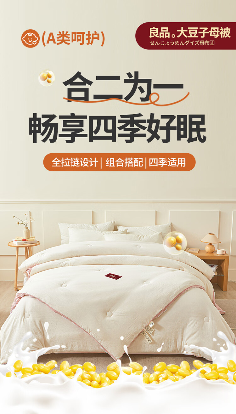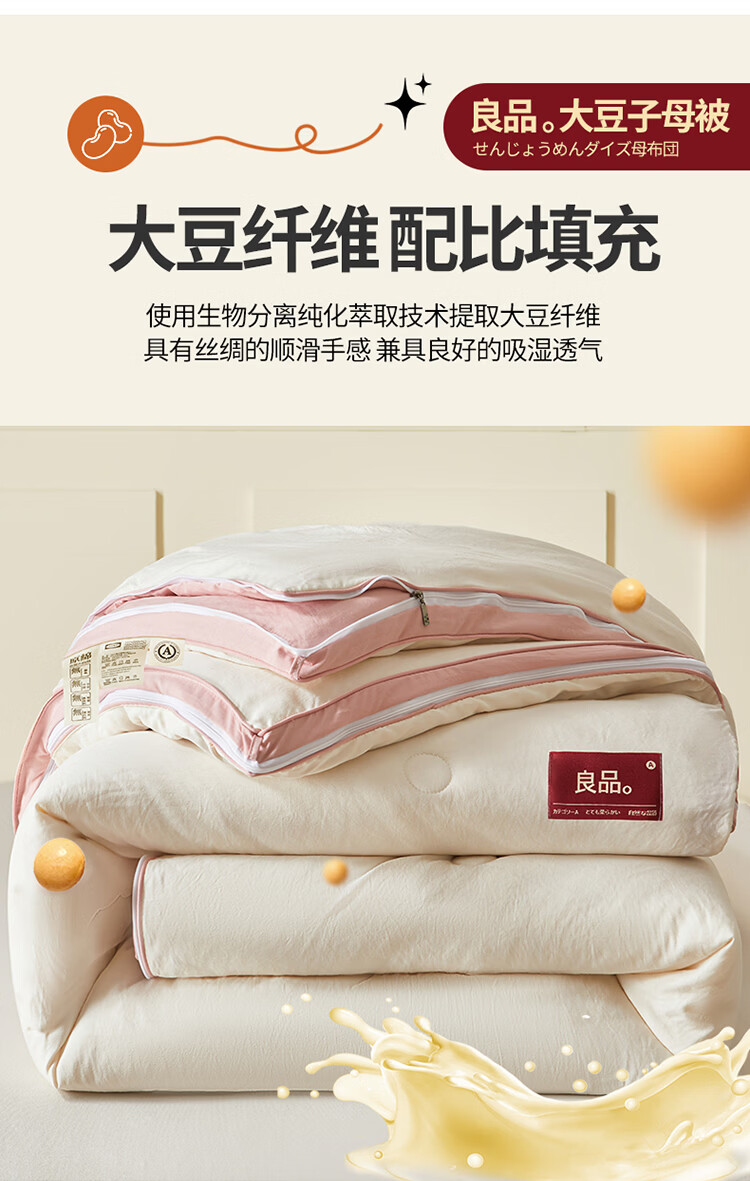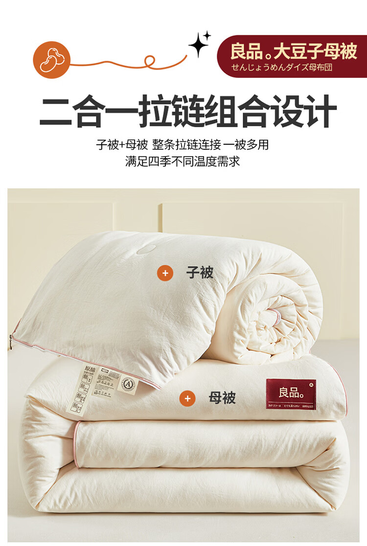 无印良品a类大豆被子冬被1.5米x2米棉被冬季拉链子母被二合一被芯加厚被褥 良品大豆子母被-奶油白【A类标准 亲肤细腻】 150cm*200cm 春秋被【约重4斤】