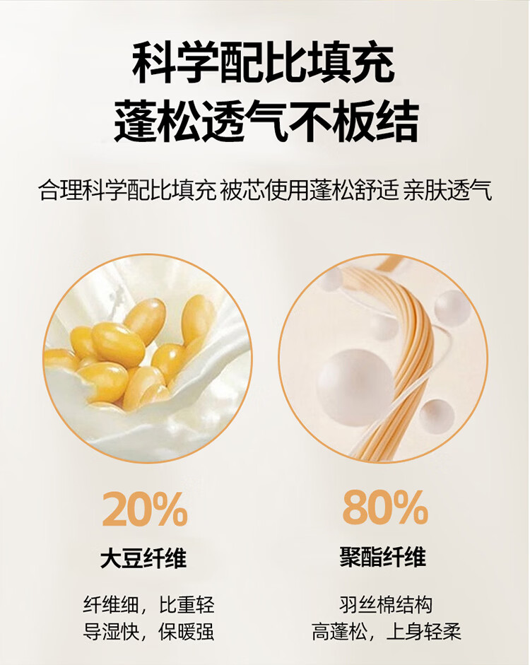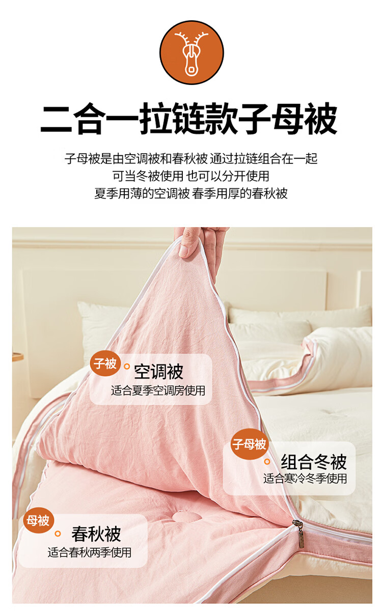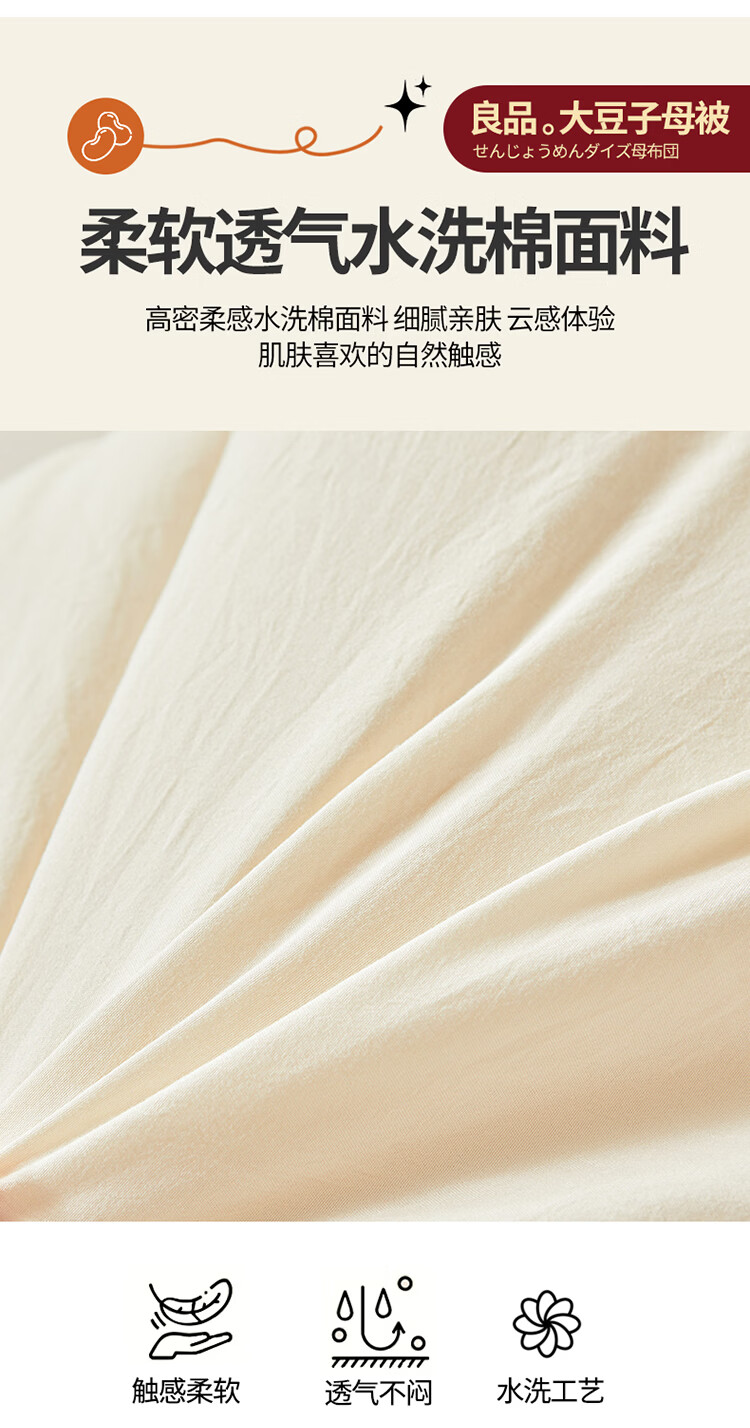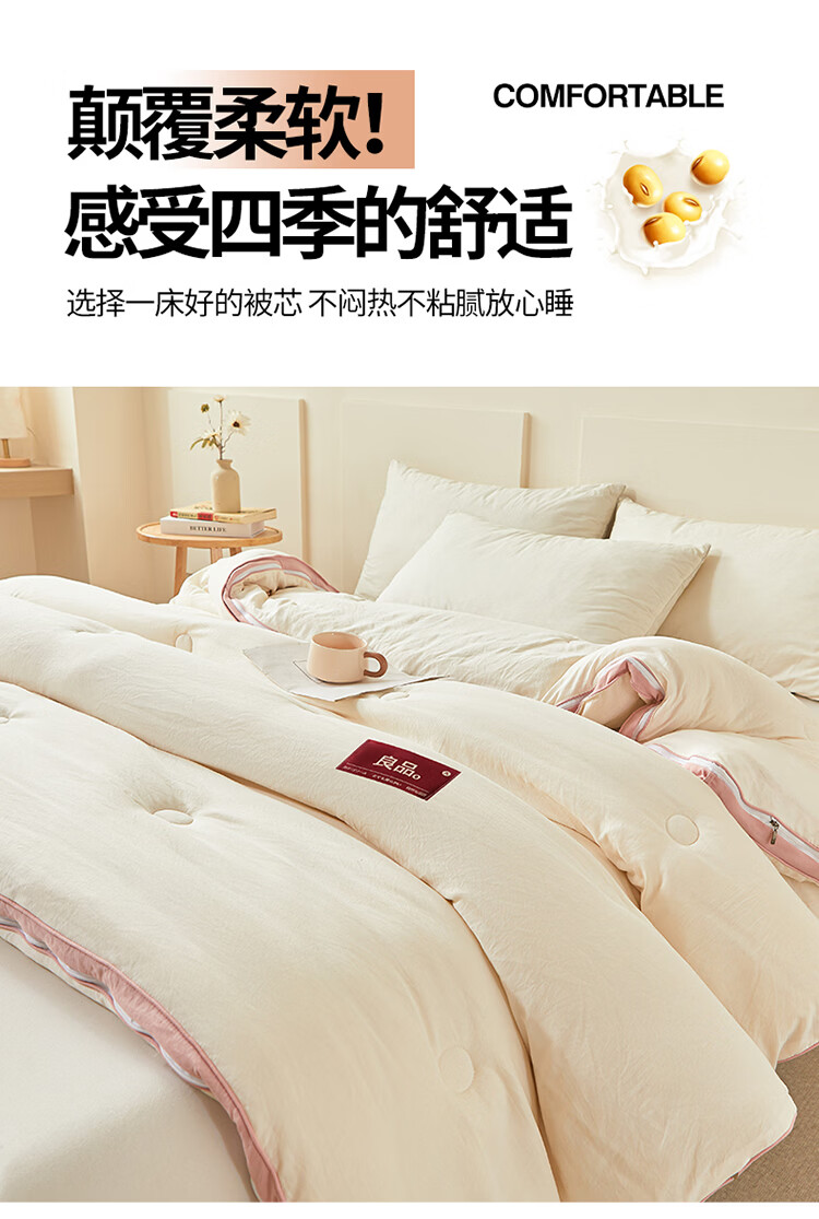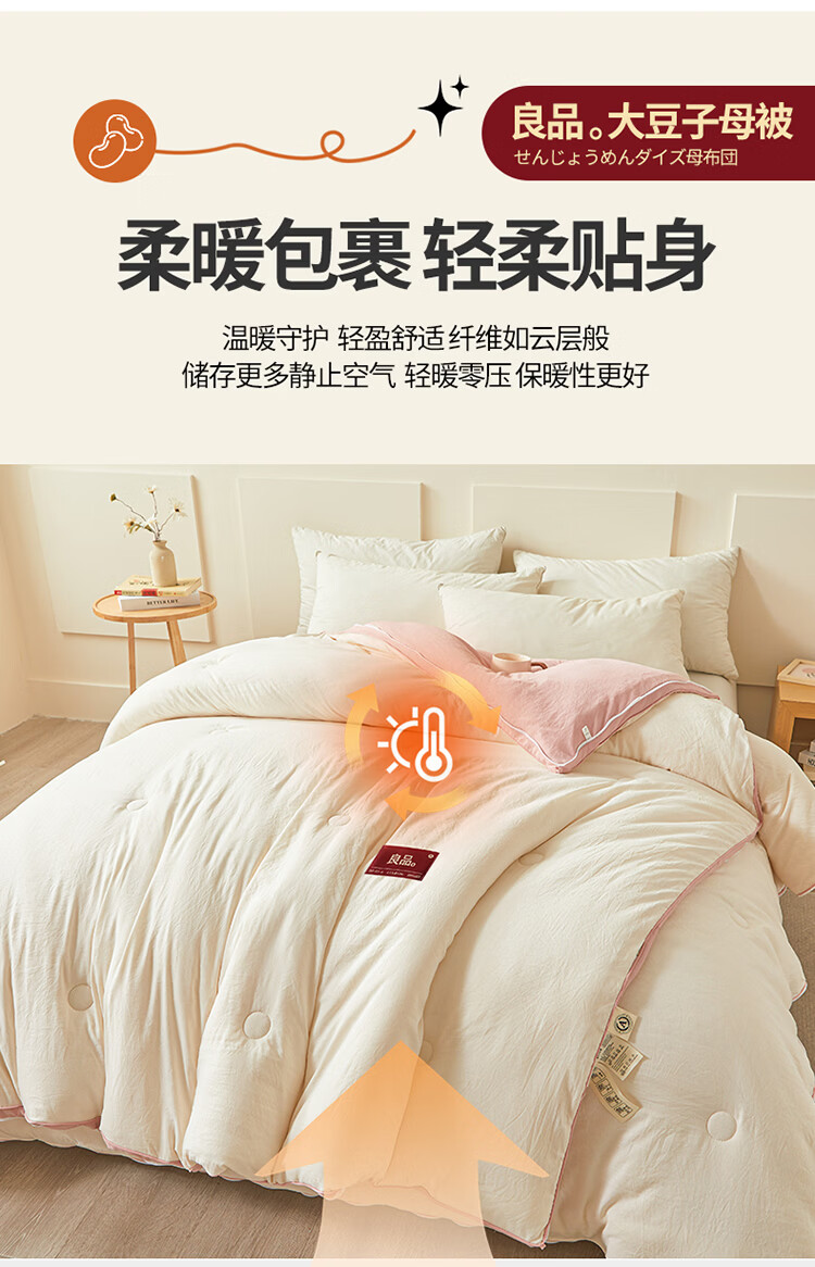 无印良品a类大豆被子冬被1.5米x2米棉被冬季拉链子母被二合一被芯加厚被褥 良品大豆子母被-奶油白【A类标准 亲肤细腻】 150cm*200cm 春秋被【约重4斤】