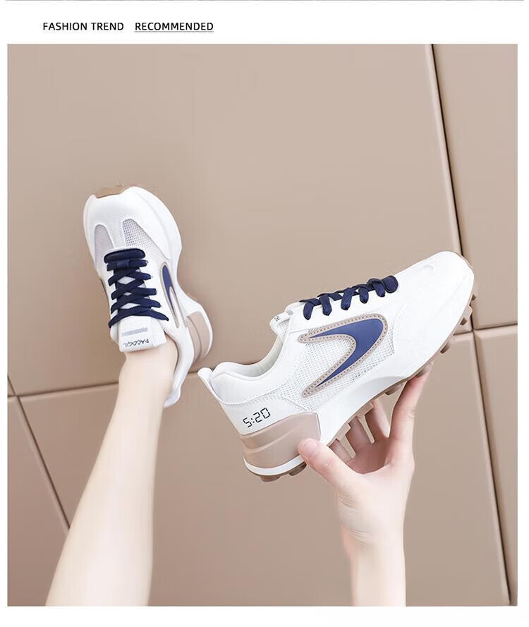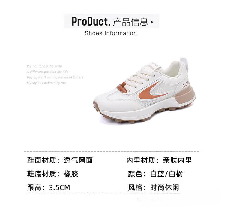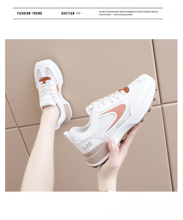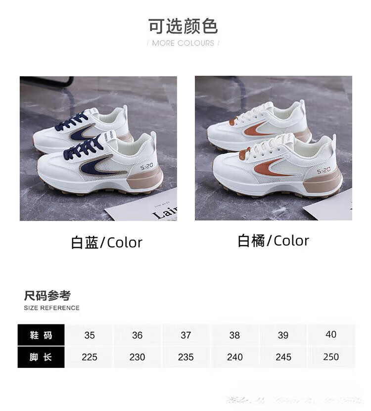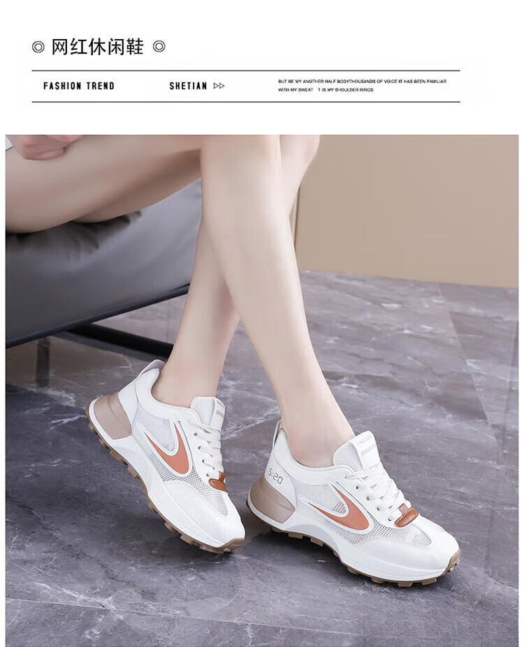 FSAT小蛮腰阿甘鞋女夏季薄款老爹鞋透气单网面休闲运动厚底百搭小白鞋 米兰 40