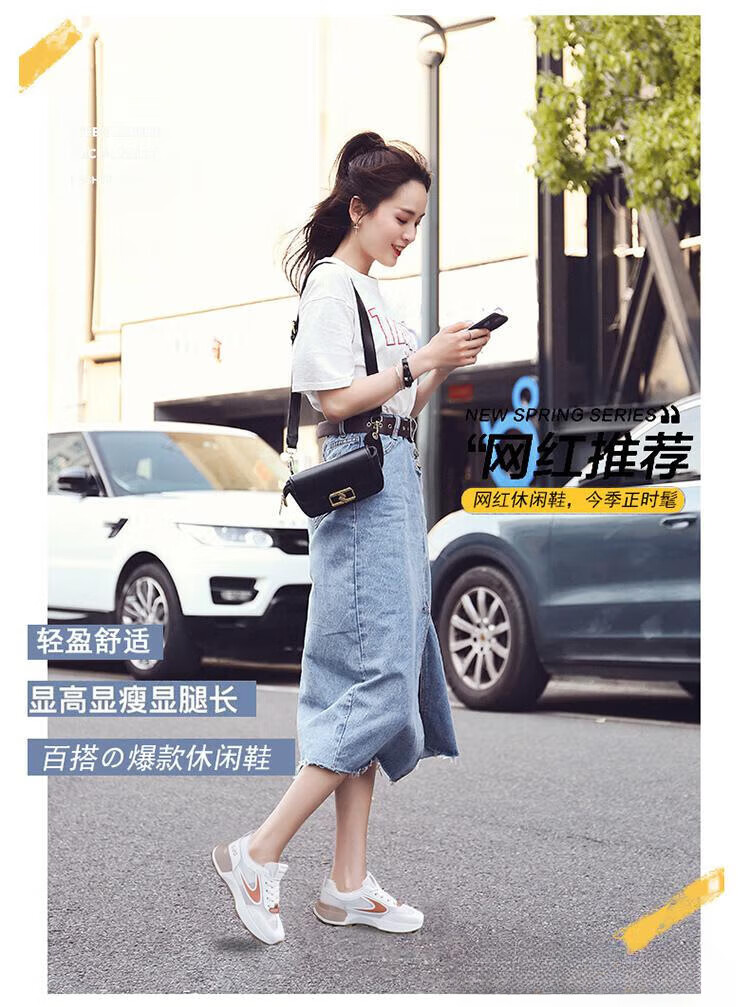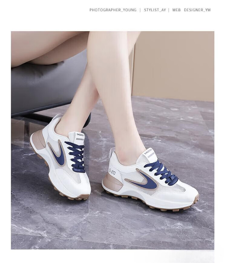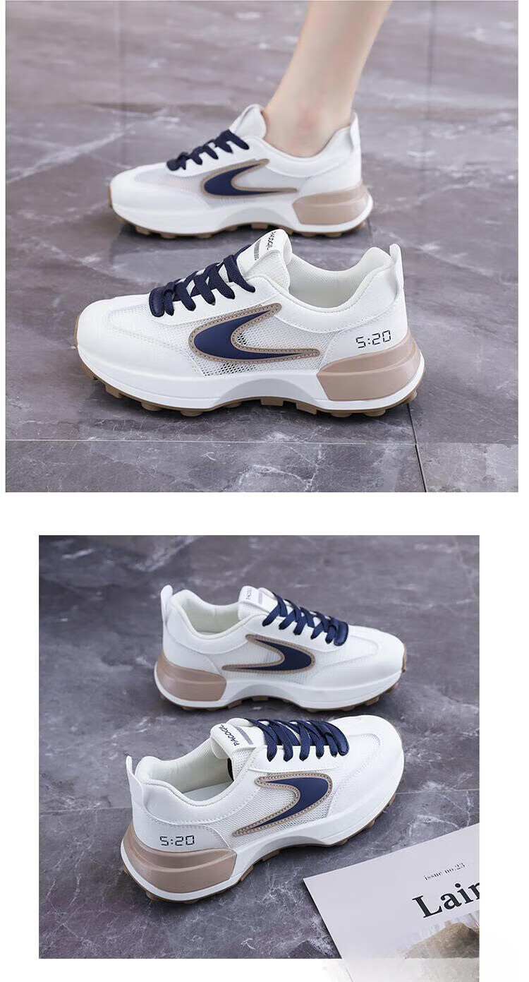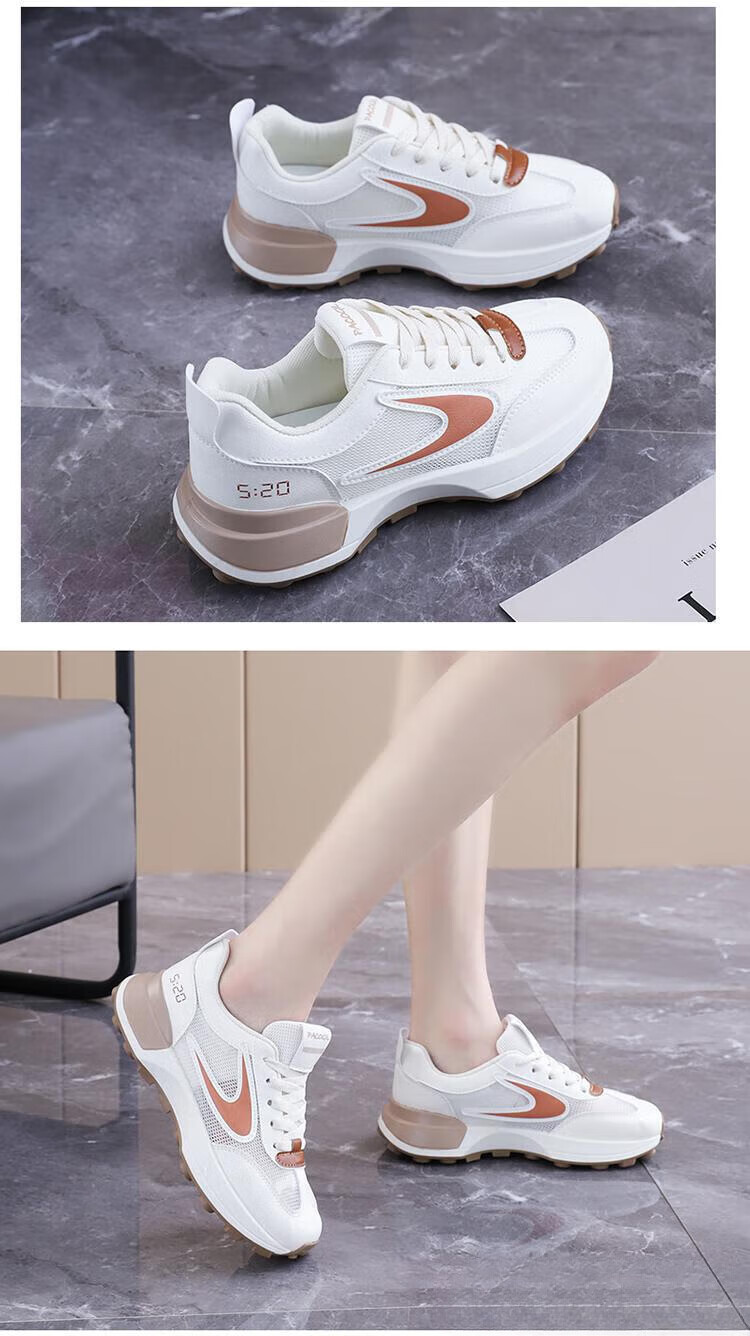 FSAT小蛮腰阿甘鞋女夏季薄款老爹鞋透气单网面休闲运动厚底百搭小白鞋 米兰 40