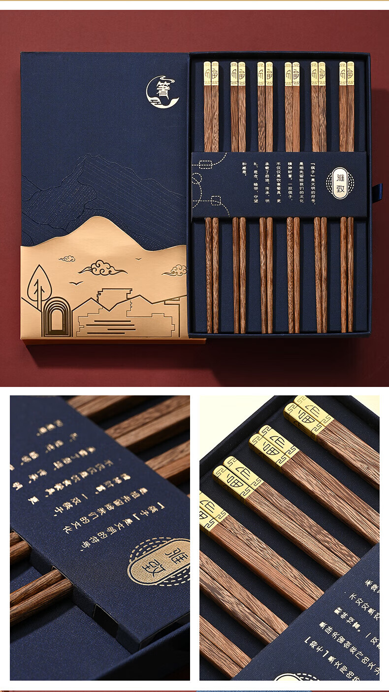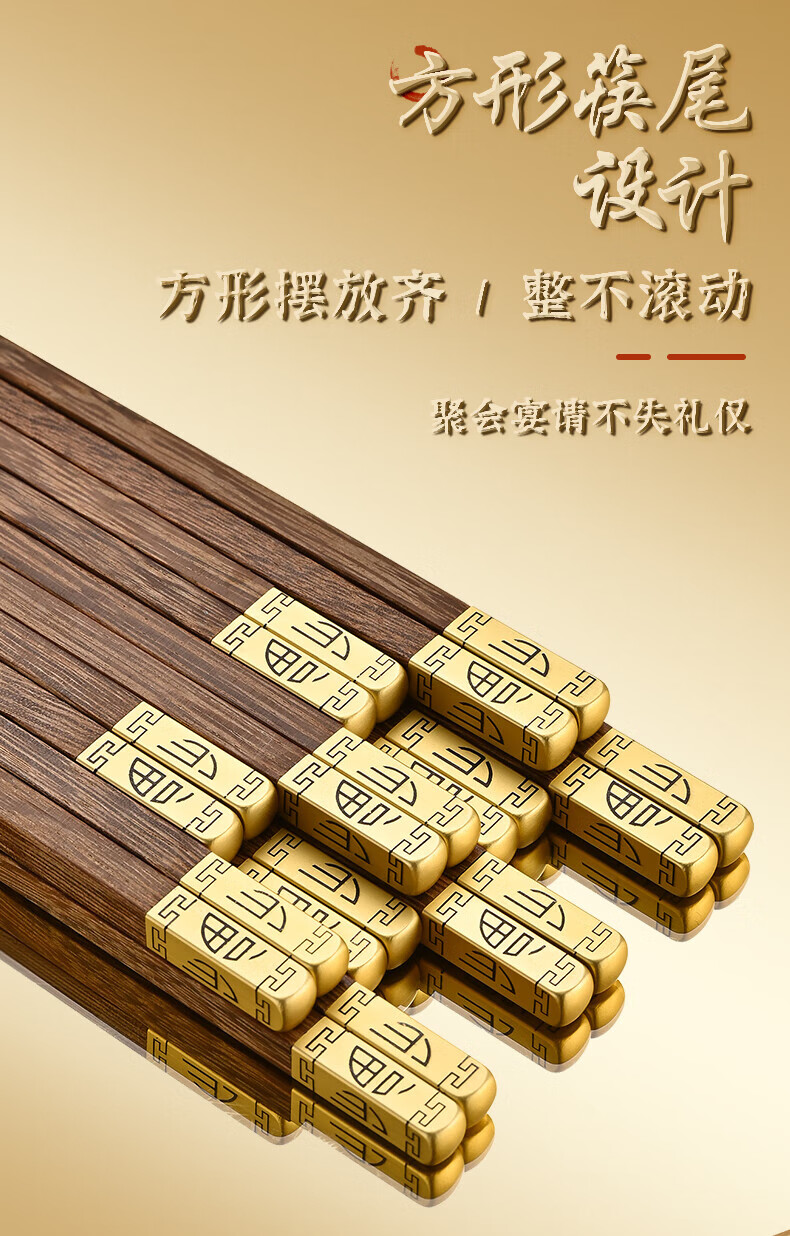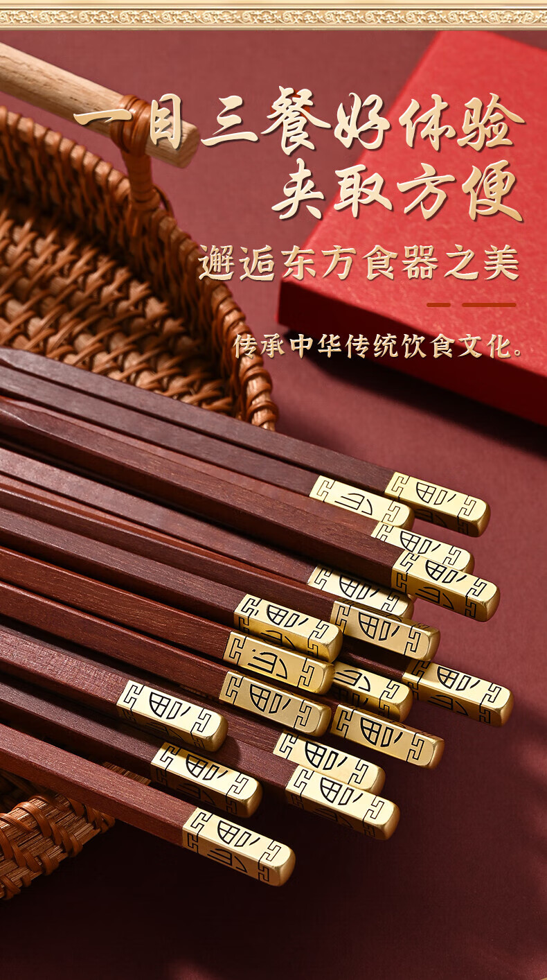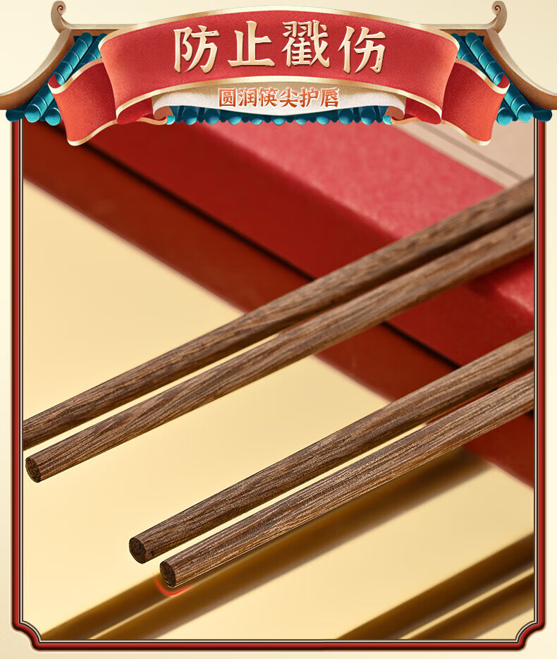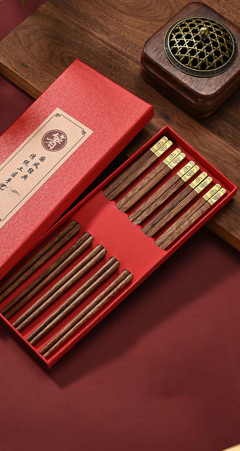 洋臣鸡翅木筷子家用防滑无漆无蜡实木筷子家庭高档中式原木分餐快 鸡翅木普通筷子【10双装】 彩盒装