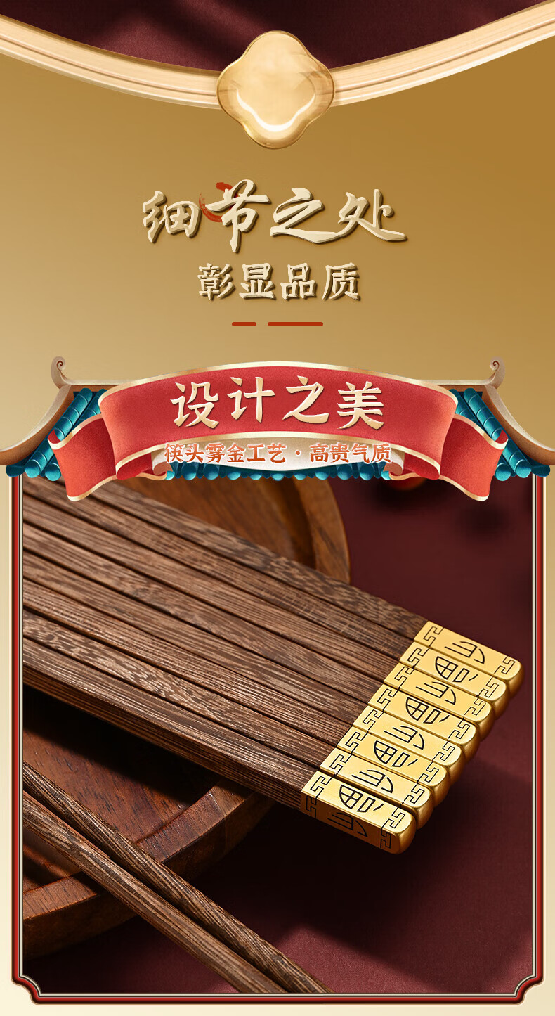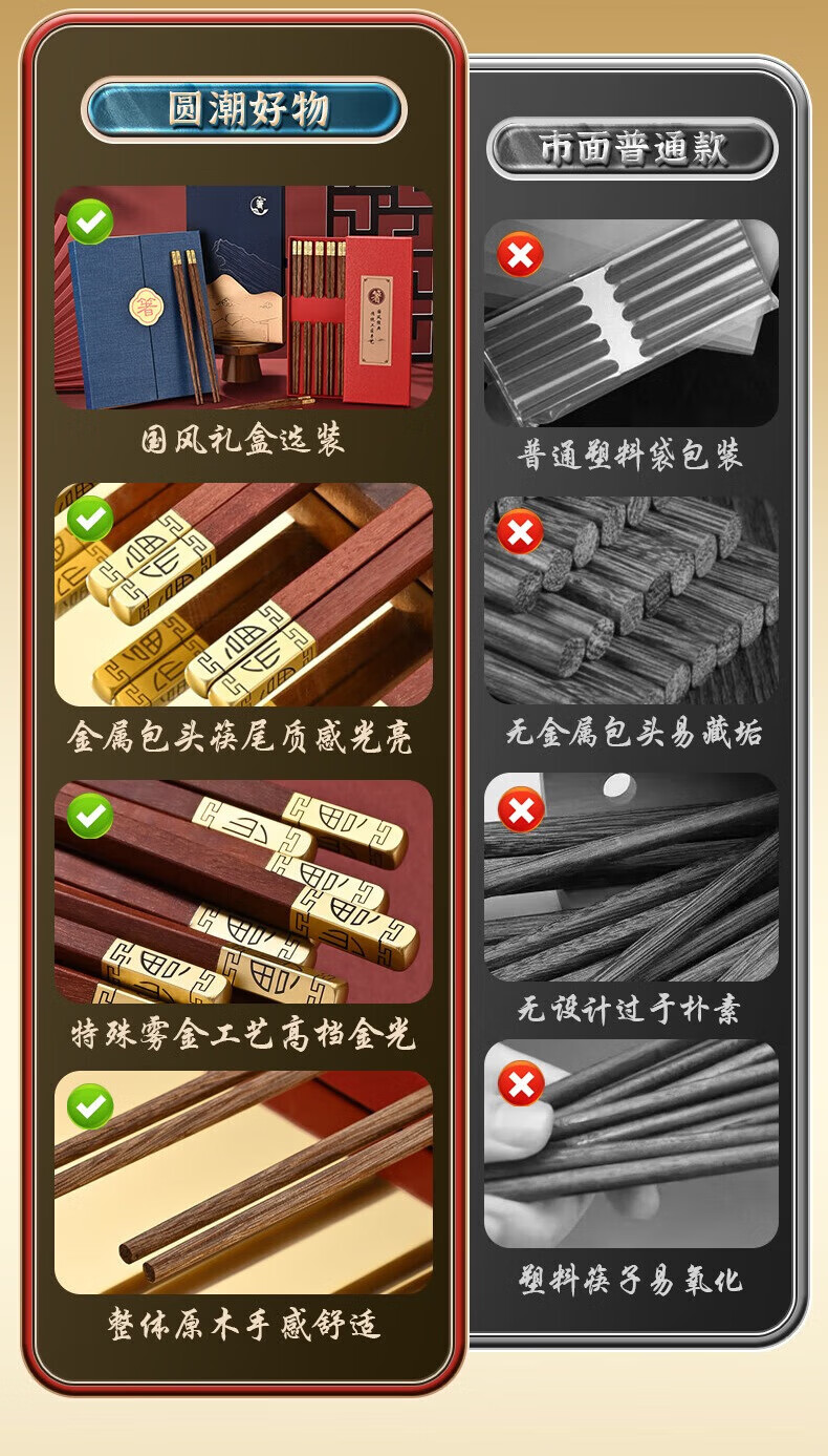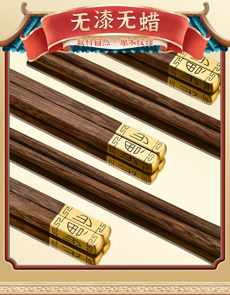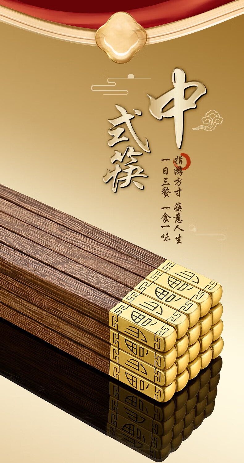 洋臣鸡翅木筷子家用防滑无漆无蜡实木筷子家庭高档中式原木分餐快 鸡翅木普通筷子【10双装】 彩盒装